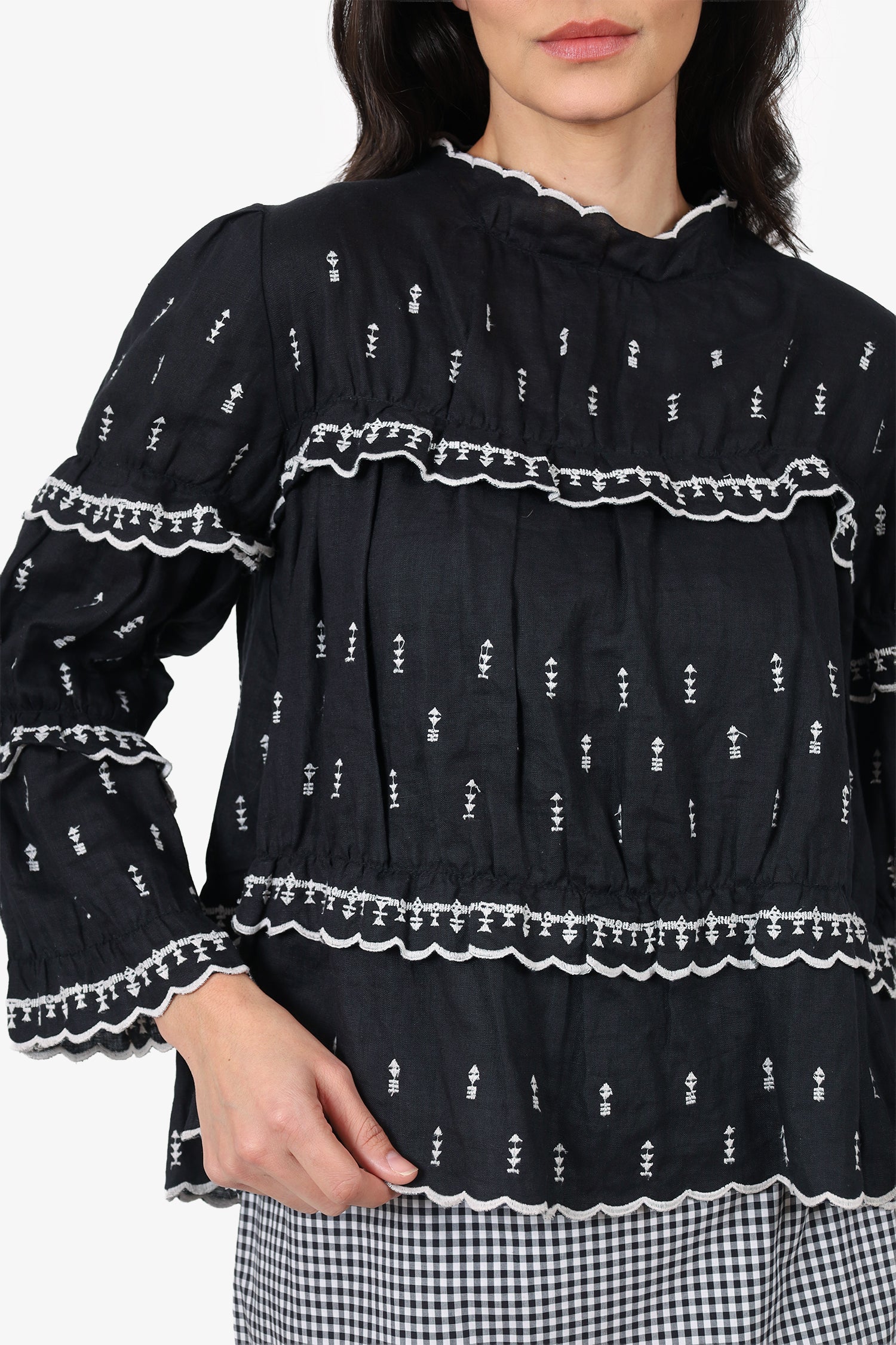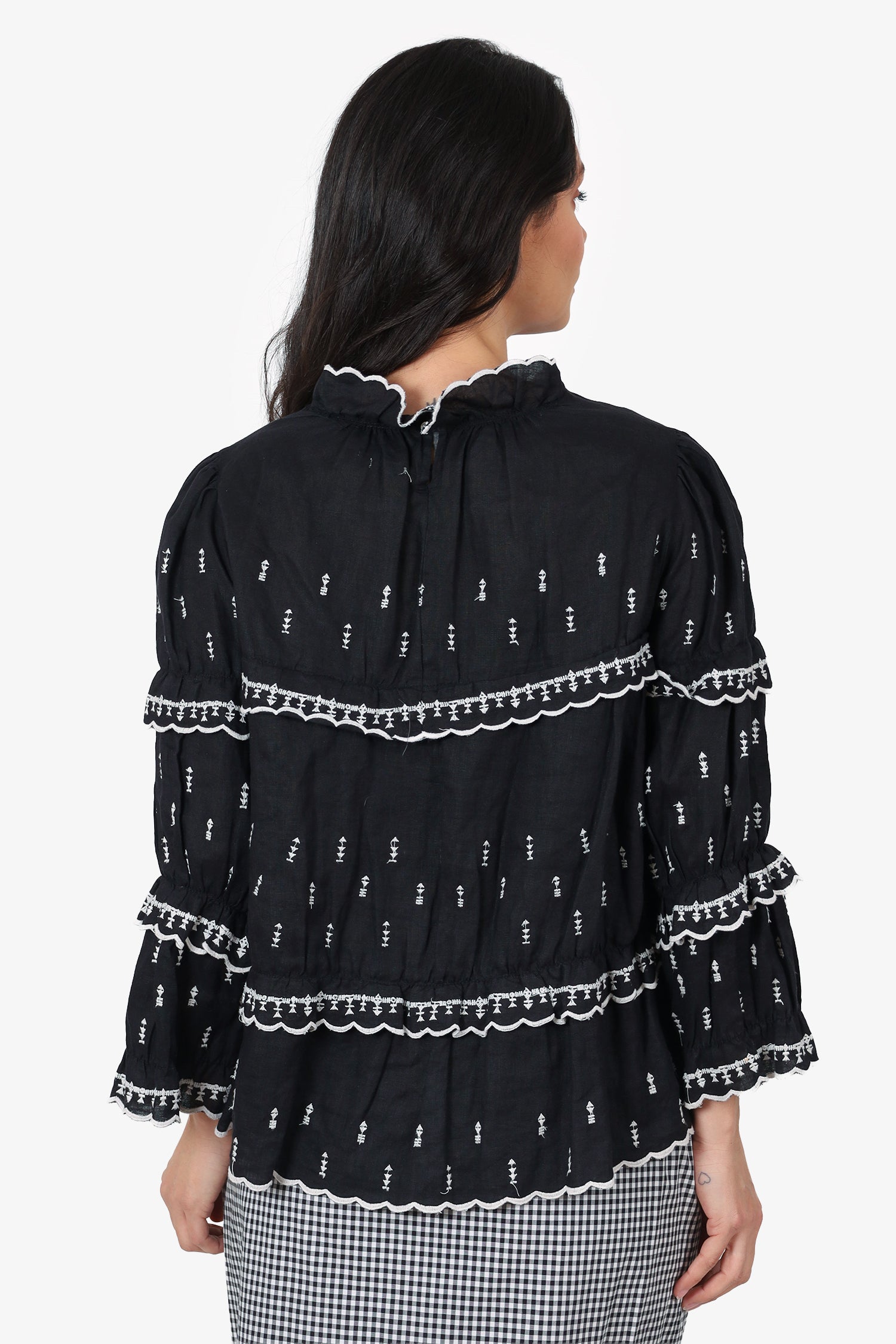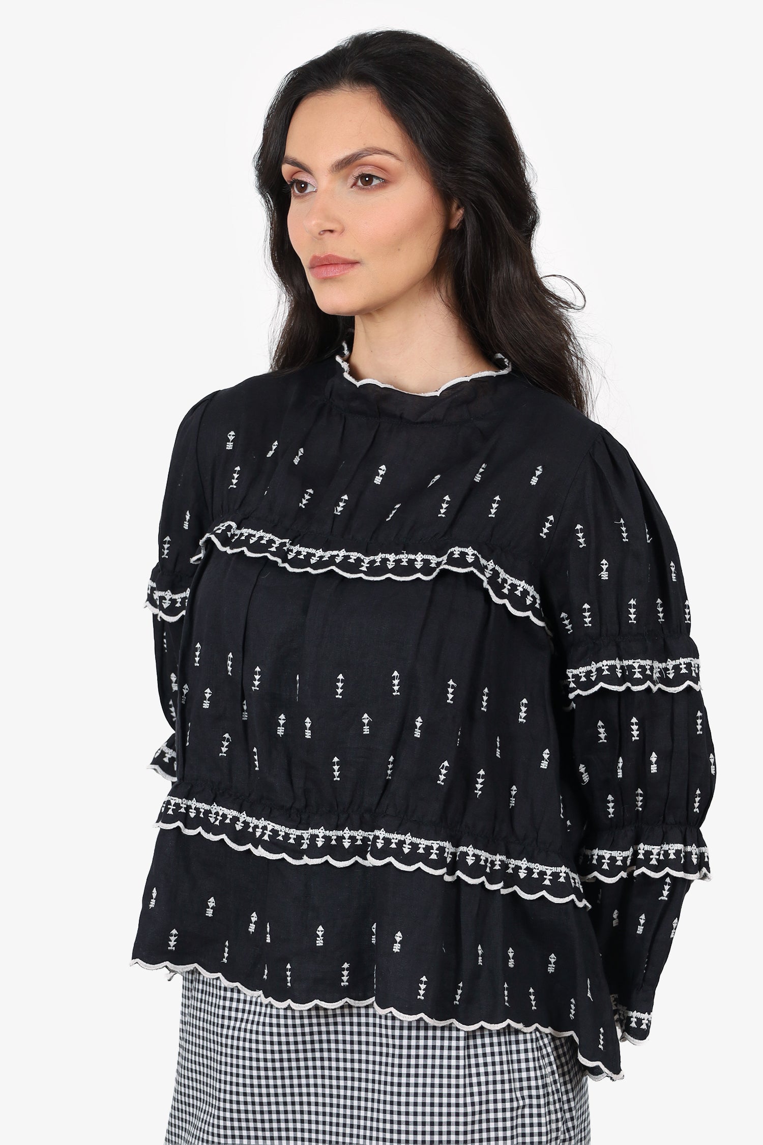Refresh availabilityIsabel Marant Black/White Peasant Blouse. Pull-on. Round neckline. Rear button-up closure. Contrast and tonal stitching.