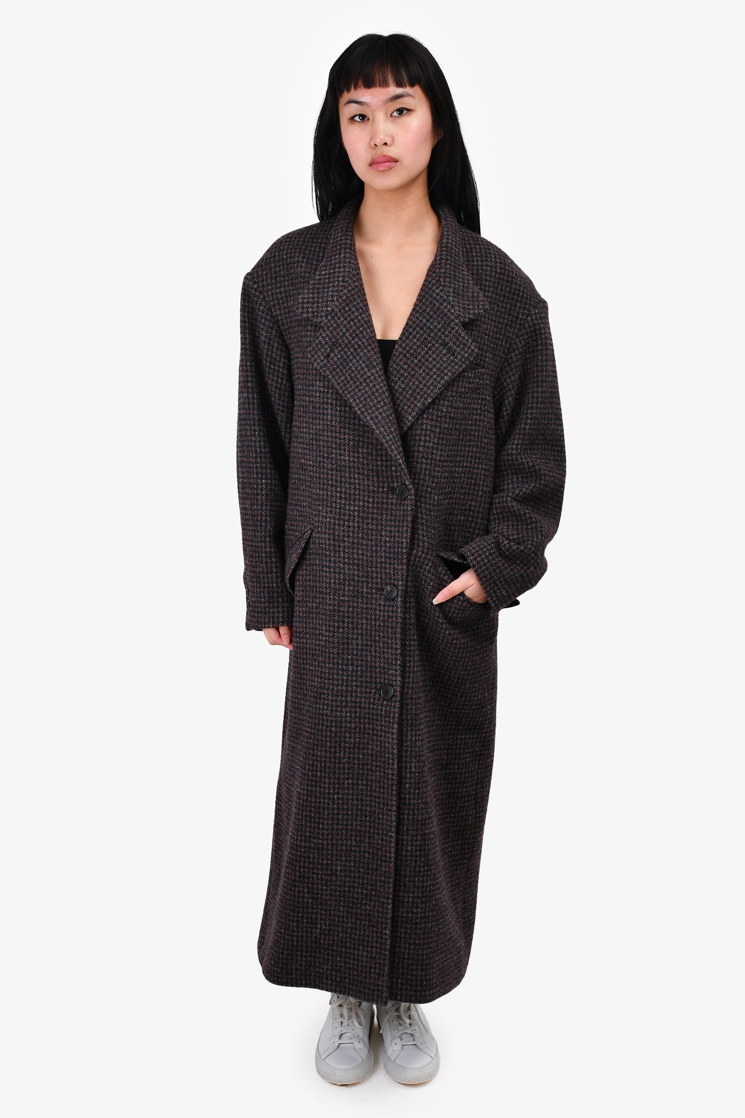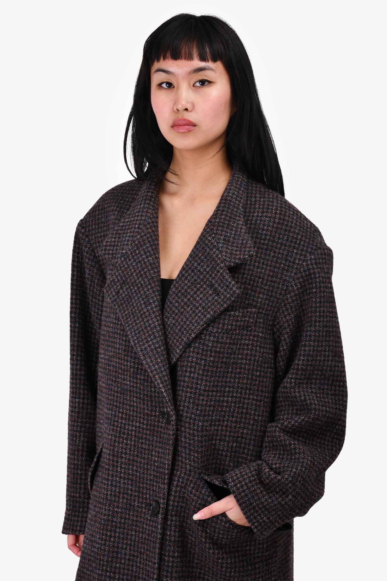 Isabel Marant Brown/Black Wool Checkered Long Coat Size 38