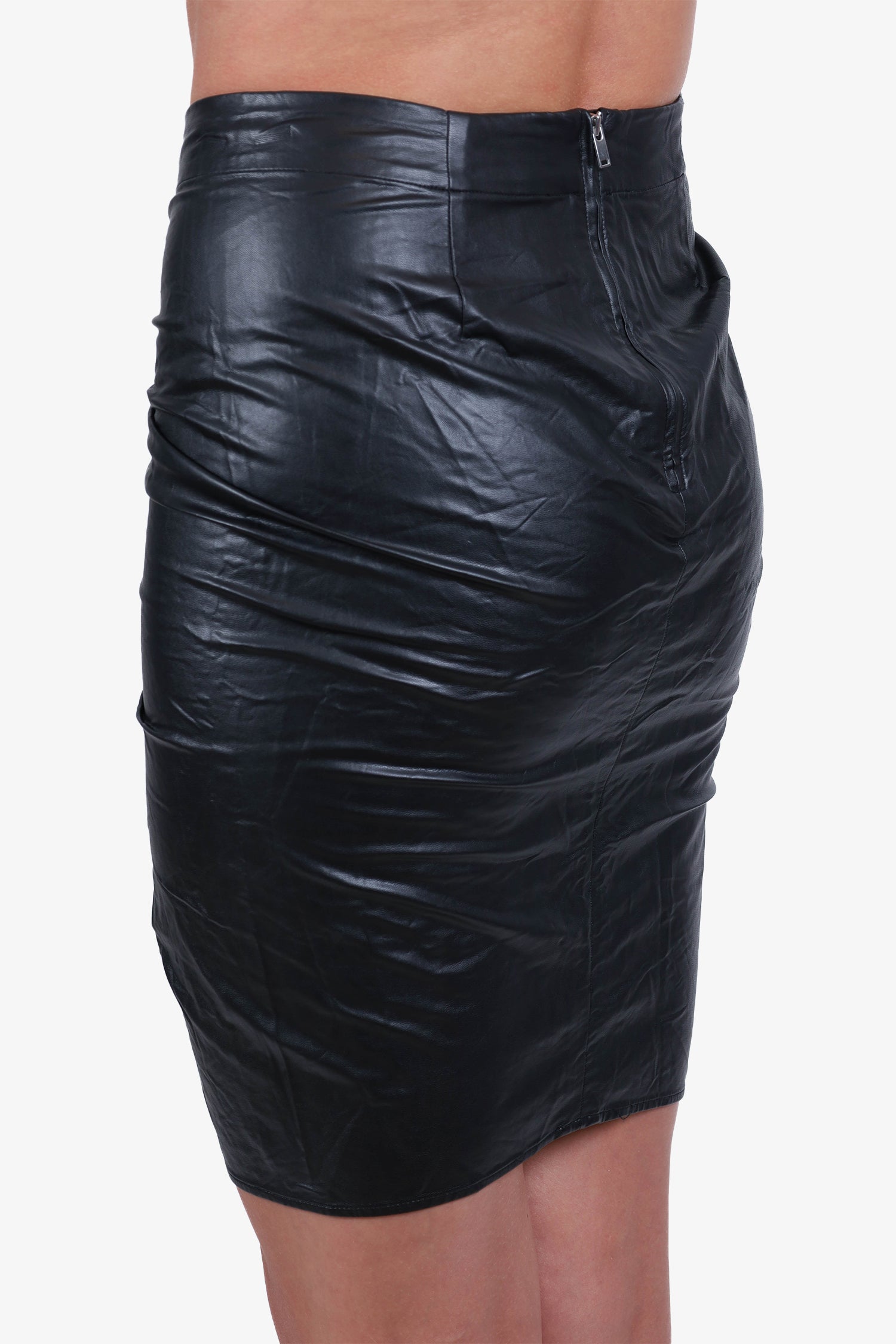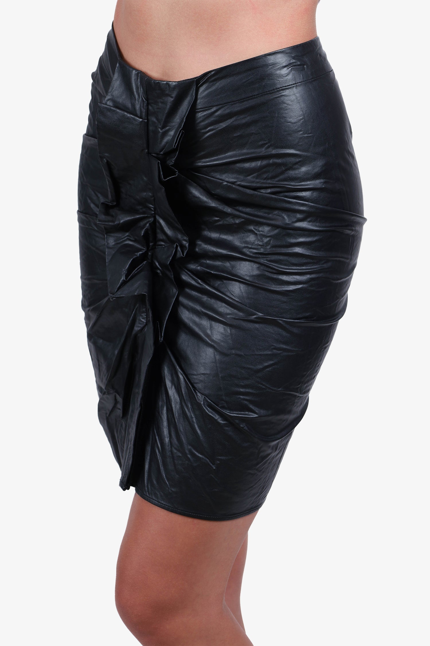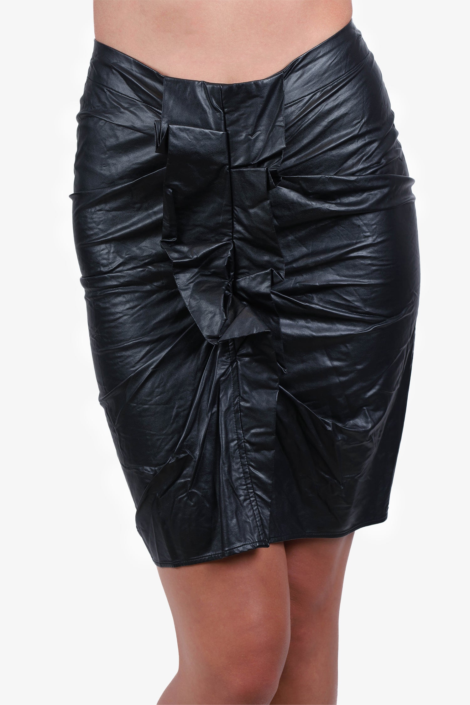 Refresh availabilityIsabel Marant Etoile Black Faux Leather Ruffled Mini Skirt. Back zipper closure. Tonal stitching.