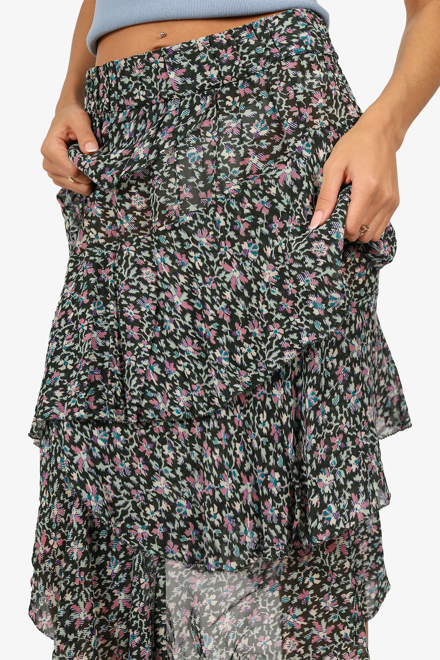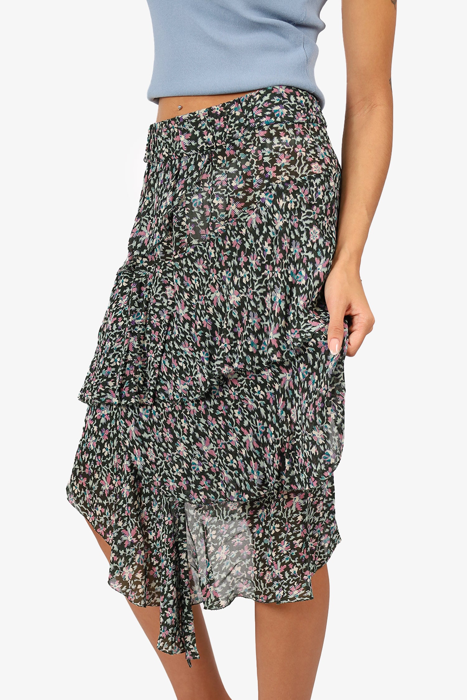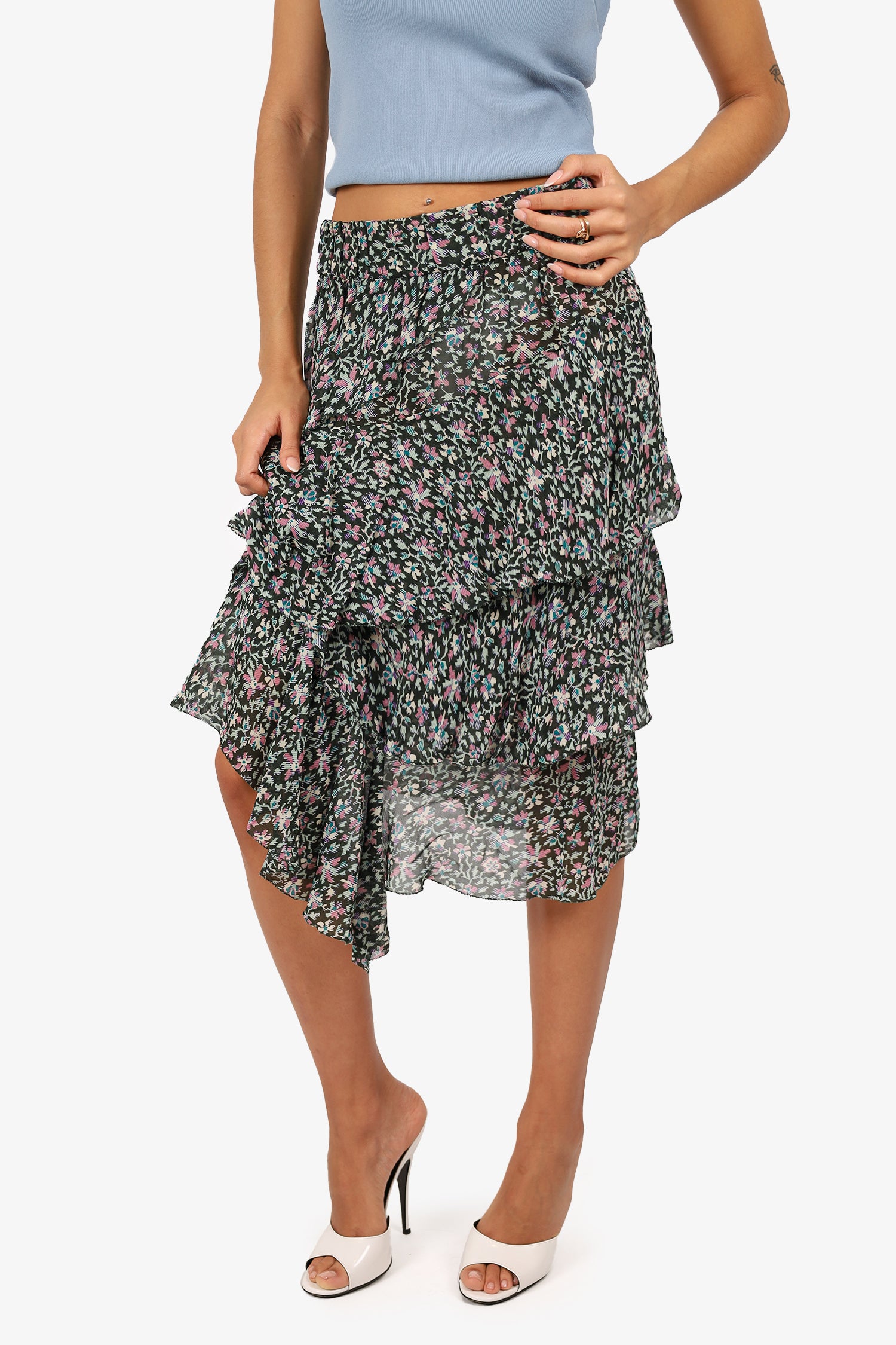 Refresh availabilityIsabel Marant Etoile Black/pink Floral Print Ruffle Skirt. Slip-on. Elasticated waistband. Layered detail throughout. Tonal stitching.