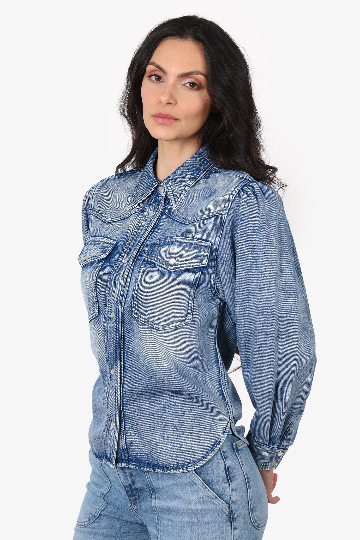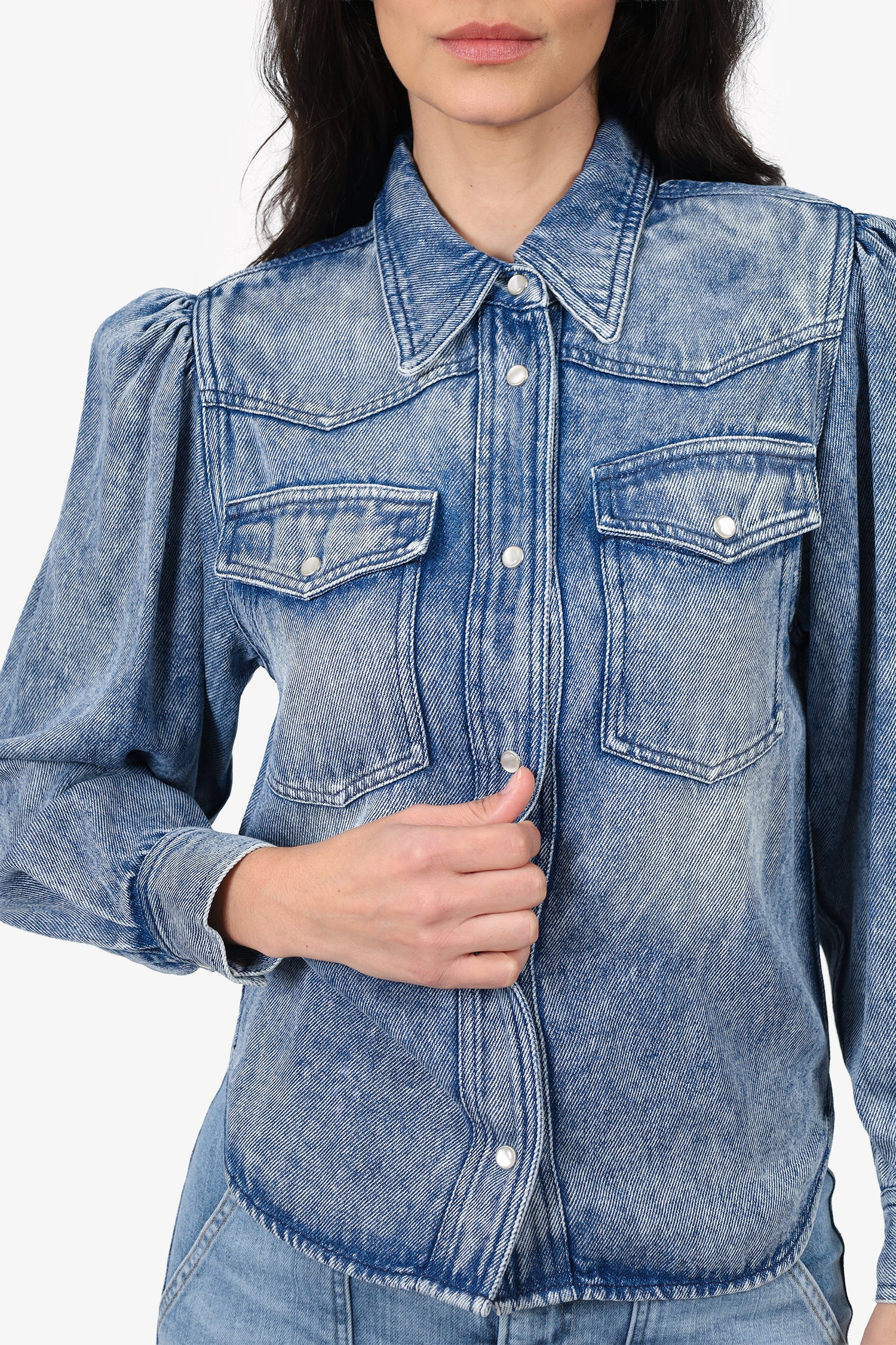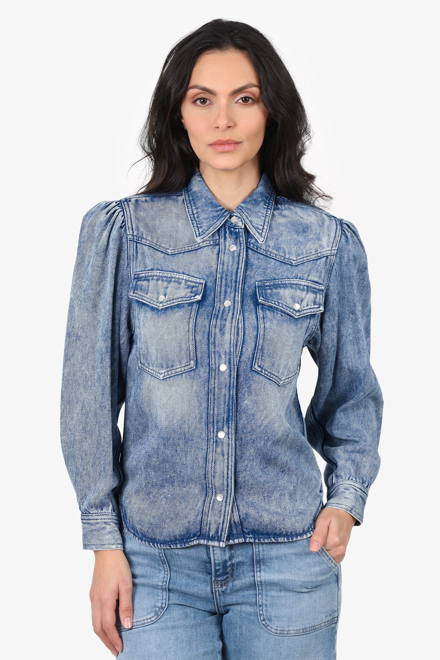 Refresh availabilityIsabel Marant Etoile Blue Cotton Button Down Shirt. Pull-on. Collared neckline. Front snap-button-up closure. Sleeve cuffs with button-up closure. 2 exterior chest snap-button-up pockets. Silver-tone hardware. Tonal stitching.