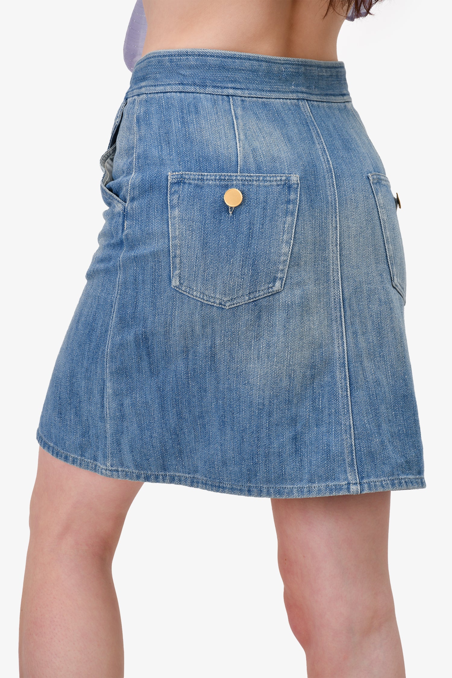 Isabel Marant Etoile Blue Denim Skirt with Gold Buttons Size 32