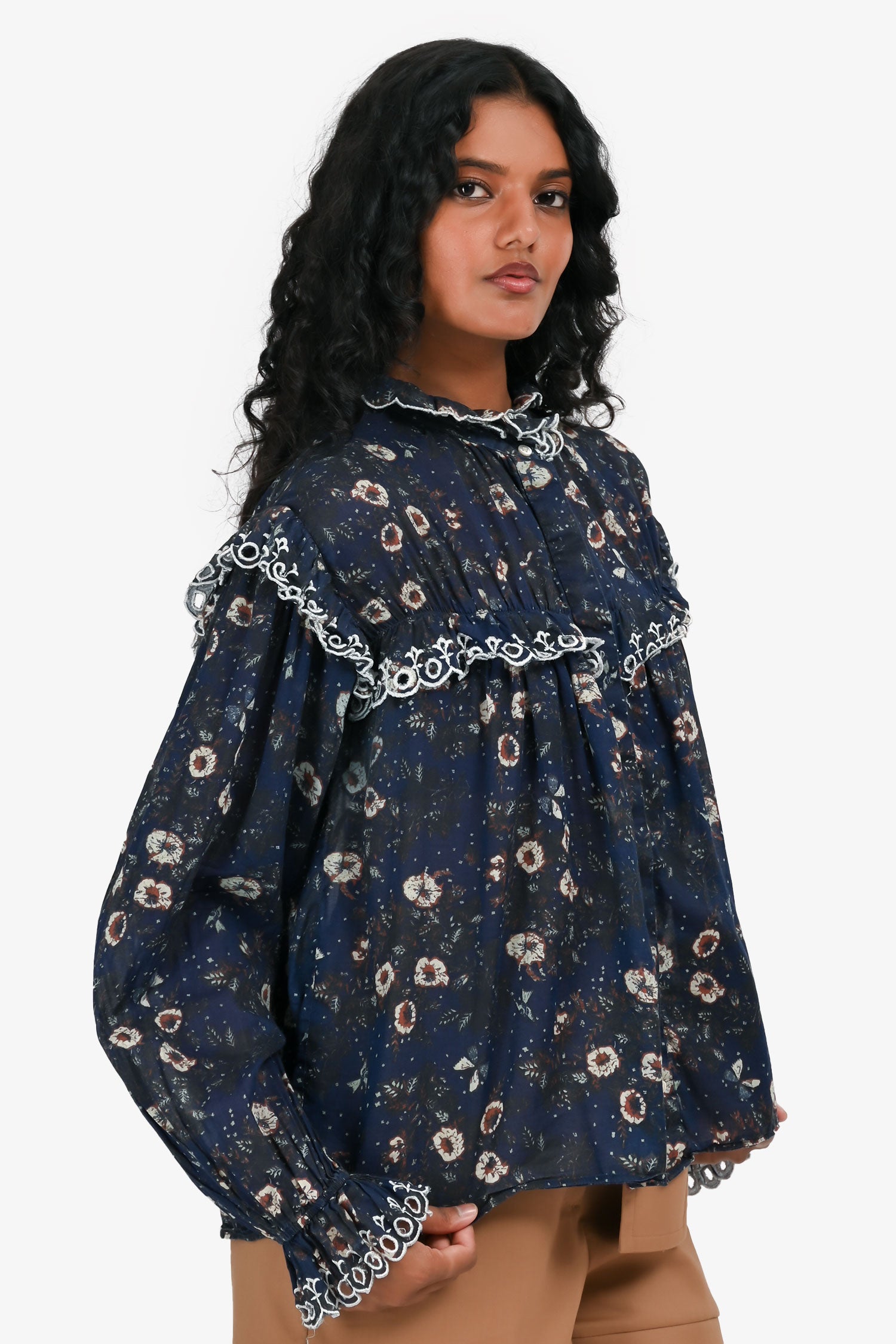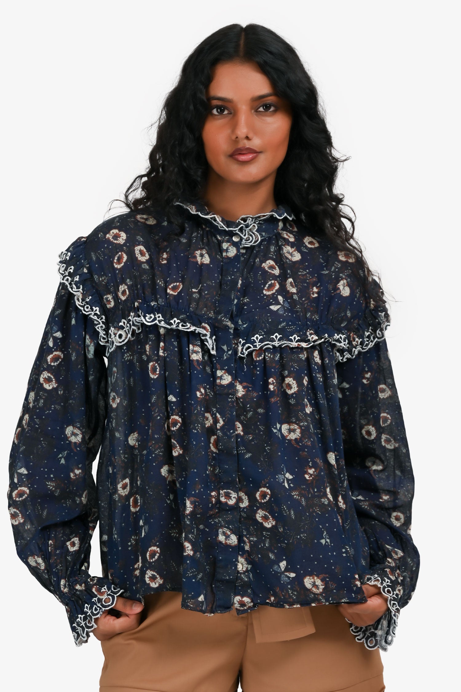Refresh availabilityIsabel Marant Etoile Blue Floral Print Long Sleeves Top. Long sleeves with elastic cuffs. Front button closure. Tonal stitching.