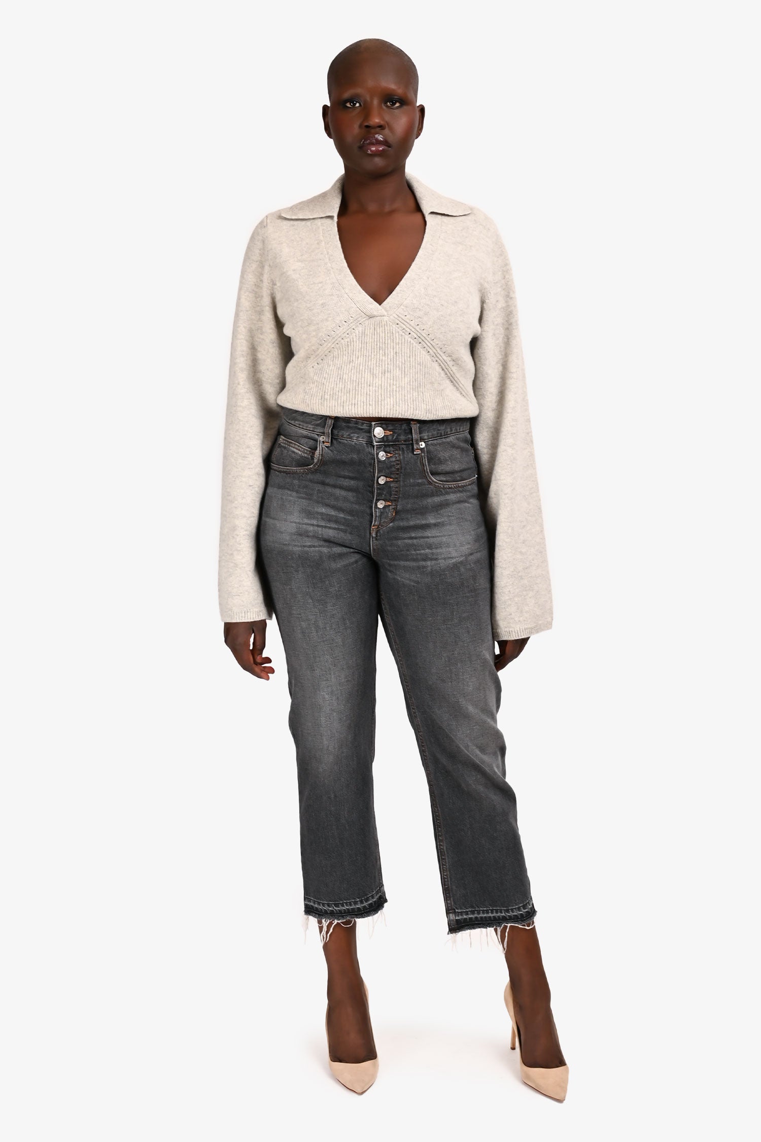 Isabel Marant Etoile Grey Wash Crop Distressed Hem Jeans Size 40