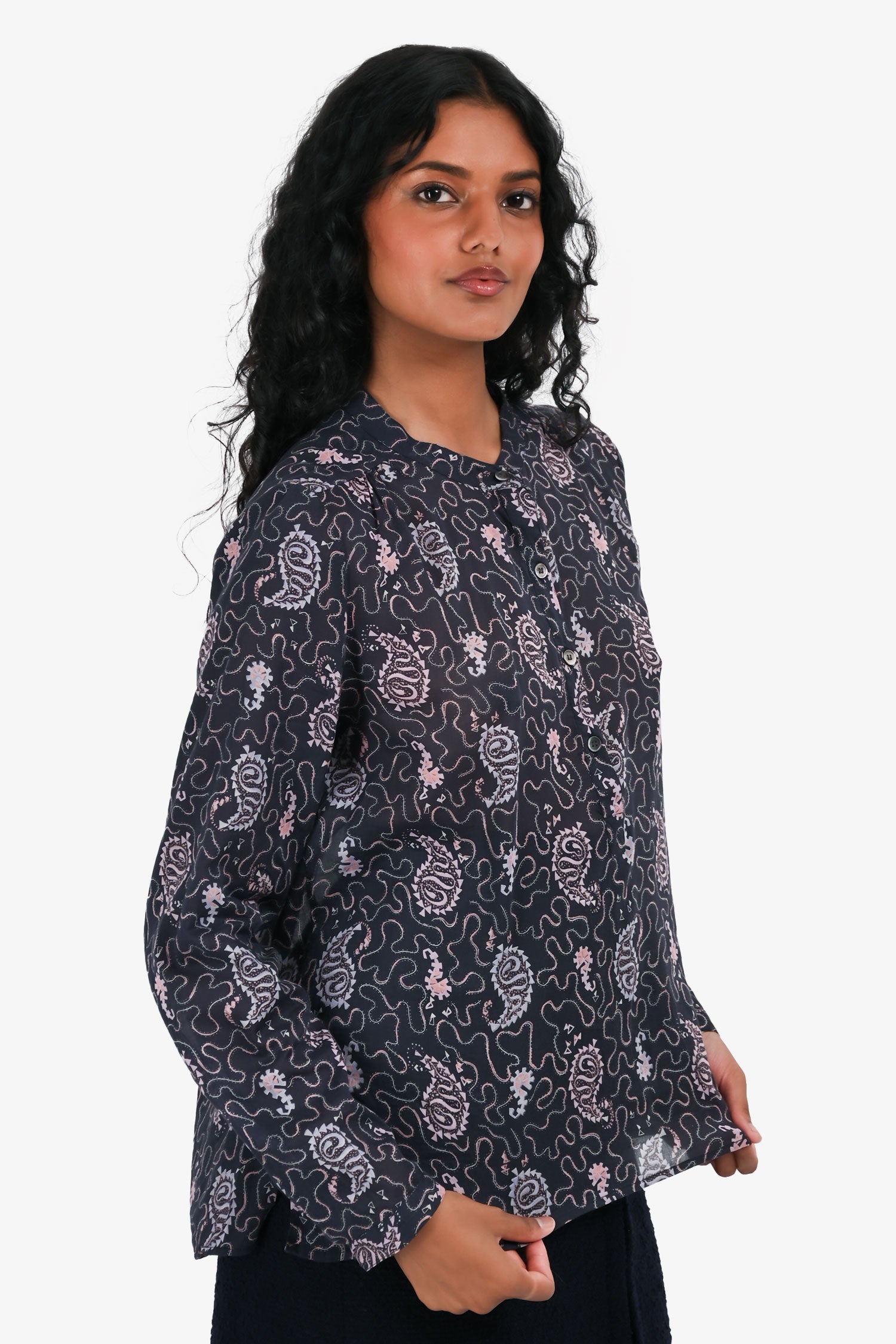Isabel Marant Etoile Navy/Pink Patterned Sheer Blouse Size 34