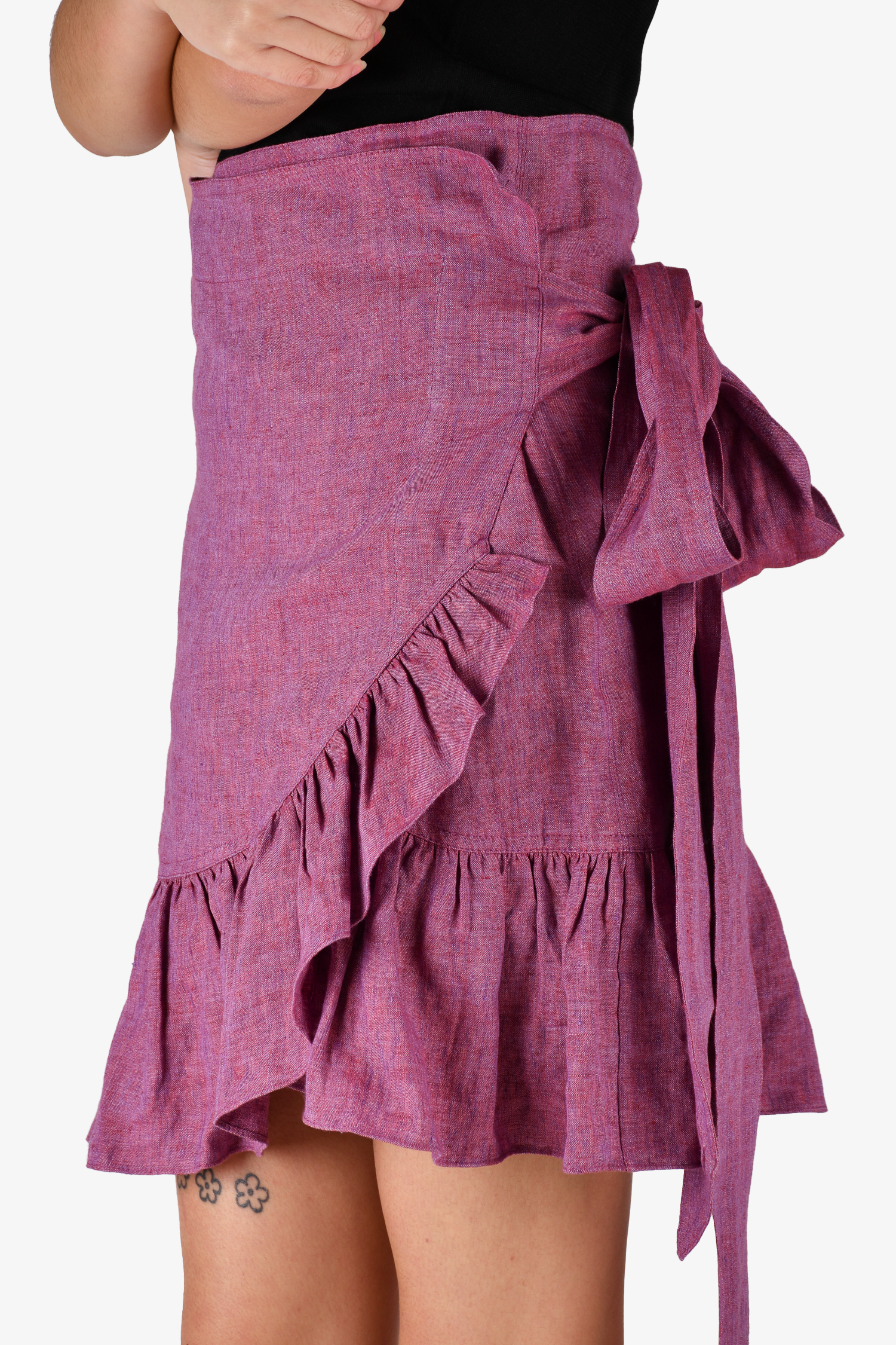 Refresh availabilityIsabel Marant Etoile Purple Linen Wrap Ruffle Mini Skirt. Ruffles at hem. Unlined. Tonal stitching.