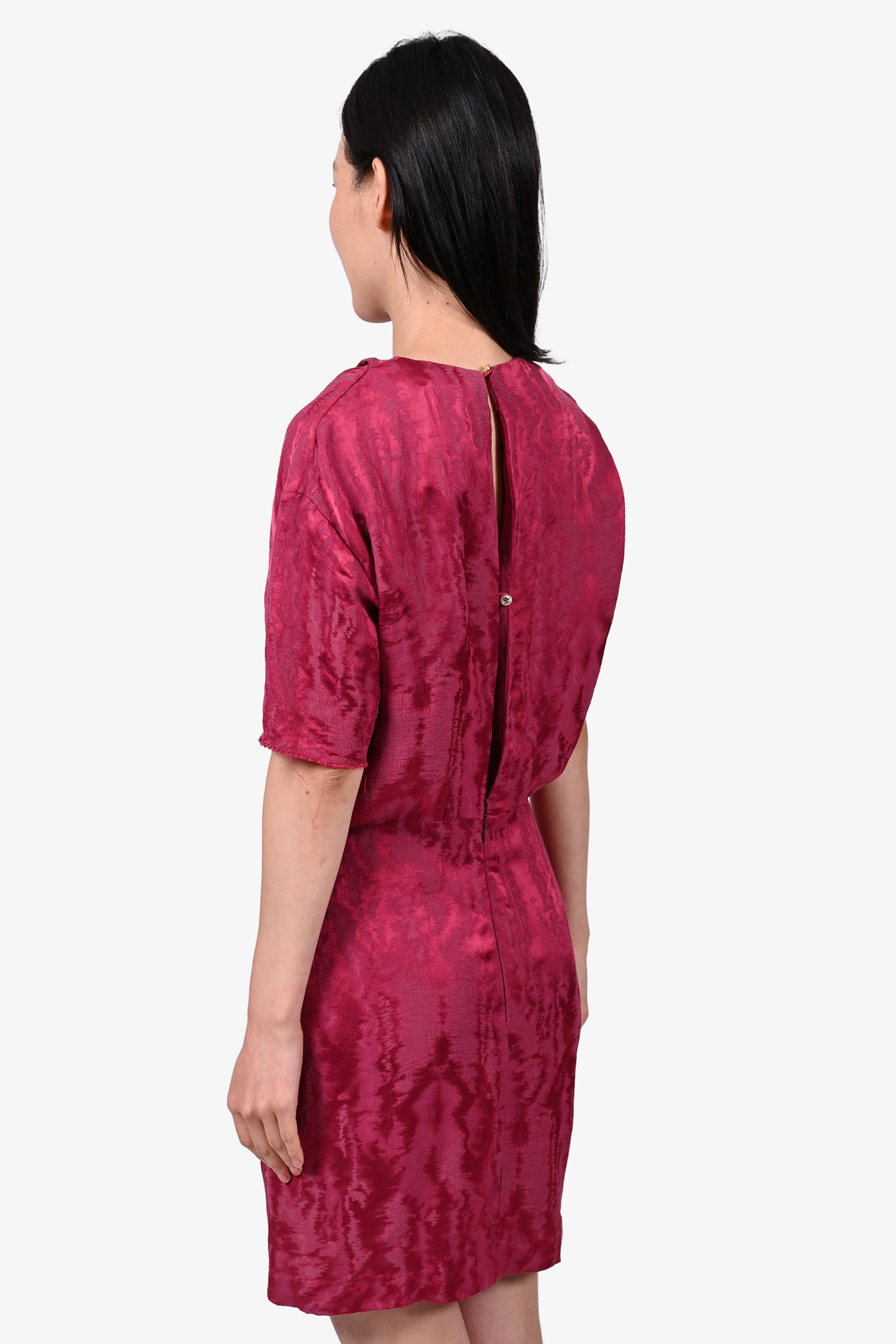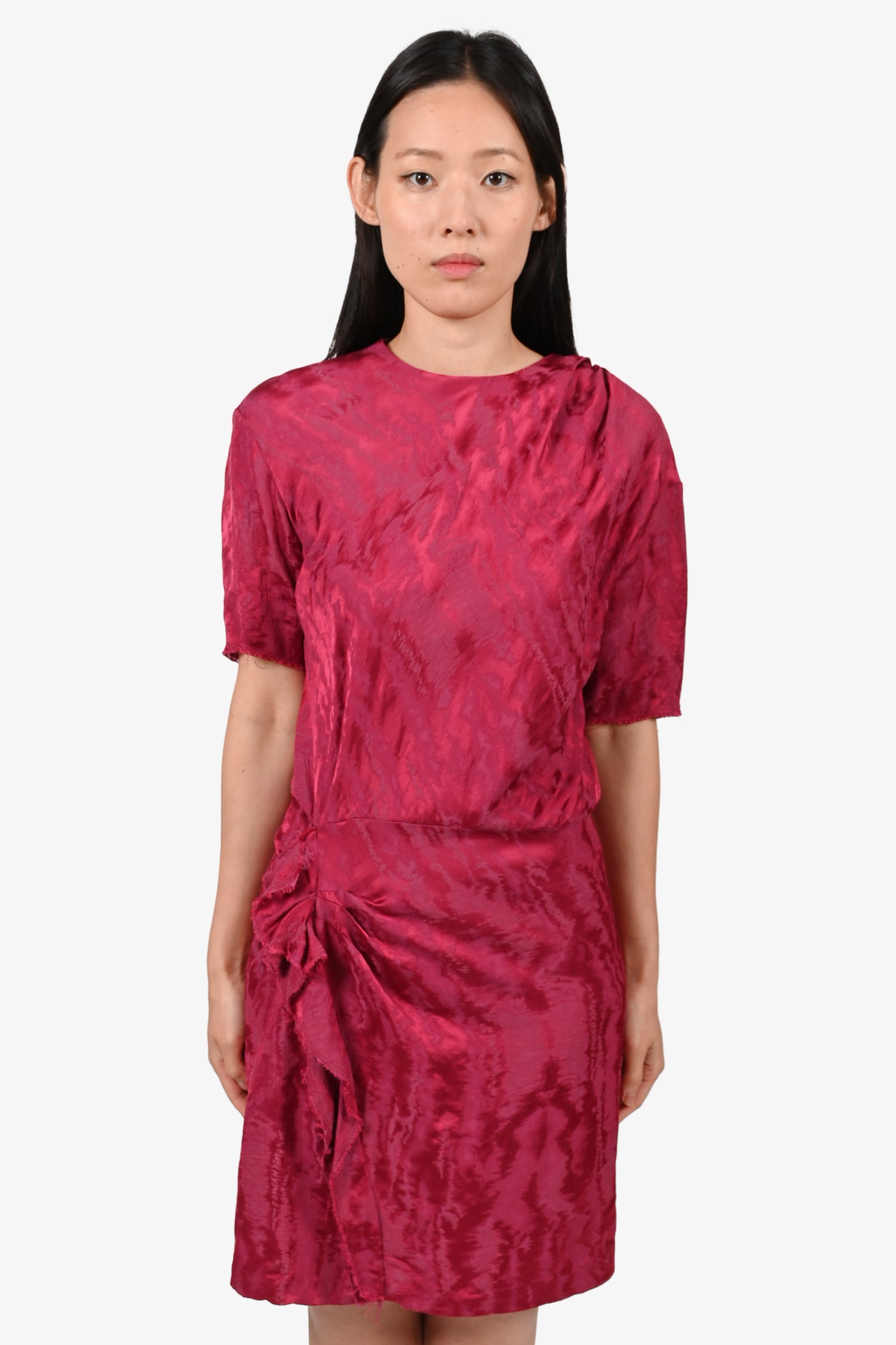 Refresh availabilityIsabel Marant Magenta Jacquard Ruffle Raw Hem Dress. Rear button-up closure. Unlined. Tonal stitching.