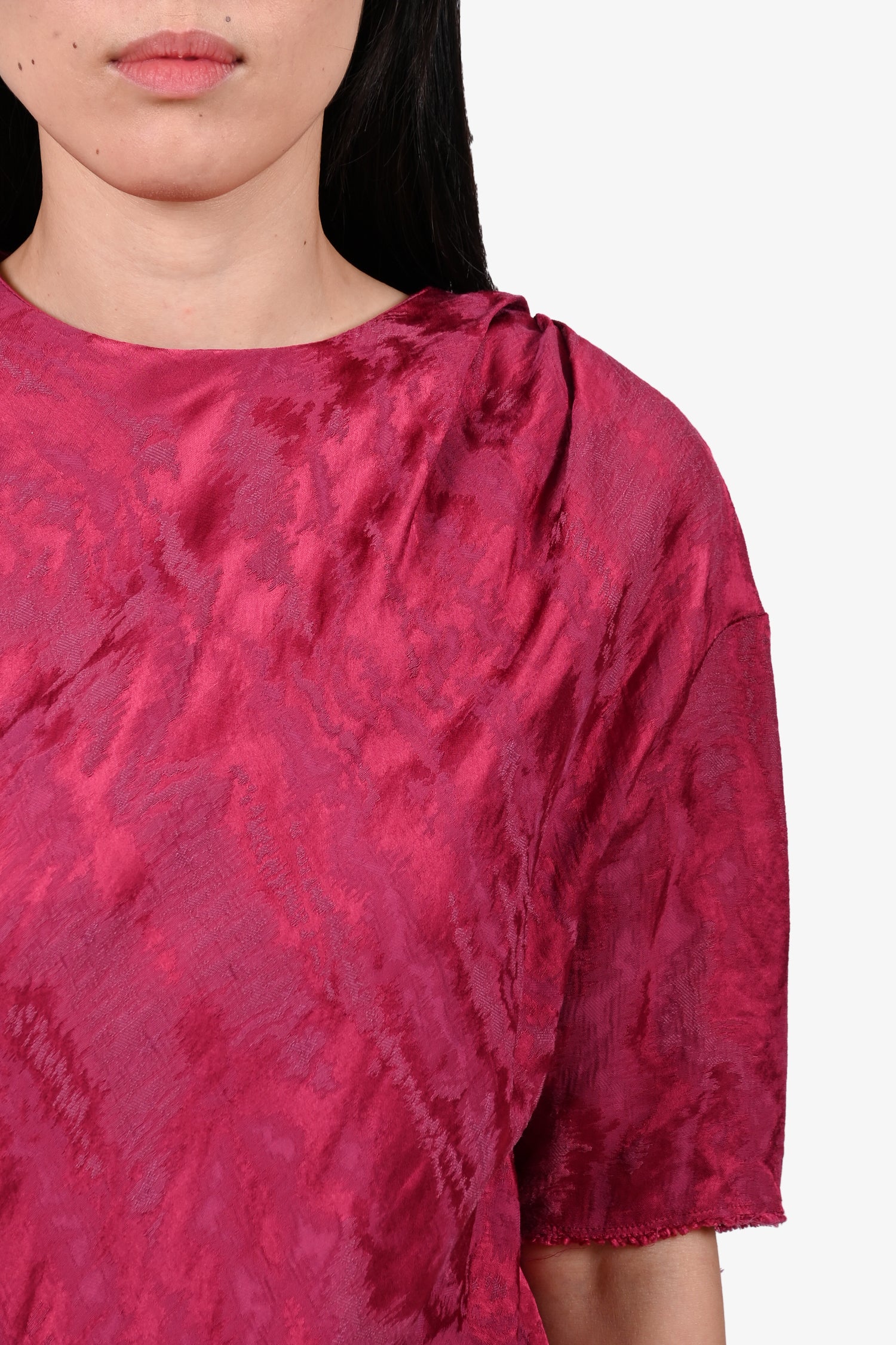 Isabel Marant Magenta Jacquard Ruffle Raw Hem Dress Size 38