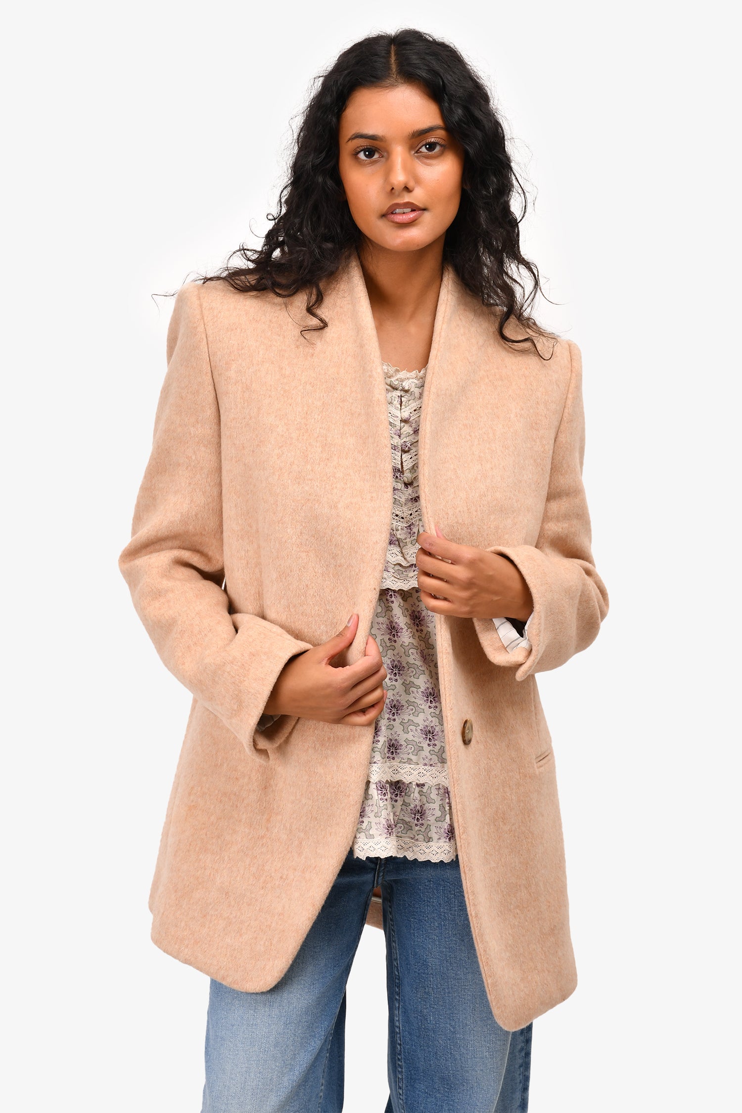 Refresh availabilityIsabel Marant Pink Wool/Cashmere Blazer Coat. Single front button closure. Padded shoulders. Unlined. Button closure on the cuffs.