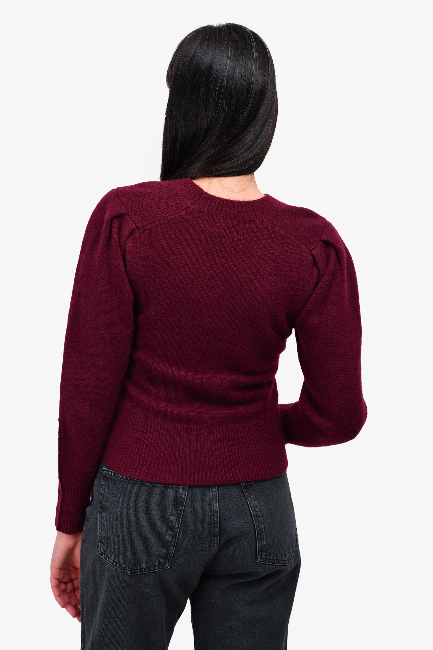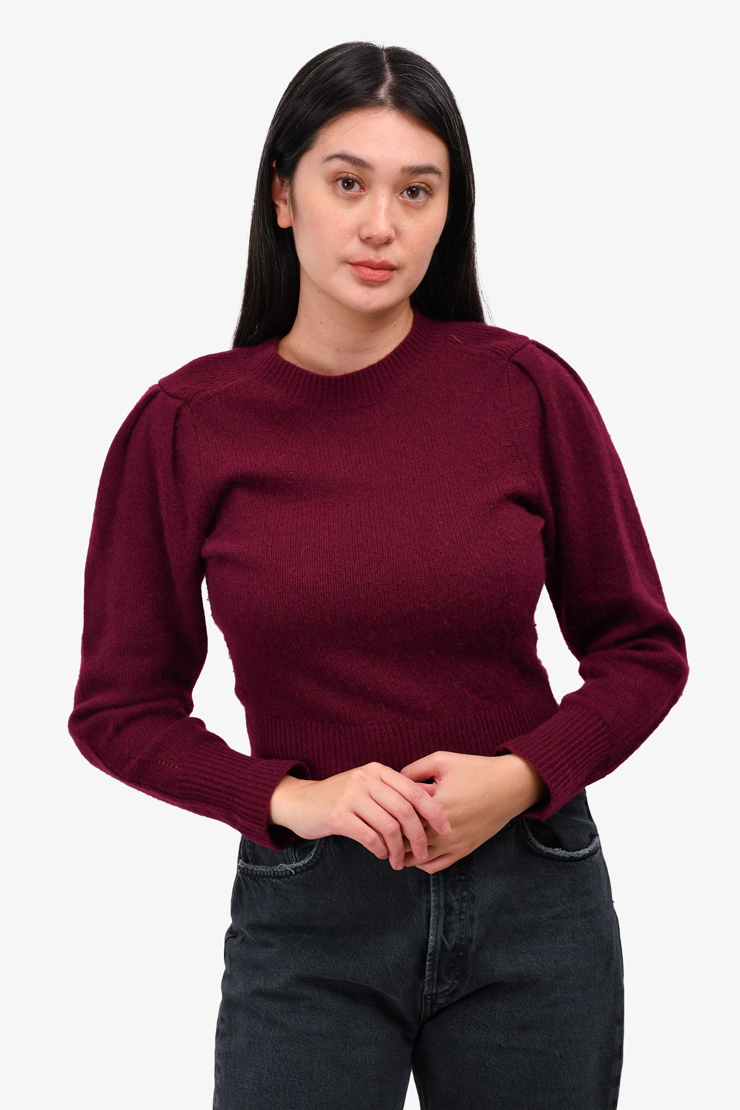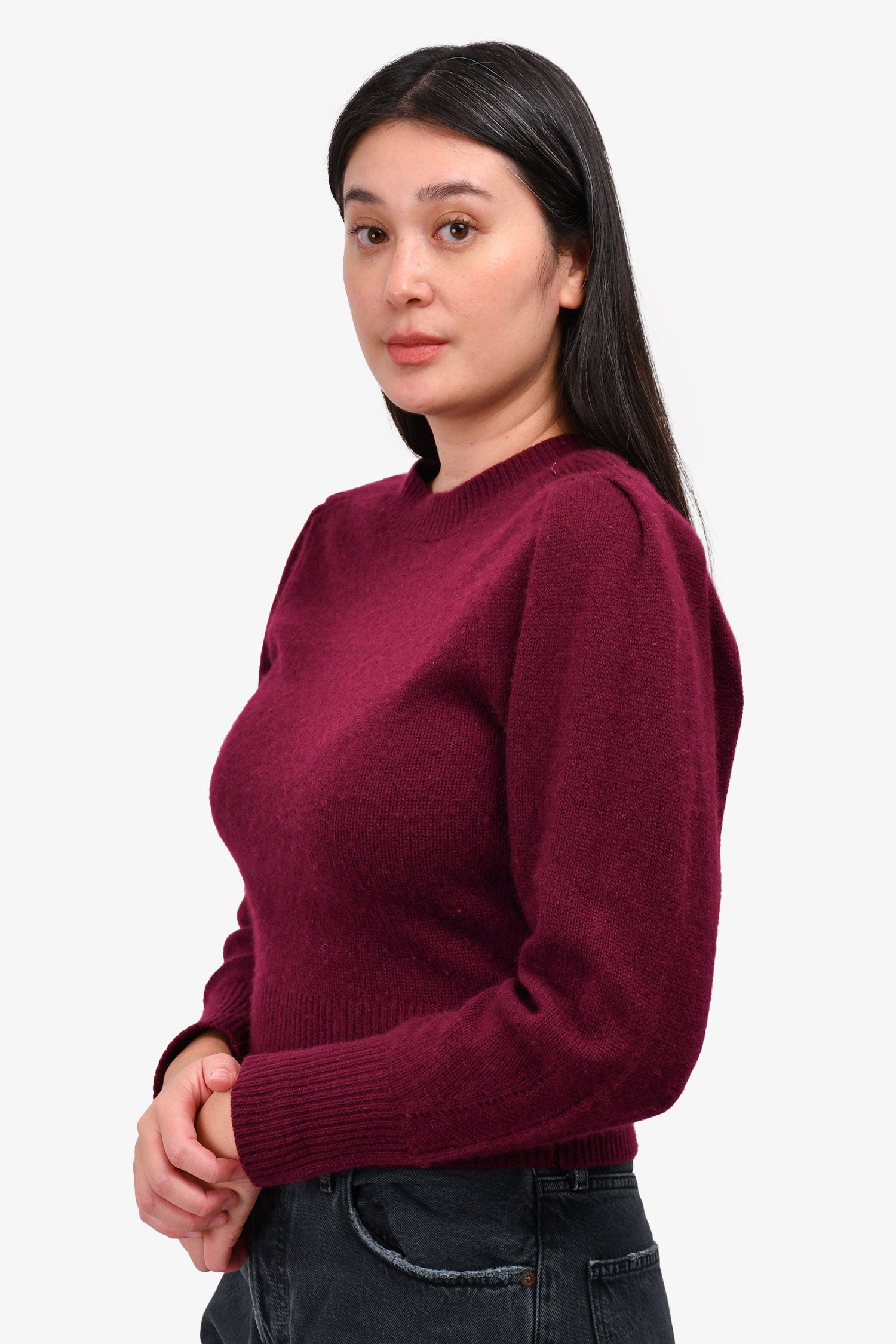 Refresh availabilityIsabel Marant Purple Cashmere Crewneck Sweater. Ribbed neckline. Puffed sleeves. Tonal stitching.