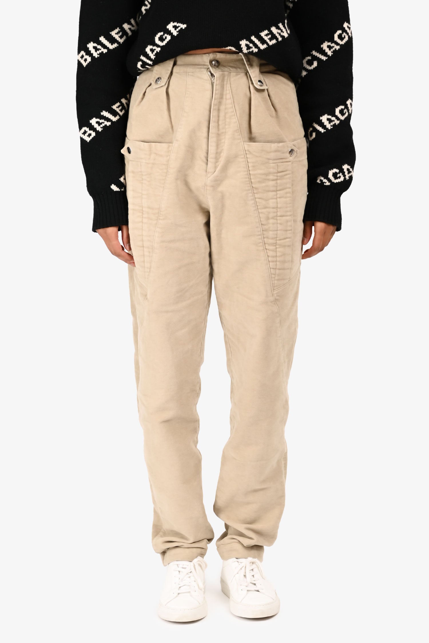 Refresh availabilityIsabel Marant Taupe High Rise Cargo Pants. Front zip and button closure. Front and rear pockets with snap-button closure.