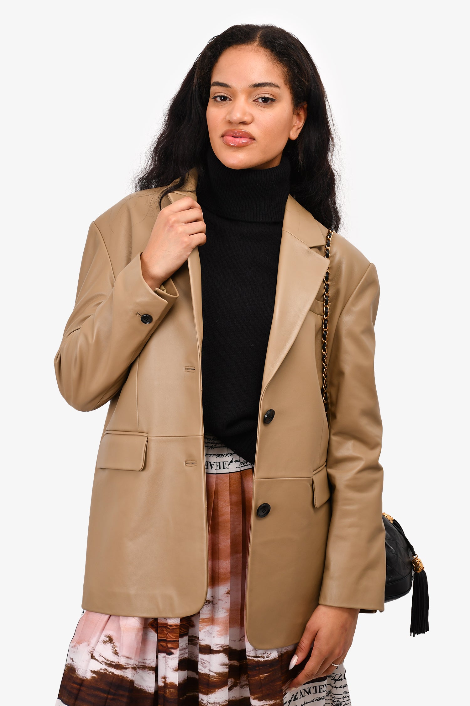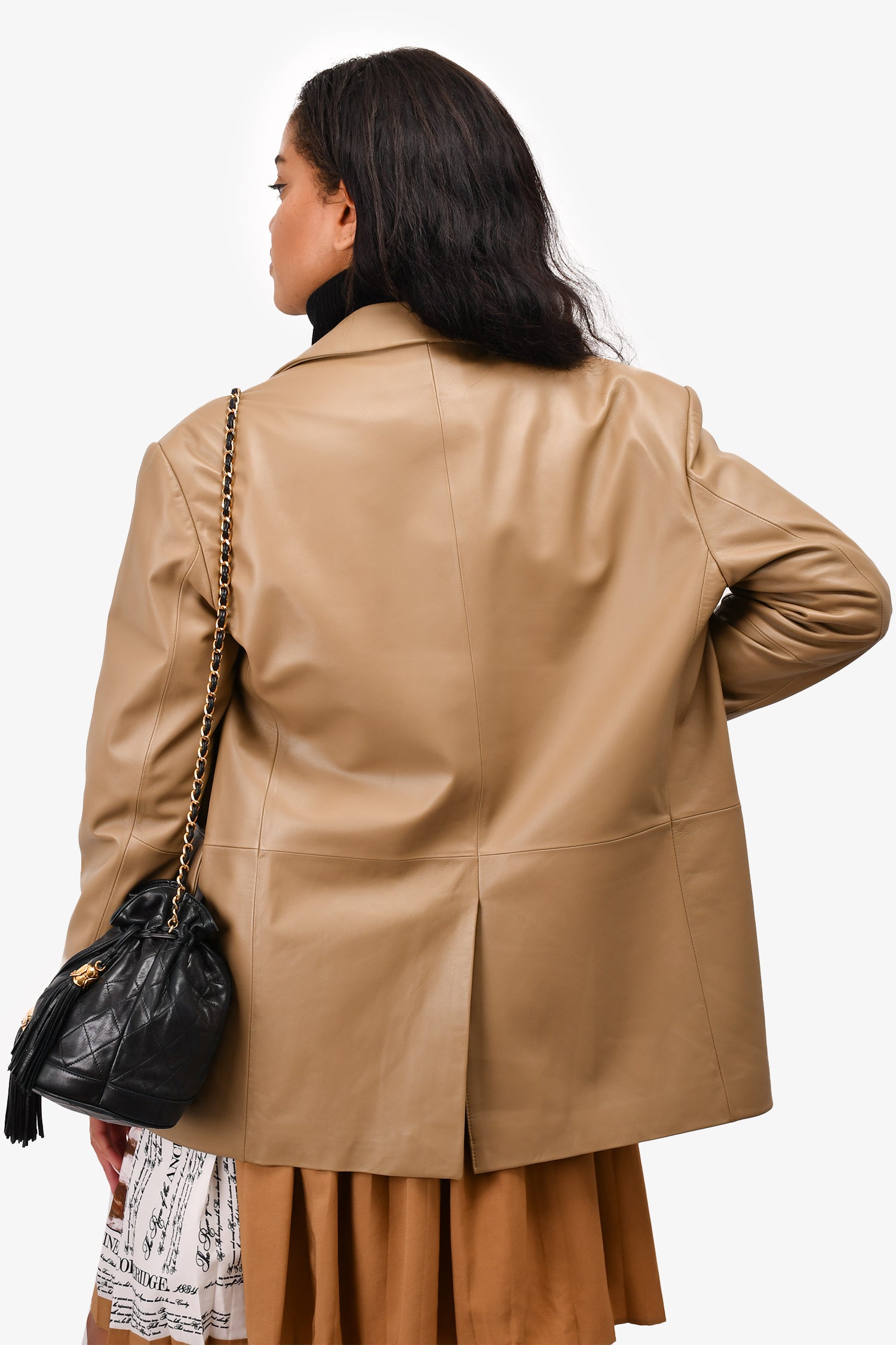 JAC by Jacqueline Conoir Beige Leather Oversized Blazer Size S