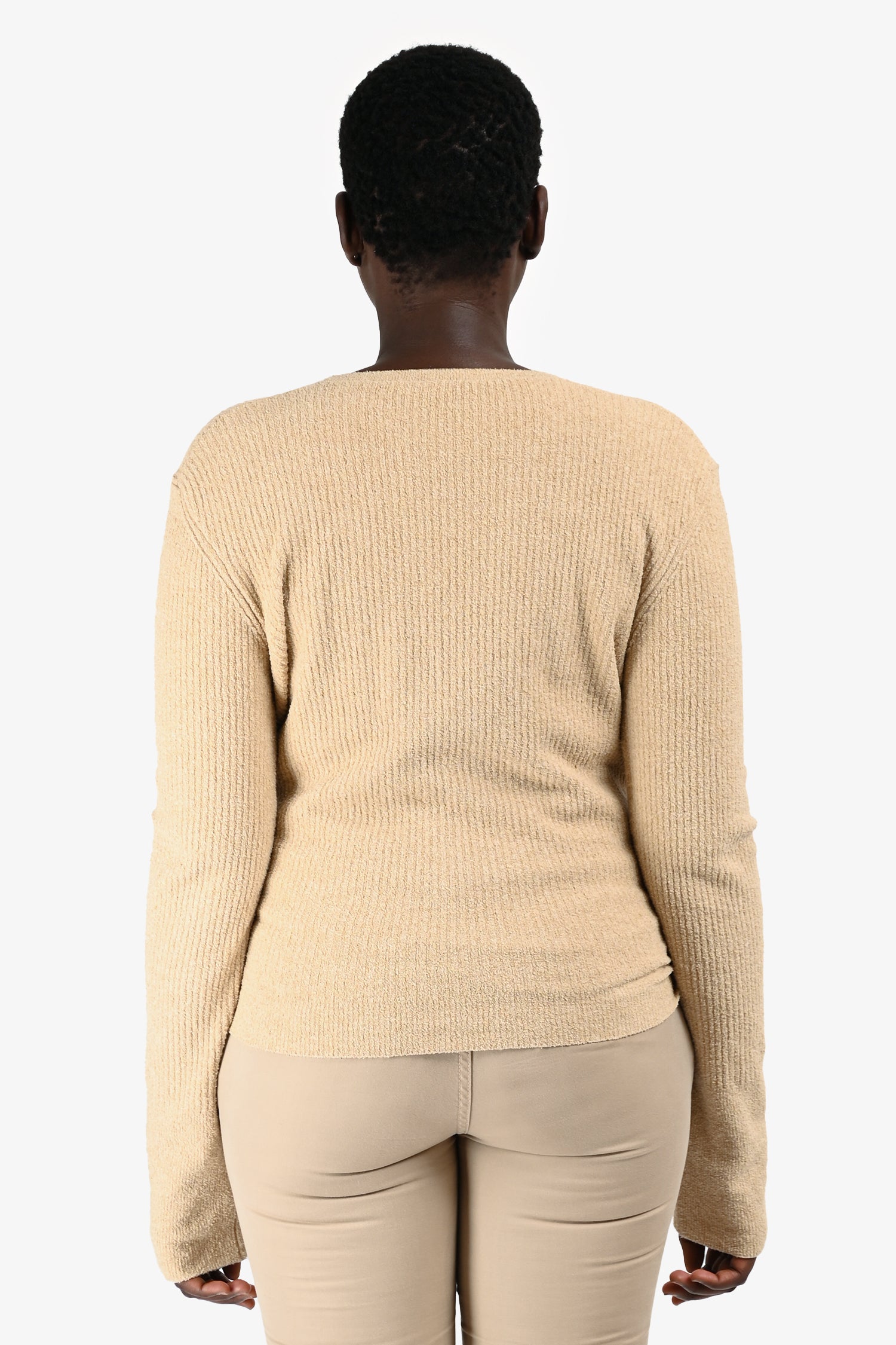 Jacquemus Beige Cotton Blend Knit Open Tied Sweater Size 44