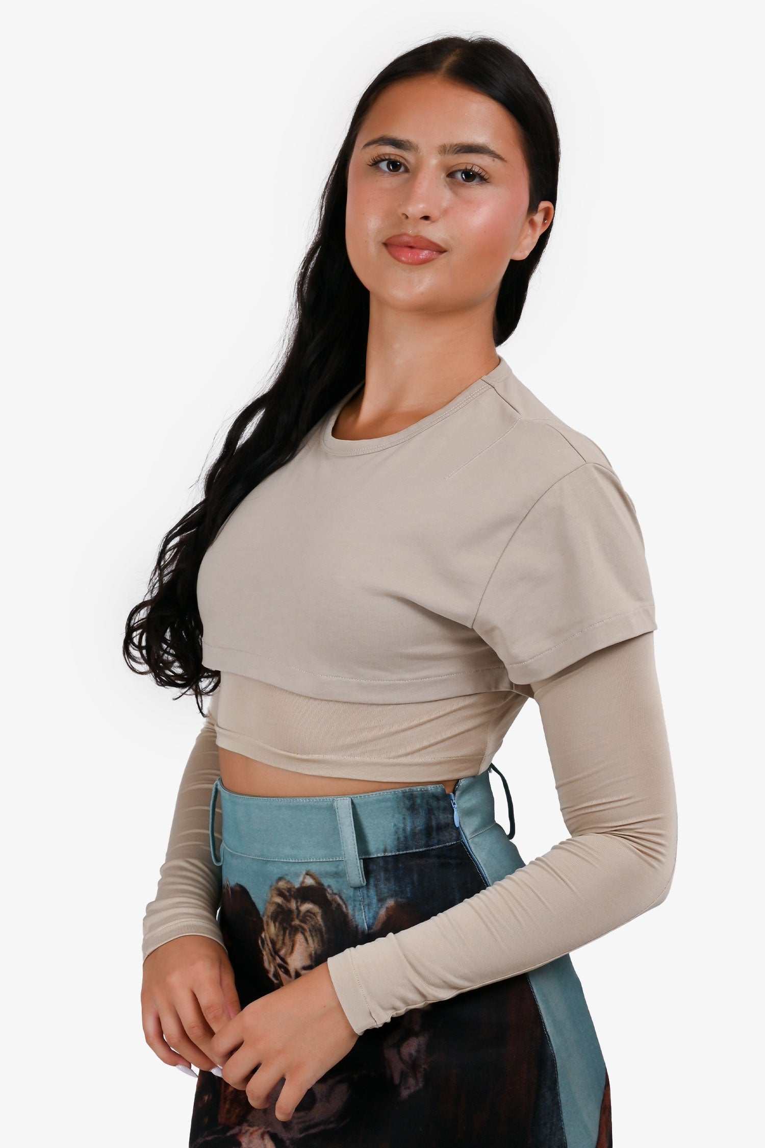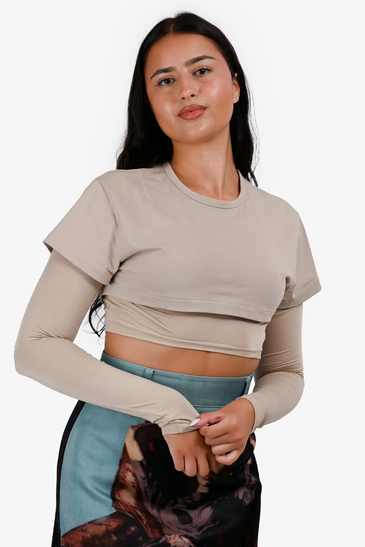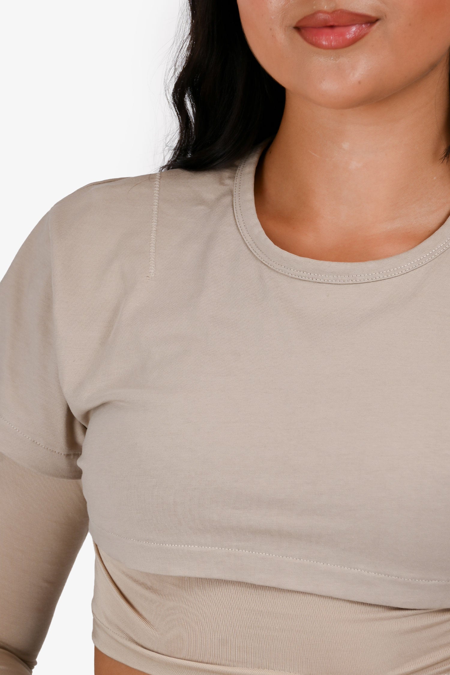 Refresh availabilityJacquemus Beige Double Layer Cropped Top. Round neck. Pull-on.