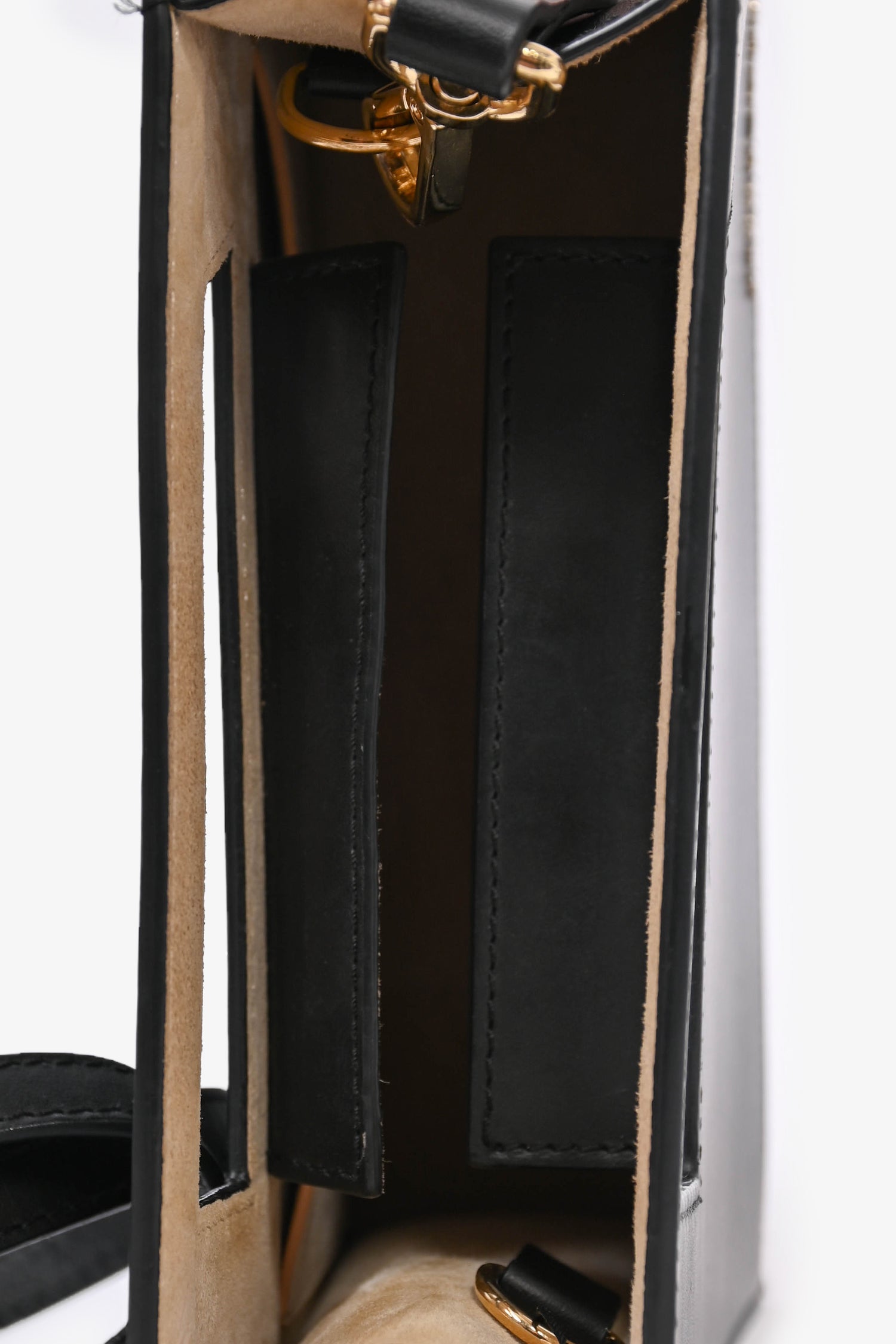 Refresh availabilityJacquemus Black Leather 'Le Petit Diag' Bag. Tonal topstitching. Detachable leather strap. Suede lined interior. Concealed dual magnetic flaps. Gold-tone hardware. Single interior compartment.