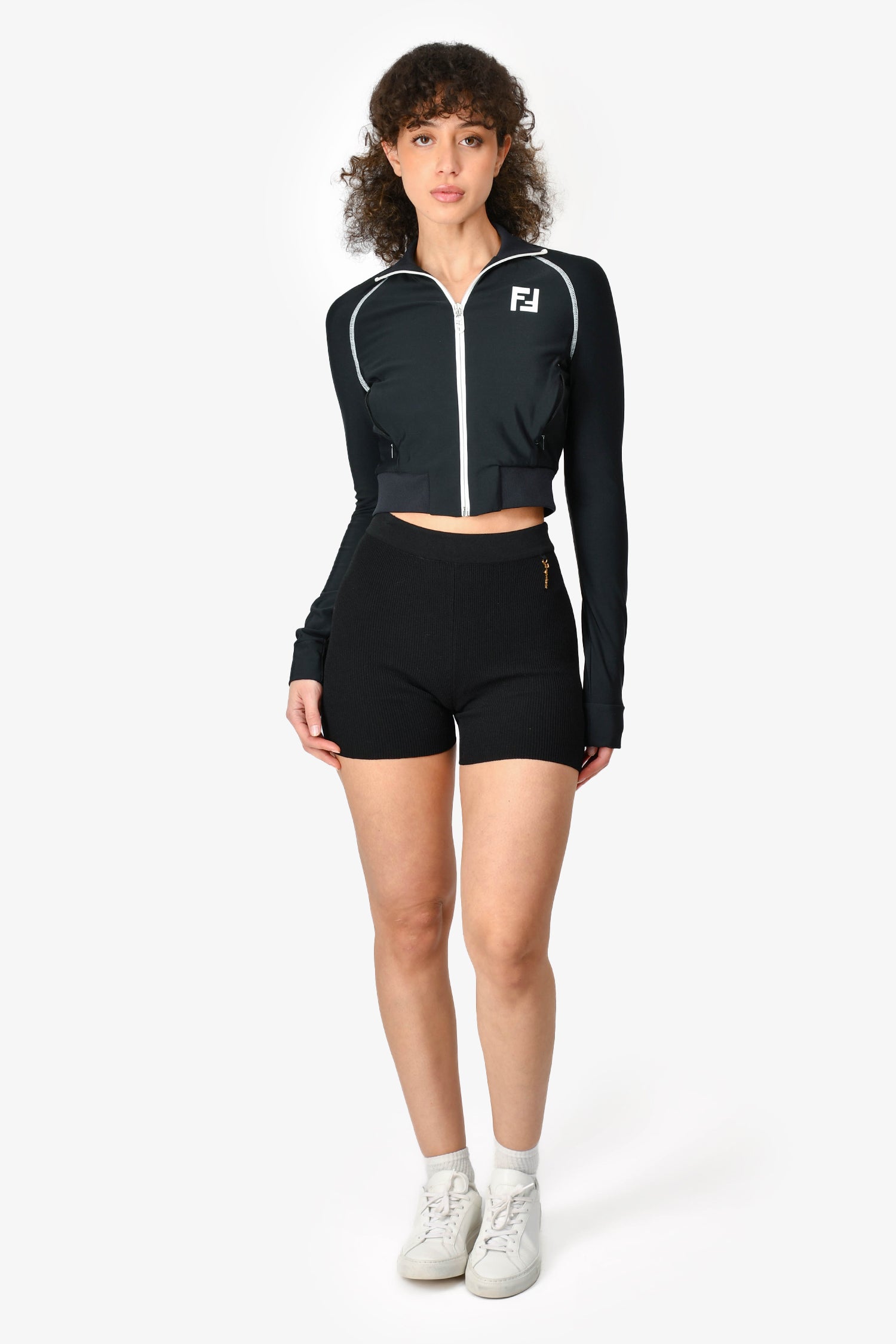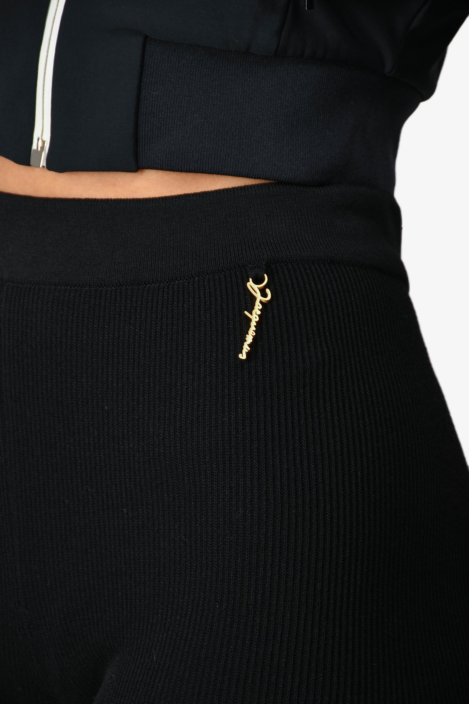 Refresh availabilityJacquemus Black Ribbed Knit Le Short Pralu Logo Charm Shorts. Gold-tone logo charm on the side. Tonal stitching.