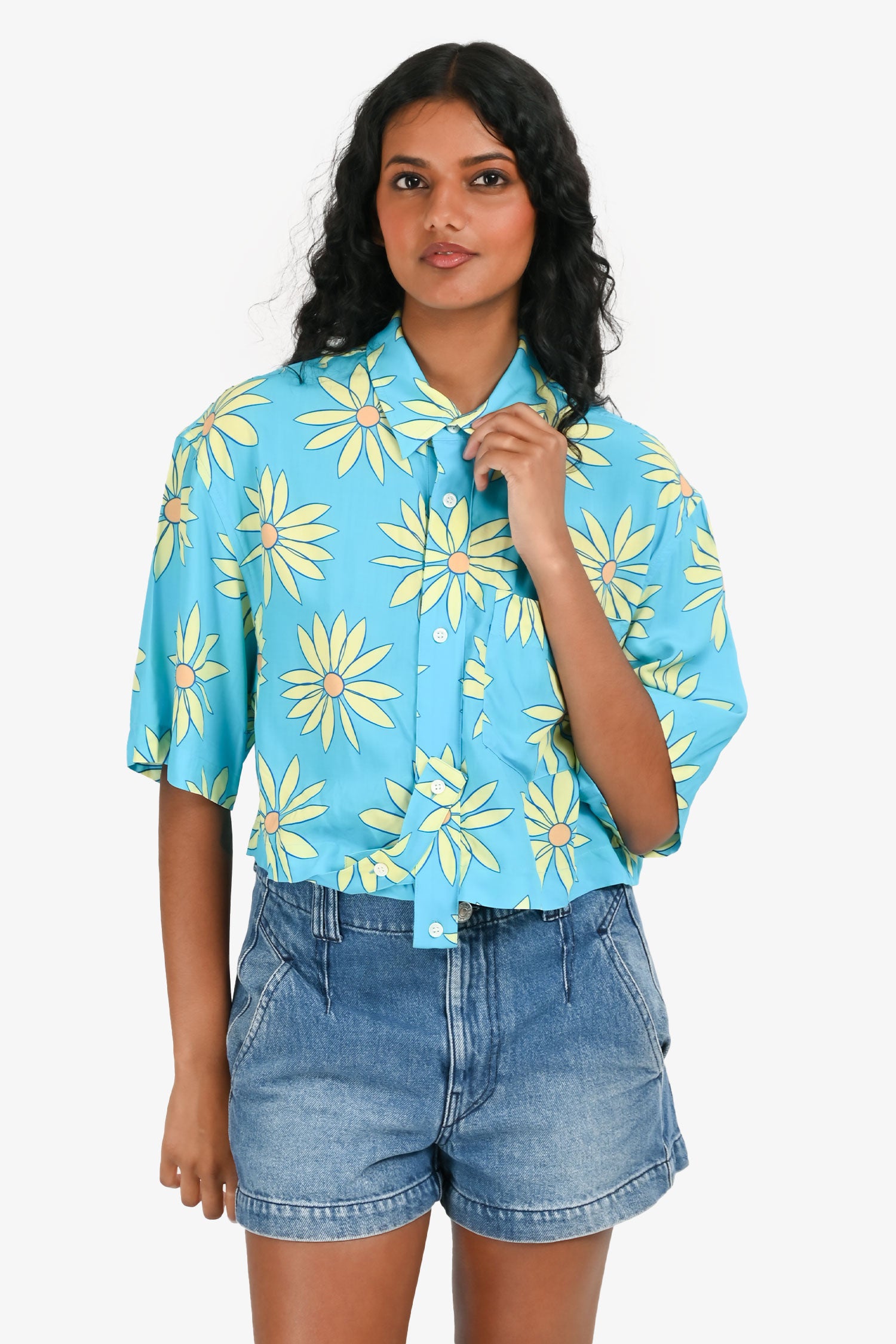 Jacquemus Blue Daisy Printed 'Le Splash' Buttoned Top Size XS