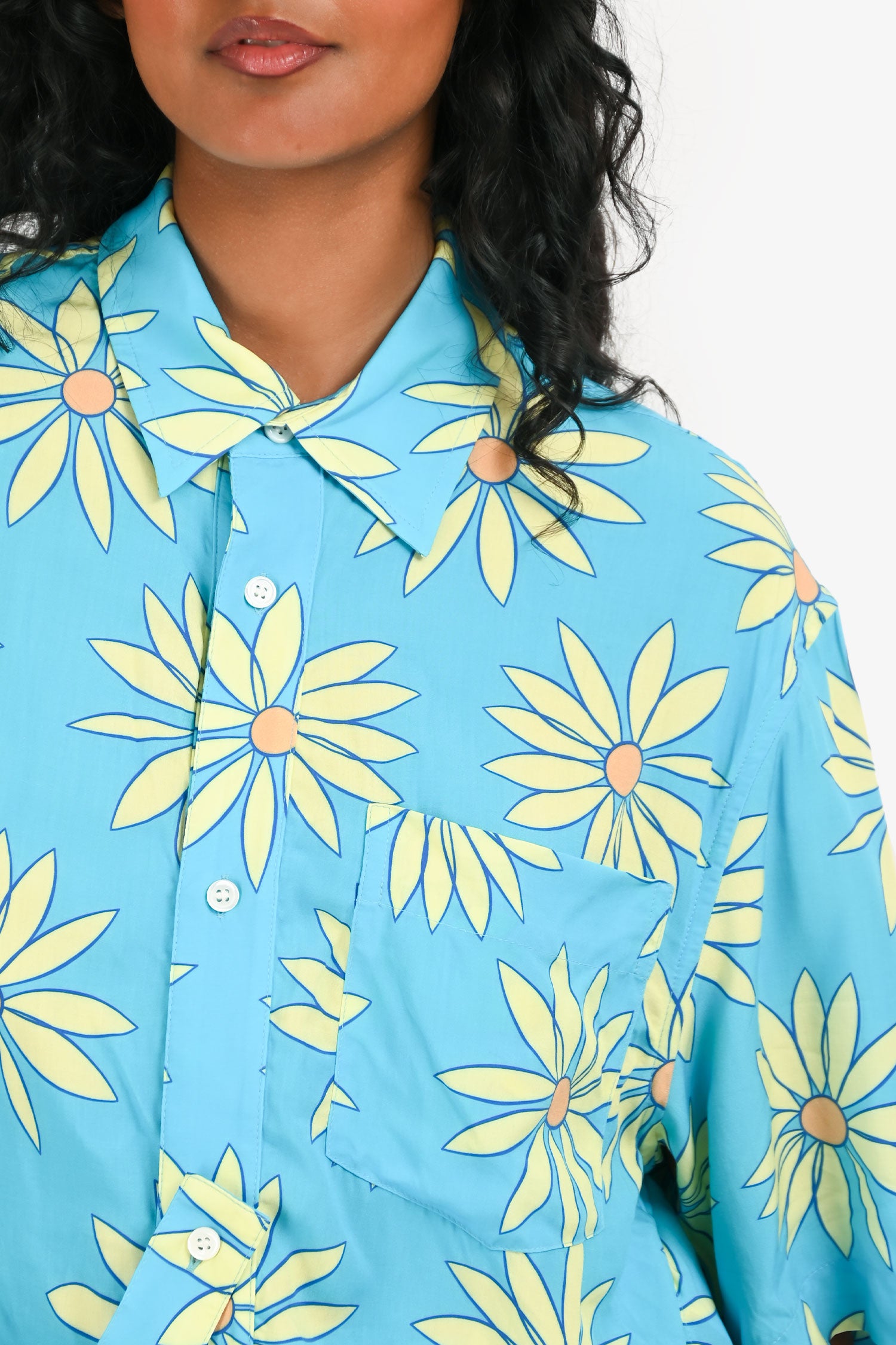 Refresh availabilityJacquemus Blue Daisy Printed 'Le Splash' Buttoned Top. Short sleeves. Front button closure. Front slip pocket. Tonal stitching.