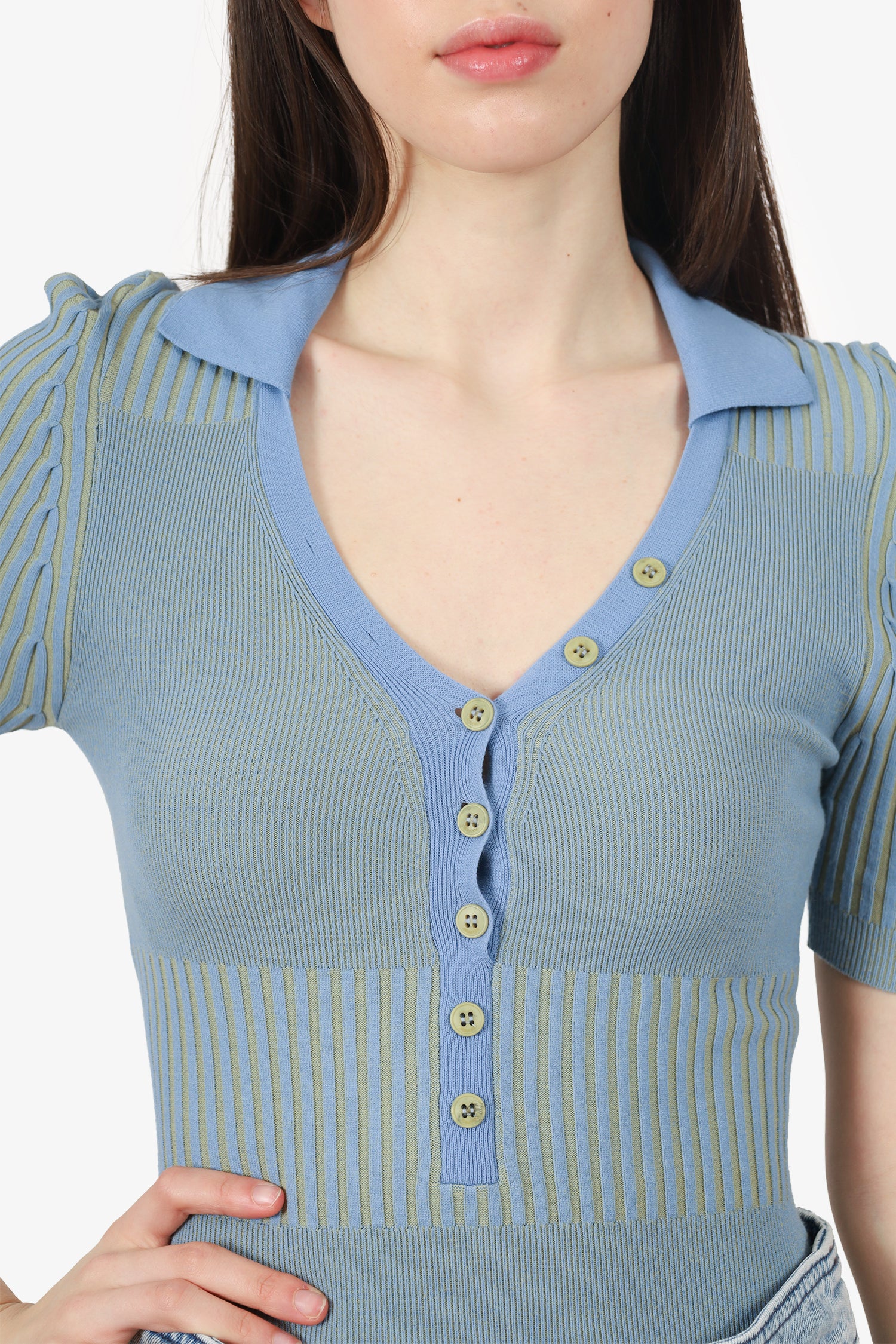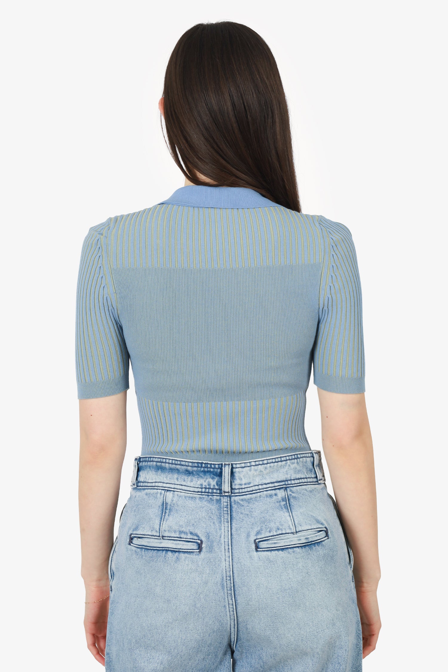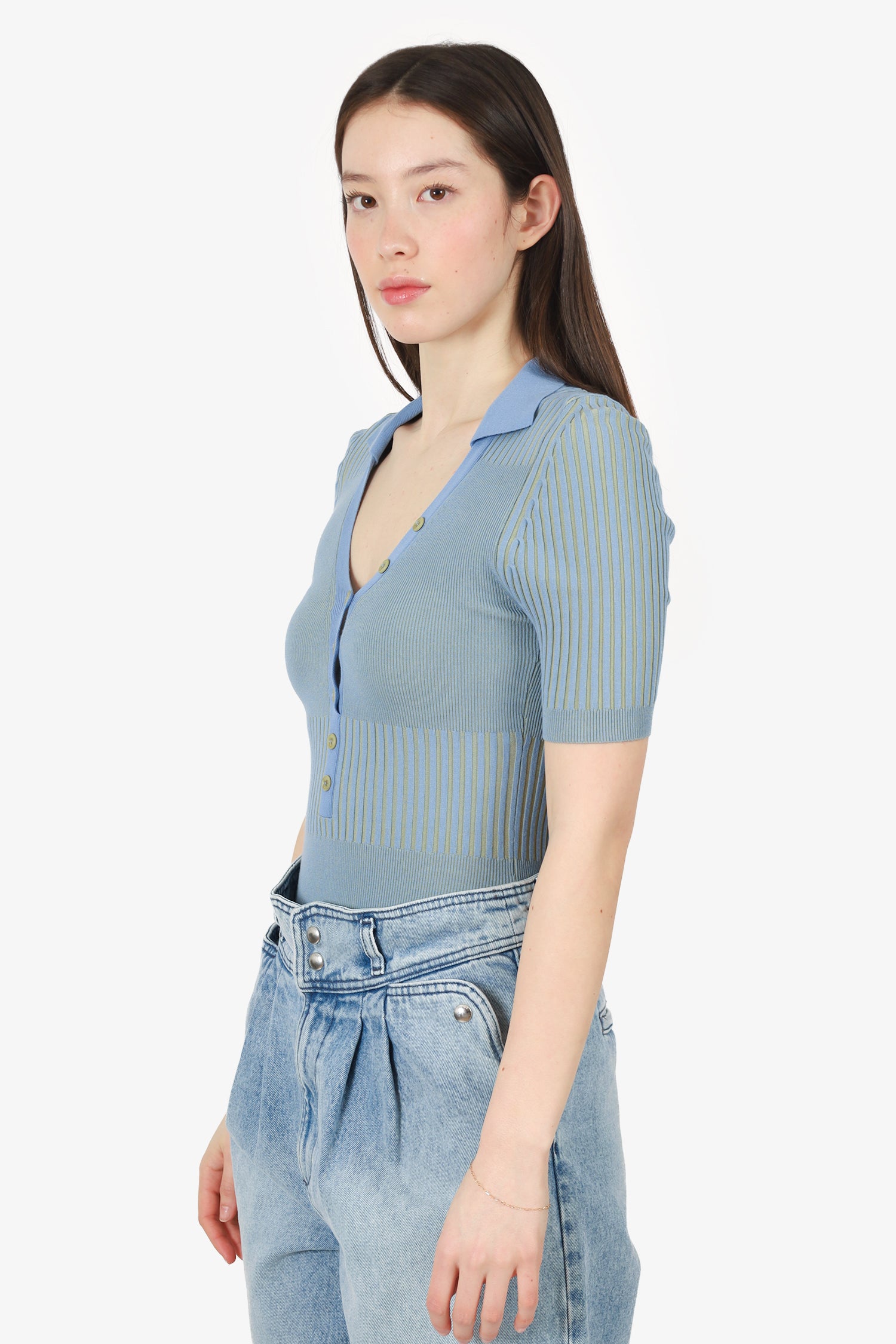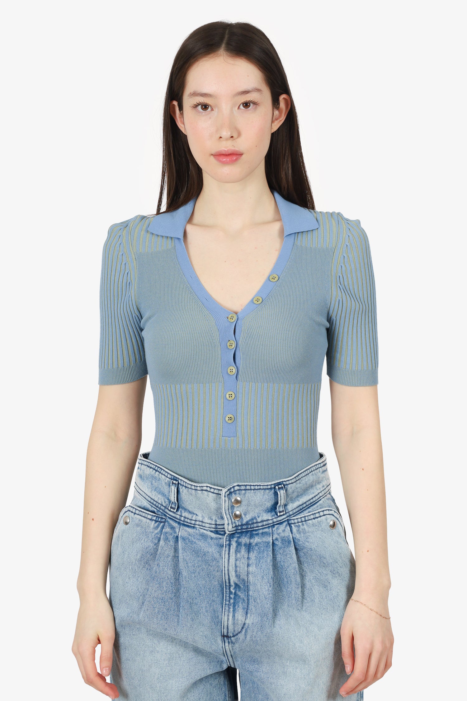 Refresh availabilityJacquemus Blue 'Le Body Yauco' Bodysuit. Collared neckline. Front button-up closure. Tonal stitching.