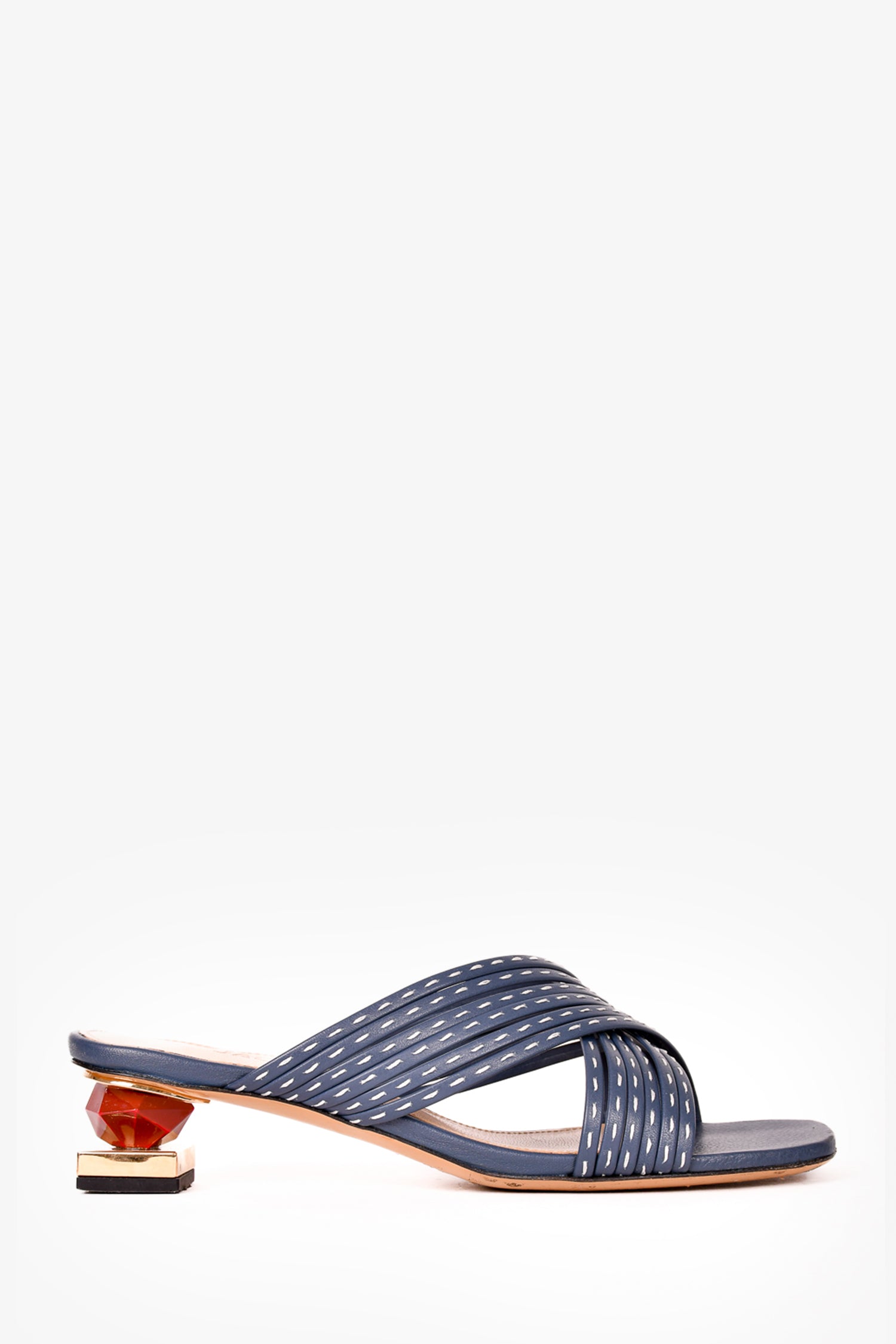 Refresh availabilityJacquemus Blue Stitched Asymmetrical Mule Sandals. Slip-on. Square toe. Tonal and contrast stitching.