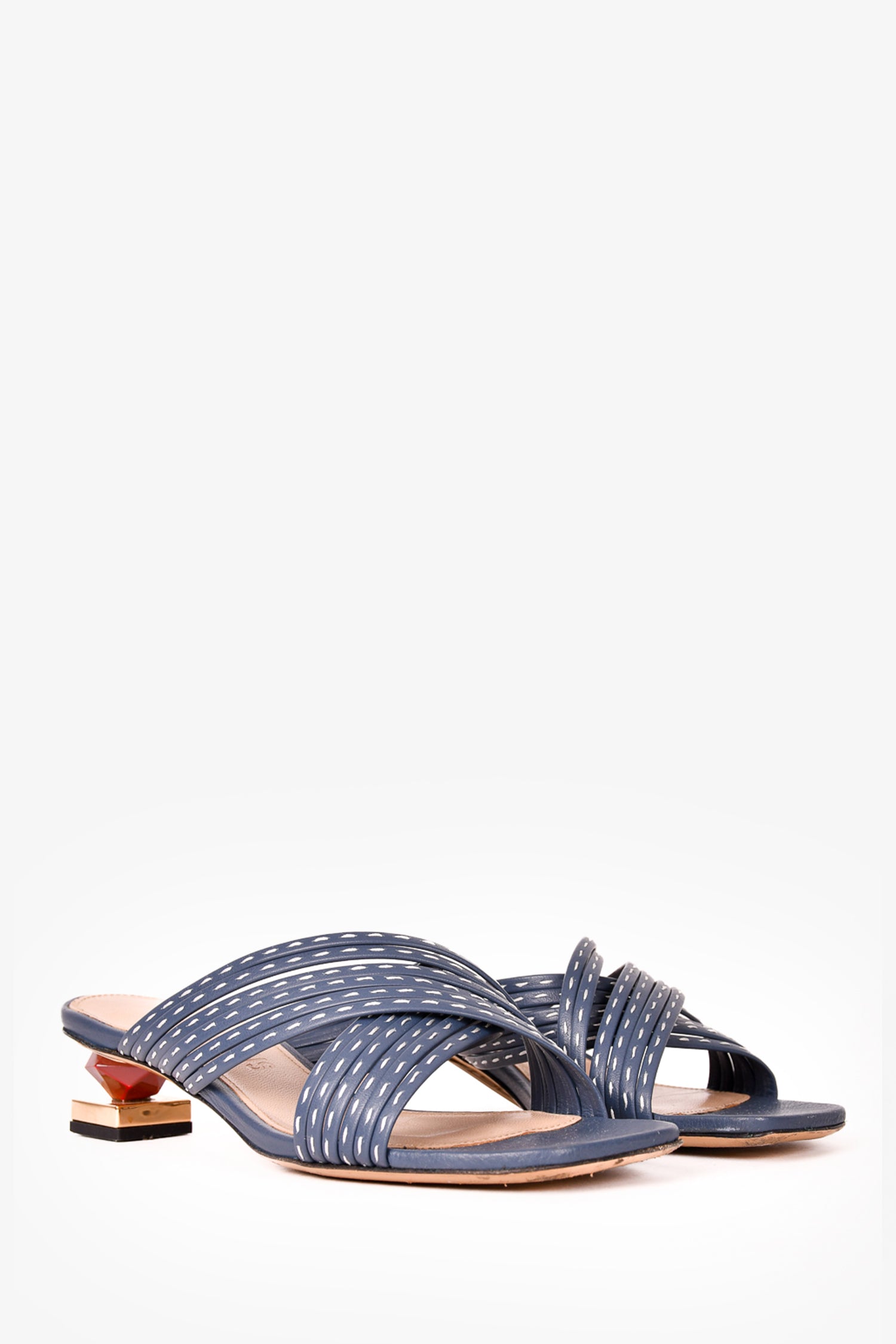 Jacquemus Blue Stitched Asymmetrical Mule Sandals Size 36