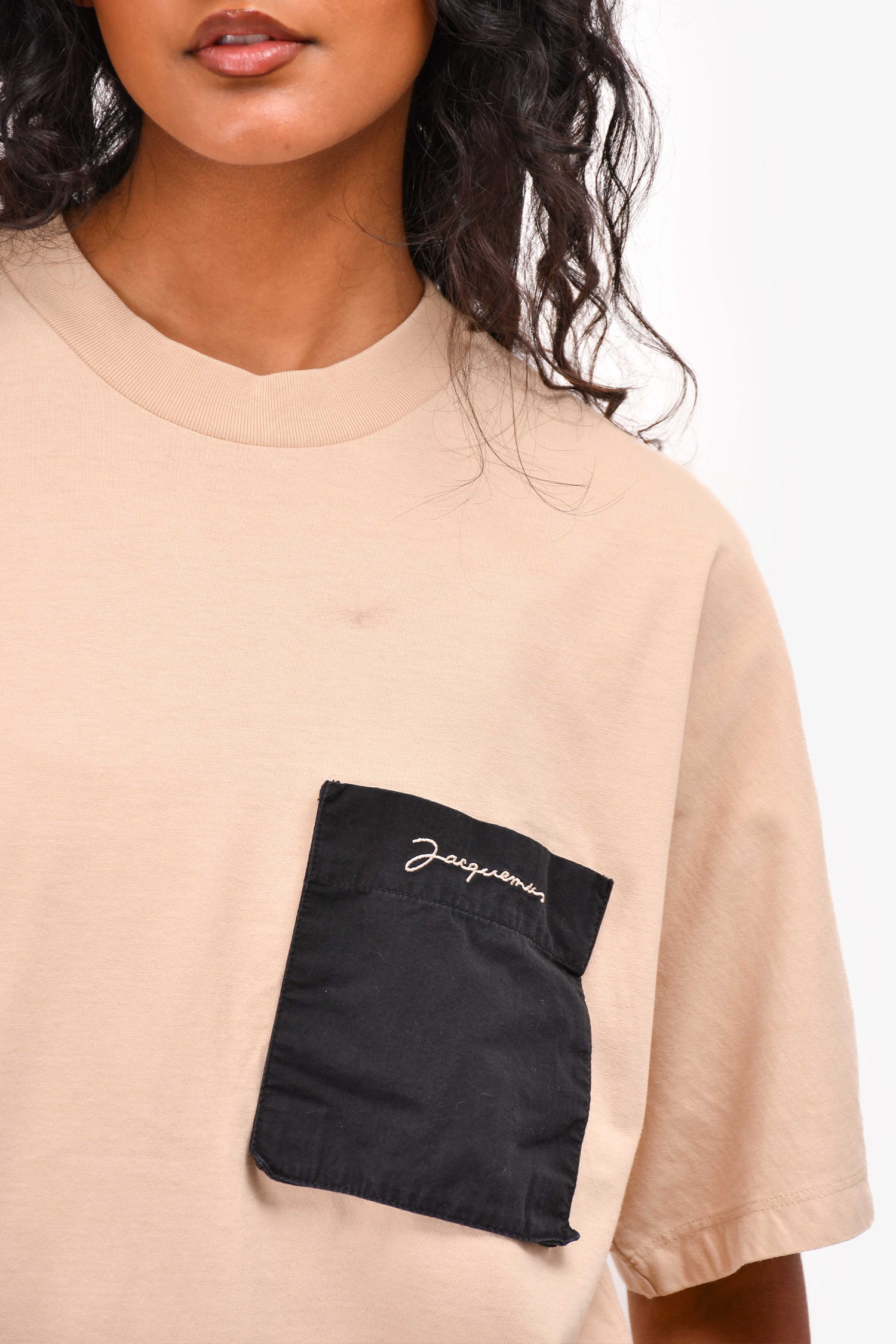 Refresh availabilityJacquemus Brown/Black Logo Crewneck Shirt. Tonal stitching.
