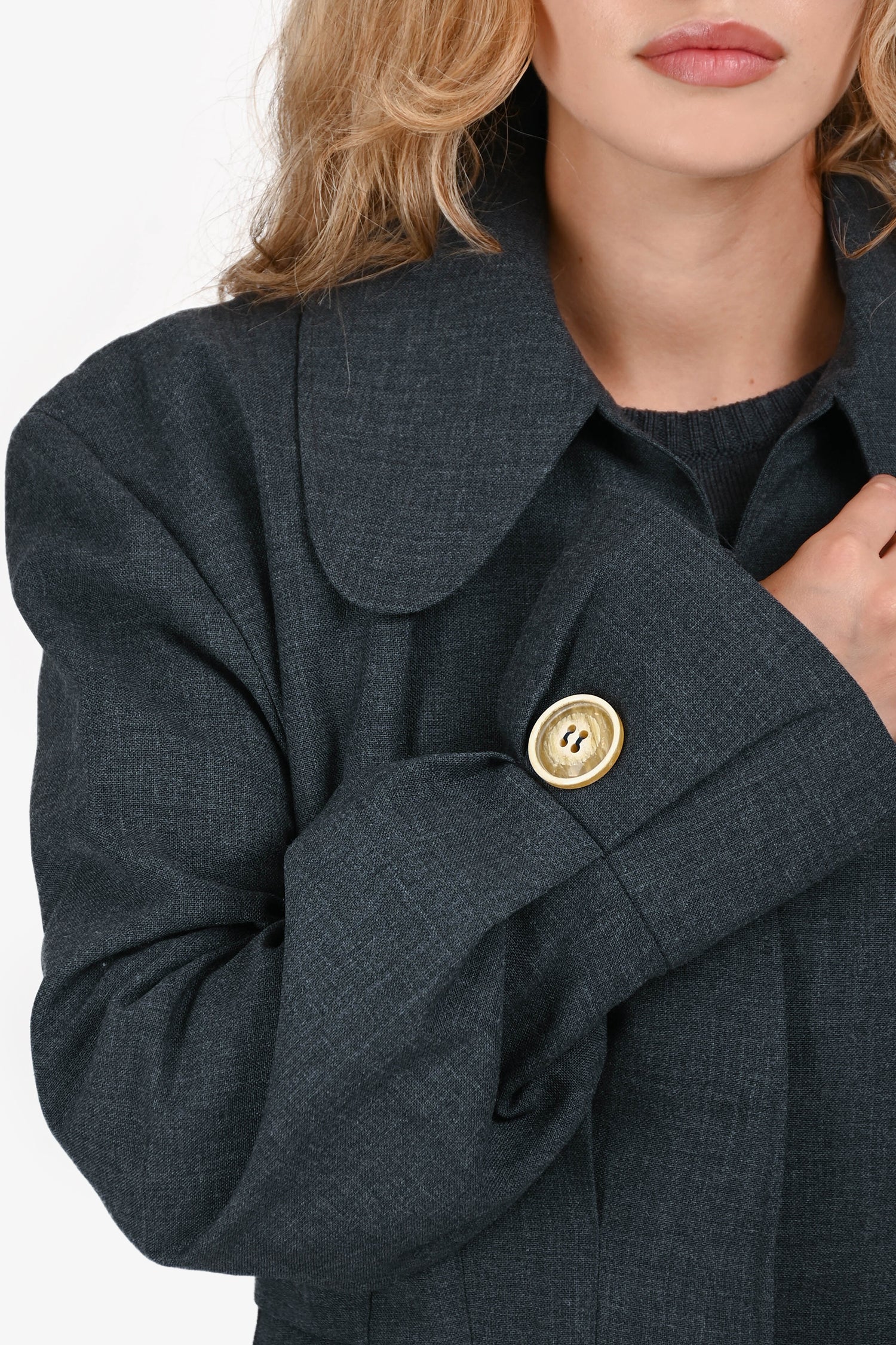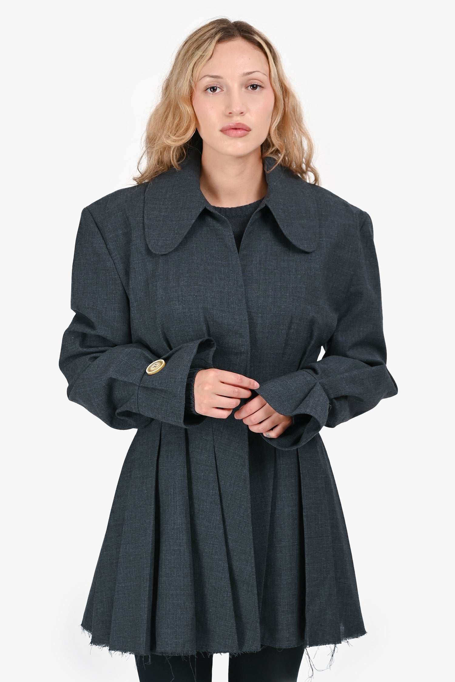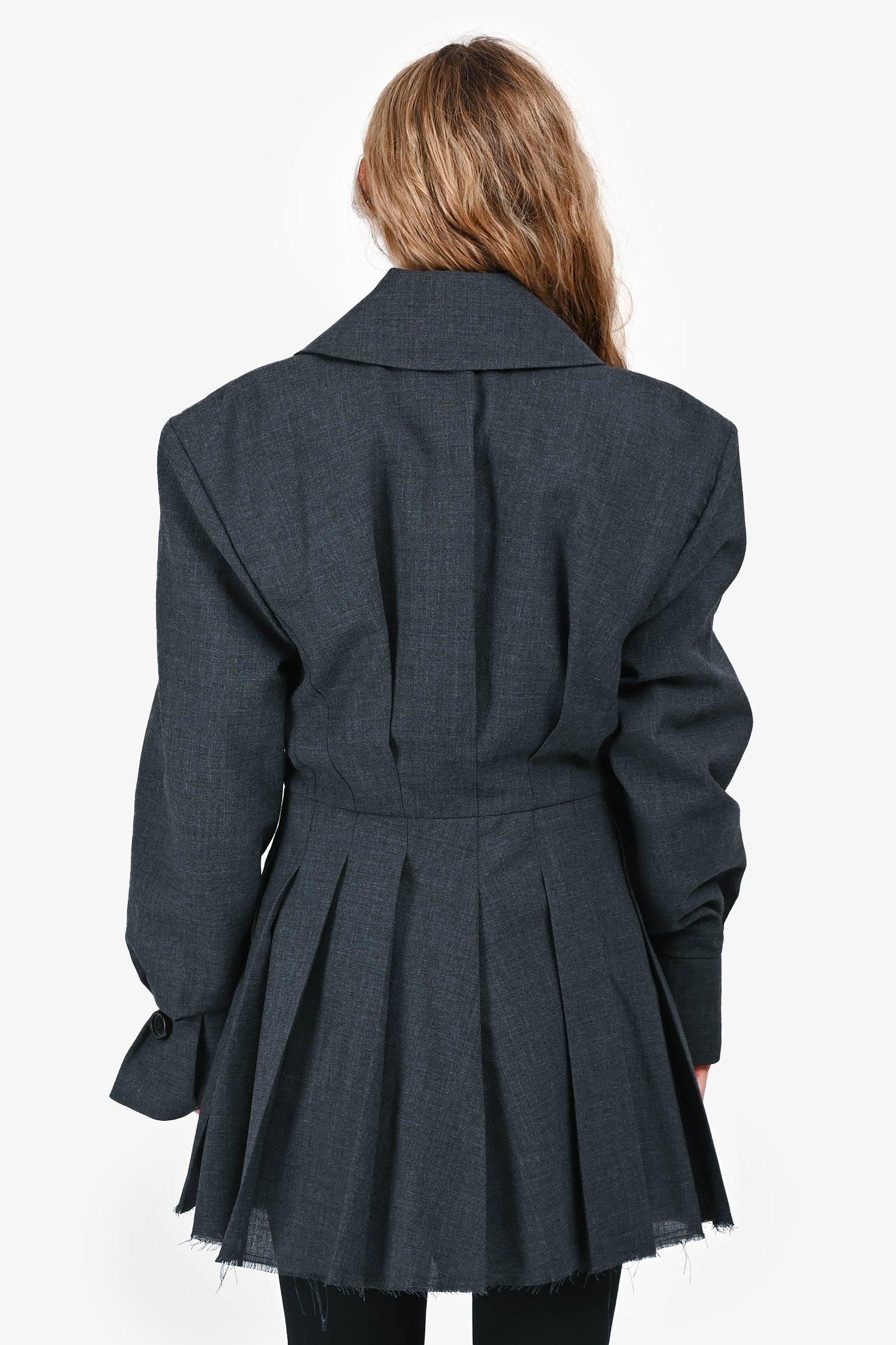 Jacquemus Dark Grey Wool Pleated Blazer Dress Size 38