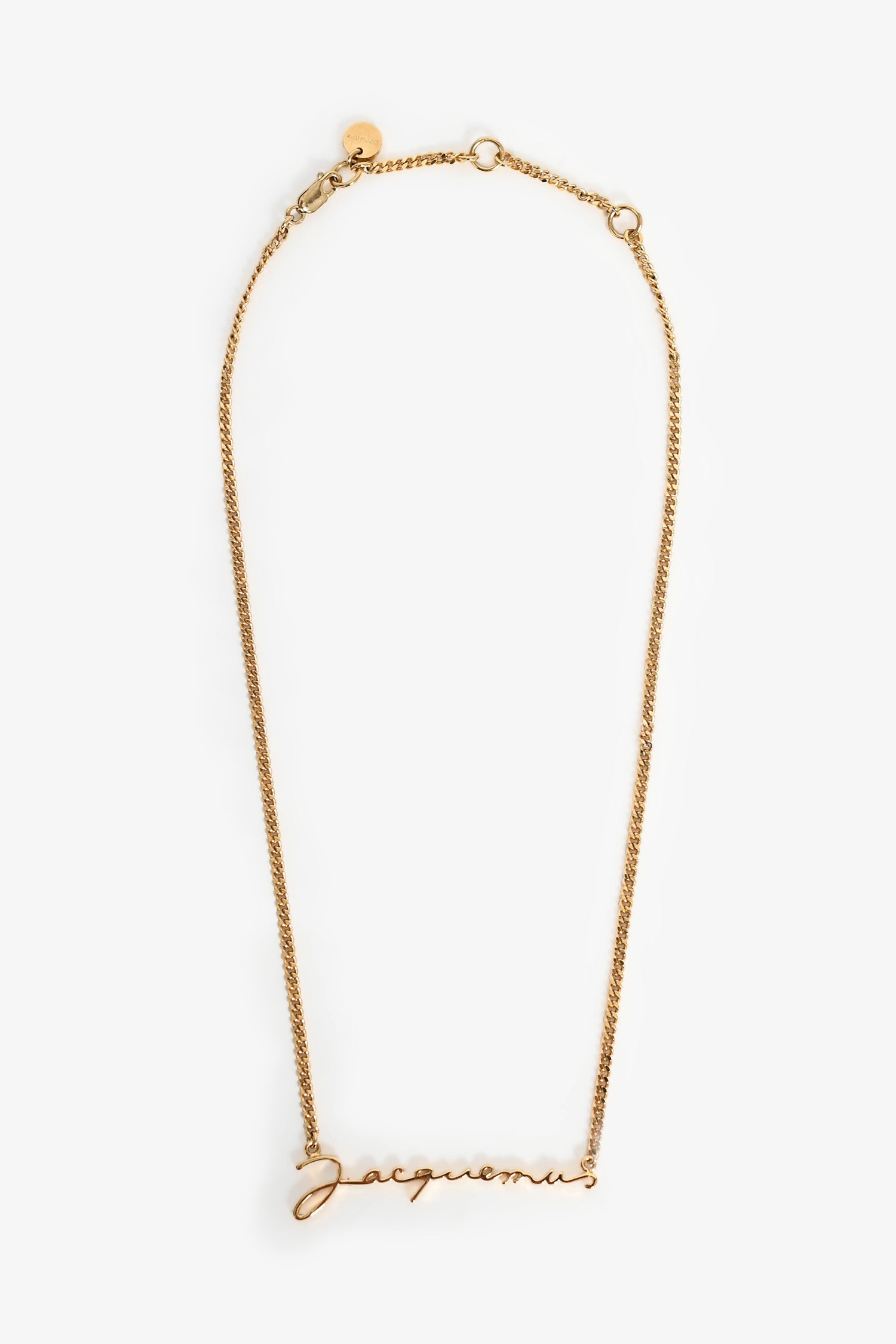 Refresh availabilityJacquemus Gold Tone Logo Necklace. Lobster clasp closure.