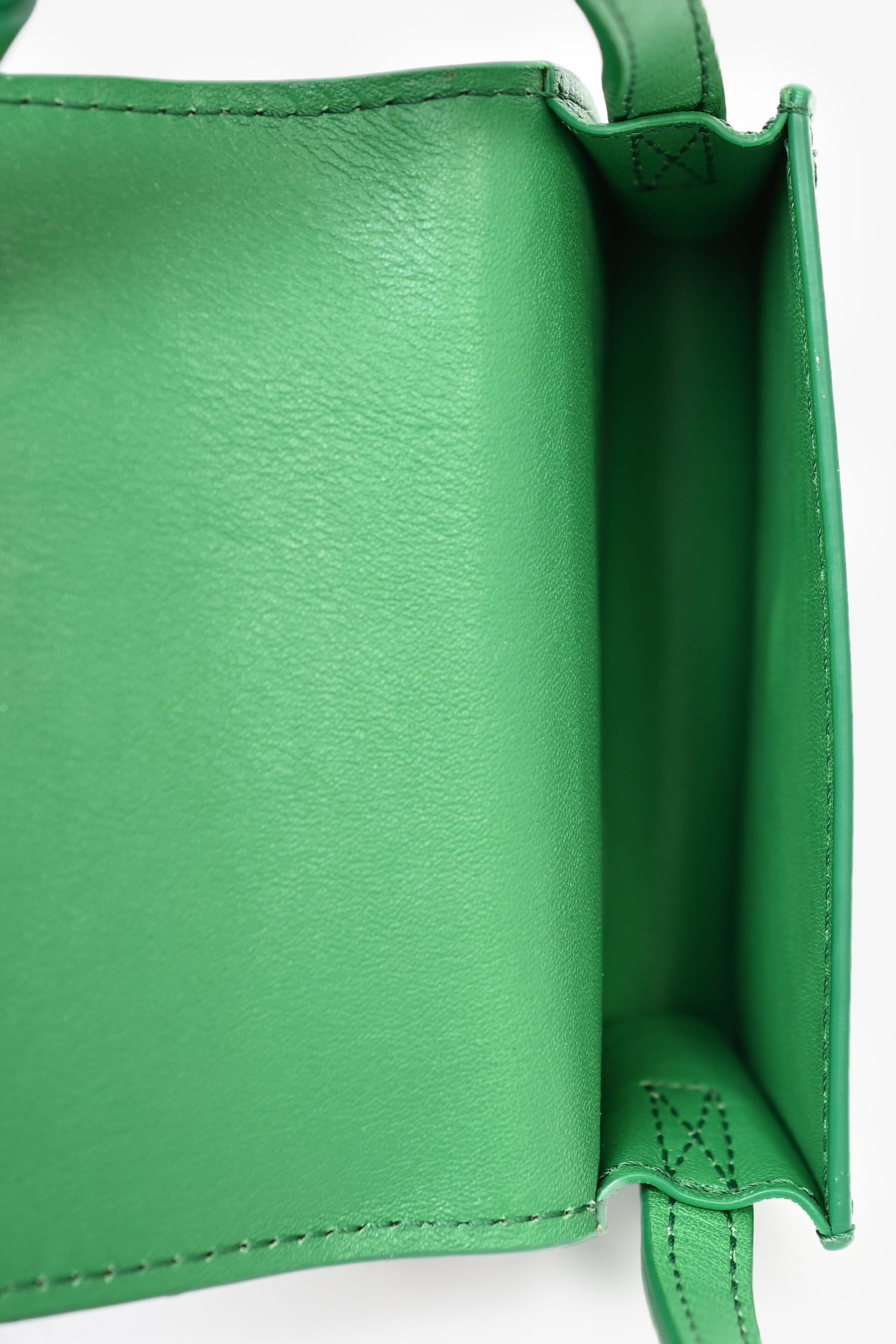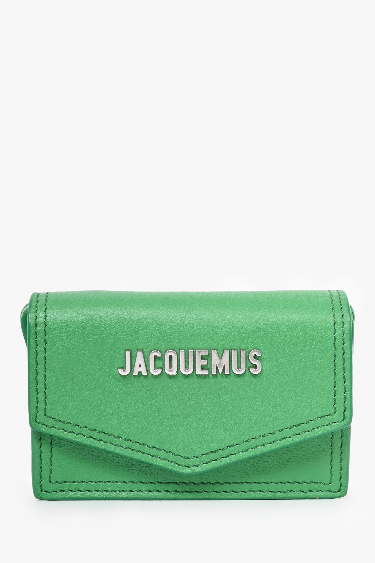 Refresh availabilityJacquemus Green Leather Nano 'Porte Azur' Card Holder Crossbody. Front fold-over flap with snap-button closure. Open interior. Adjustable strap. Silver-tone hardware. Contrast stitching.