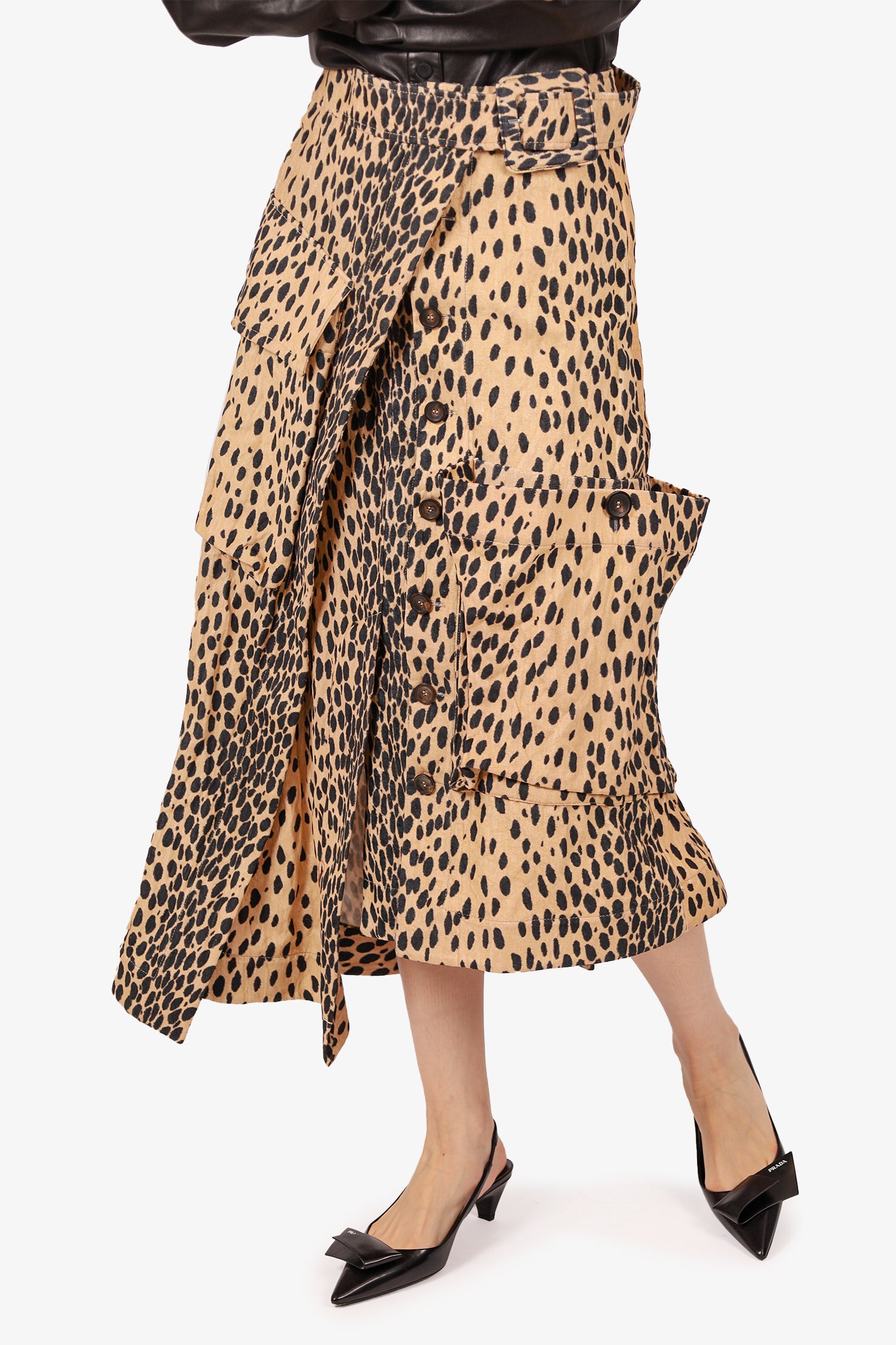 Jacquemus Leopard Print Asymmetric Belted Midi Skirt Size 38 with Tags