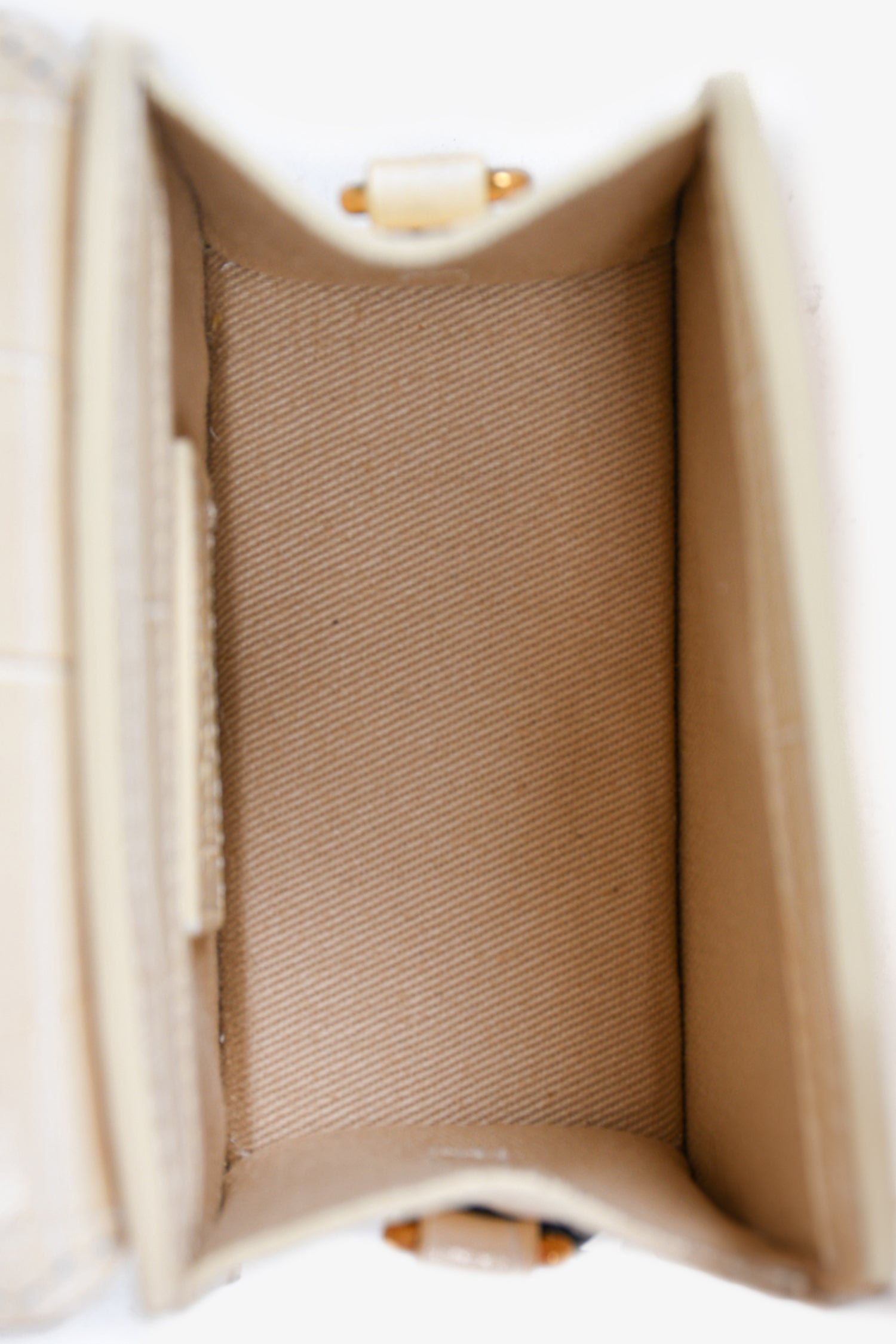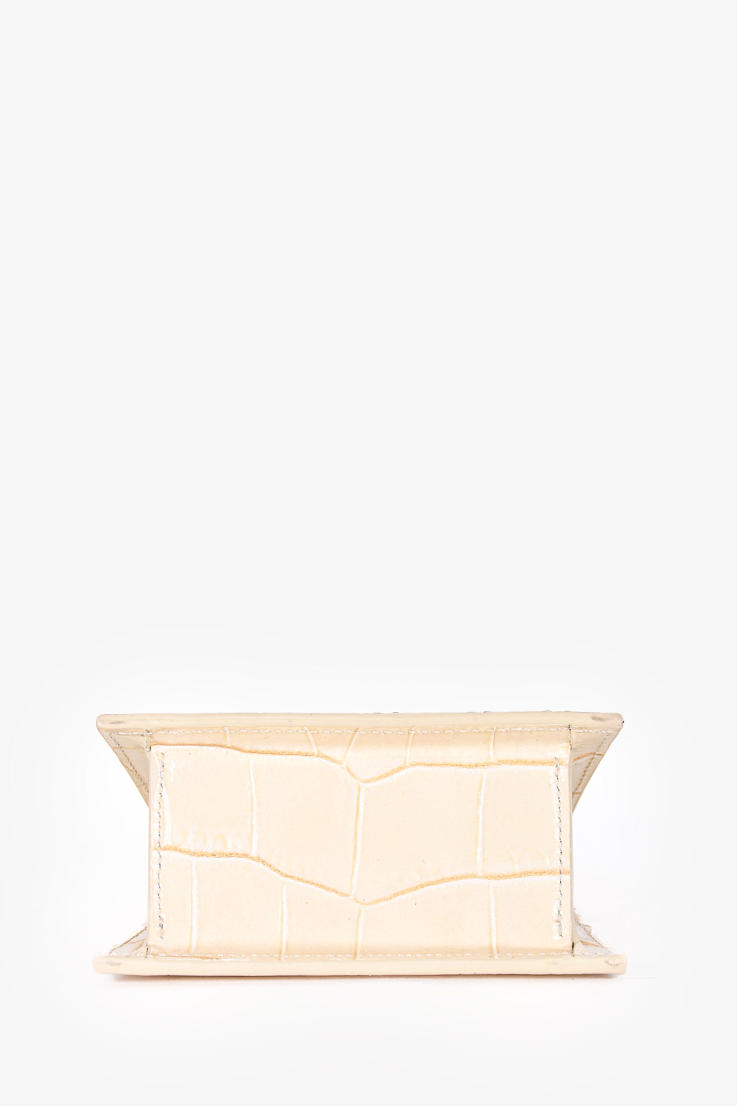 Refresh availabilityJacquemus Light Yellow Croc Embossed Le Chiquito Crossbody. Front fold over flap with snap closure. Tonal stitching. Gold and silver-toned hardware.