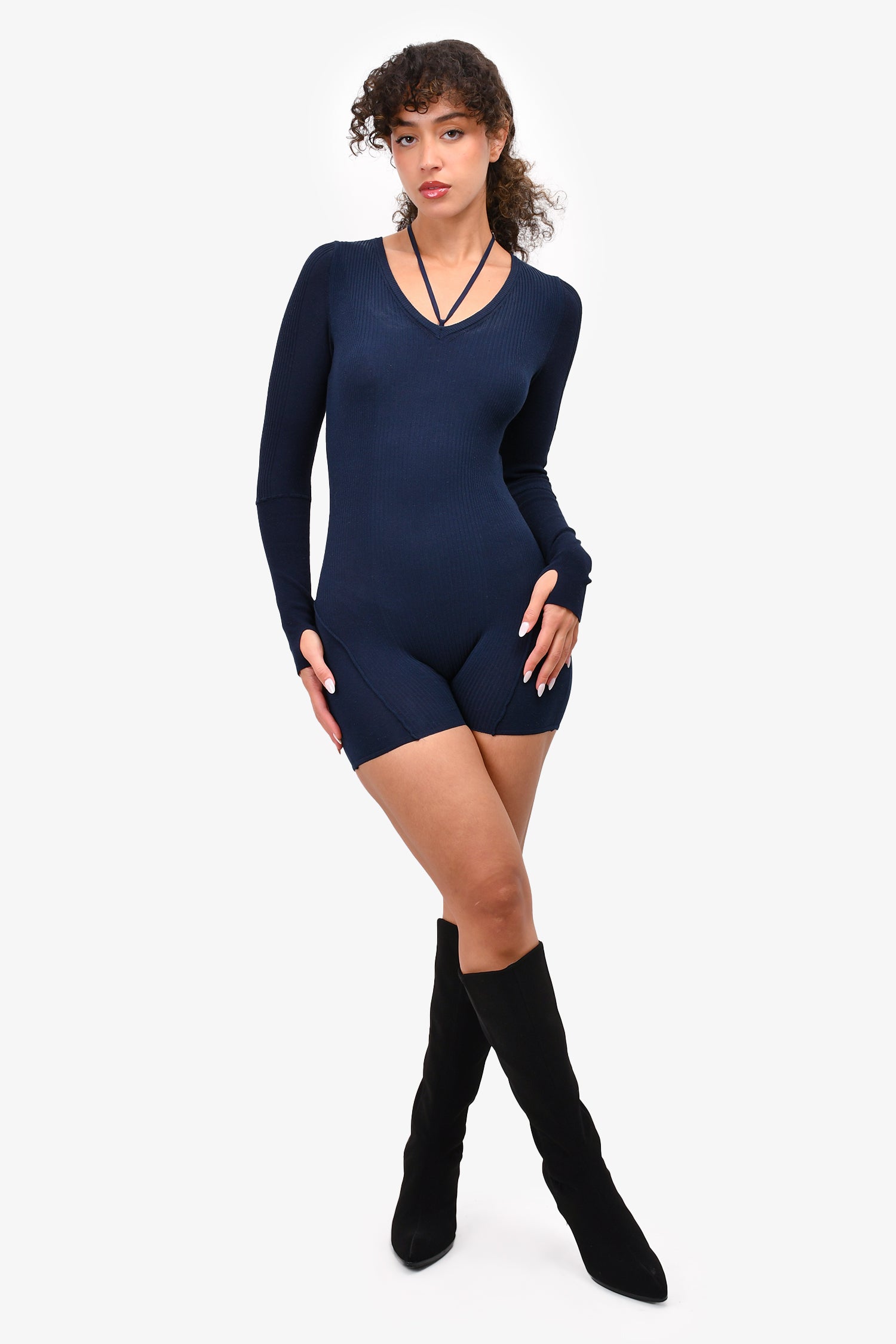 Jacquemus Navy Ribbed Knit Thumbhole Romper Size 34