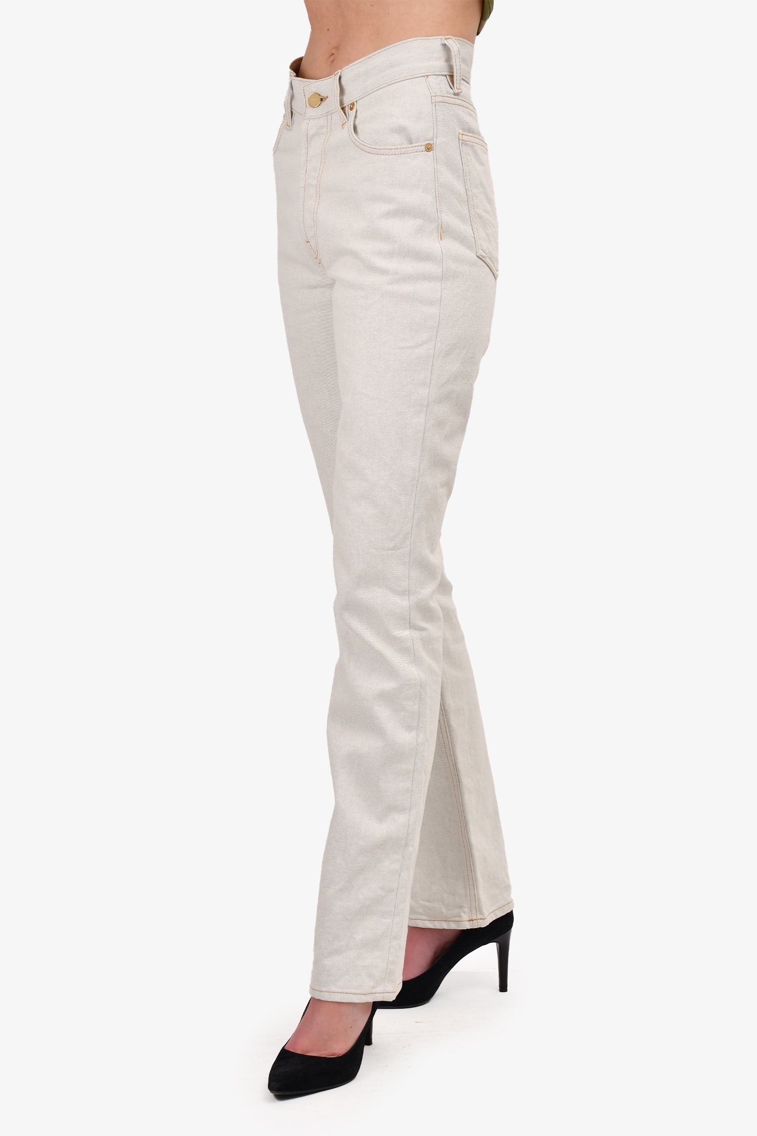 Refresh availabilityJacquemus Off White Wash Denim Jeans. Front zip and button closure. Front and rear pockets. Waist belt loops.