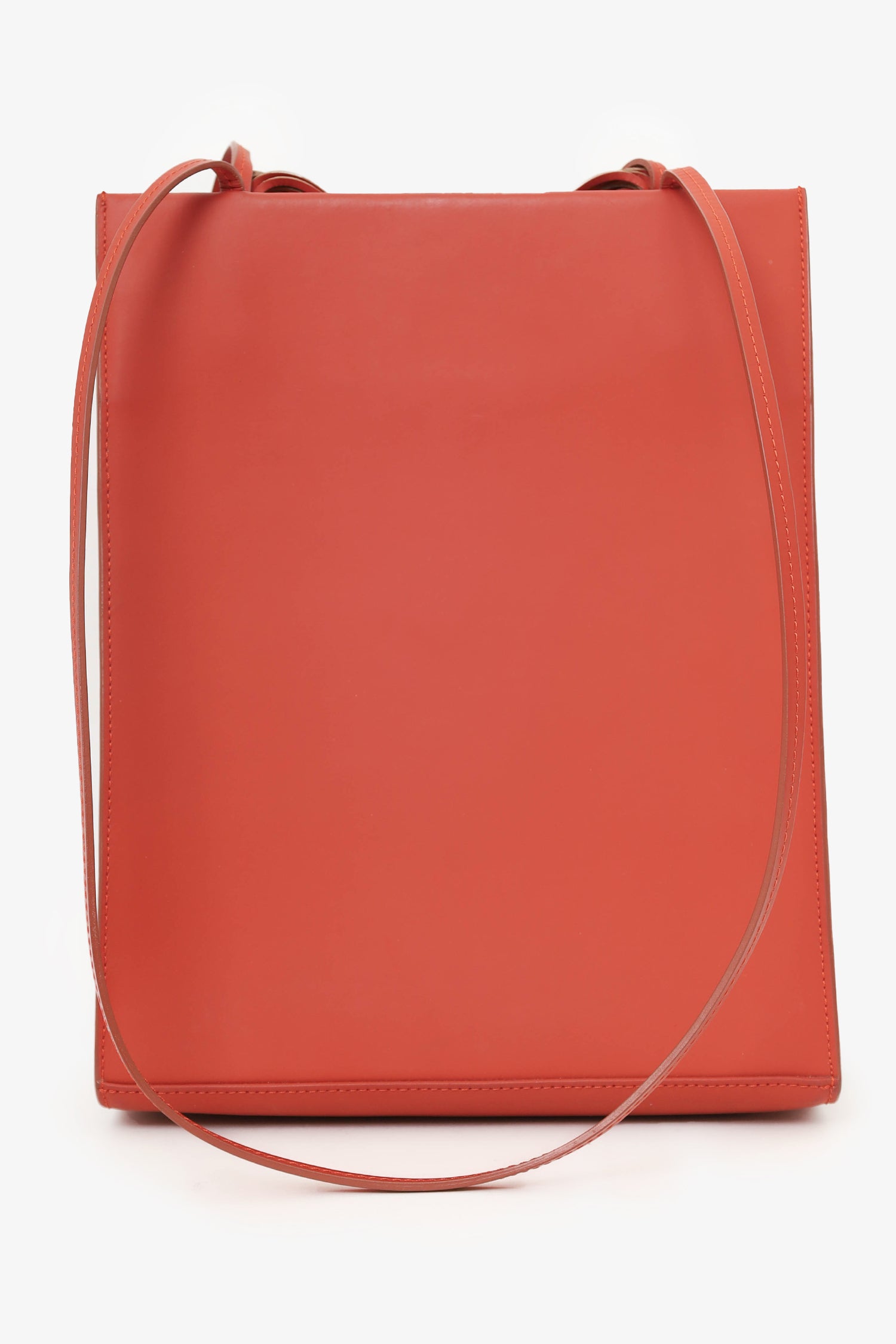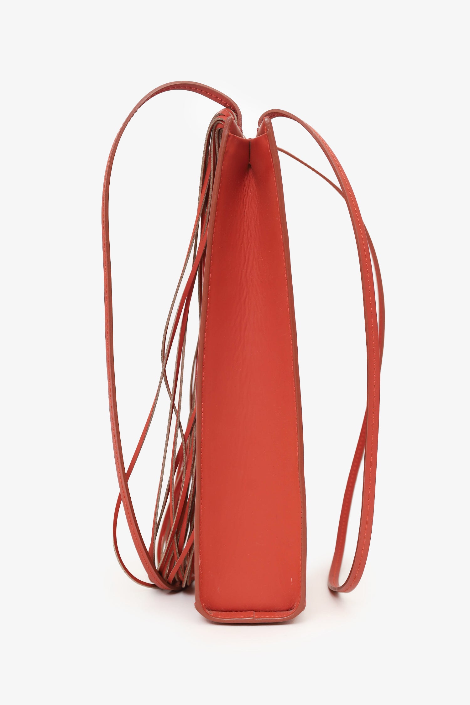 Condition: This item is in good pre-loved condition with some creasing throughout. Some discolouration throughout orange material. Darkening at bottom base. Faint scratch and mark at the rear exterior. Minor mark in the interior.