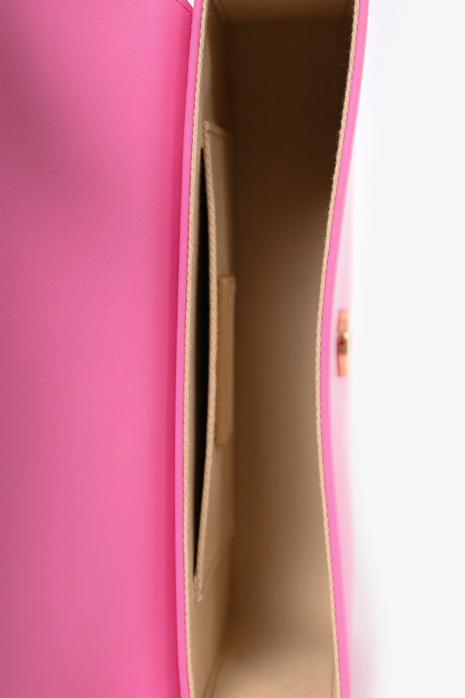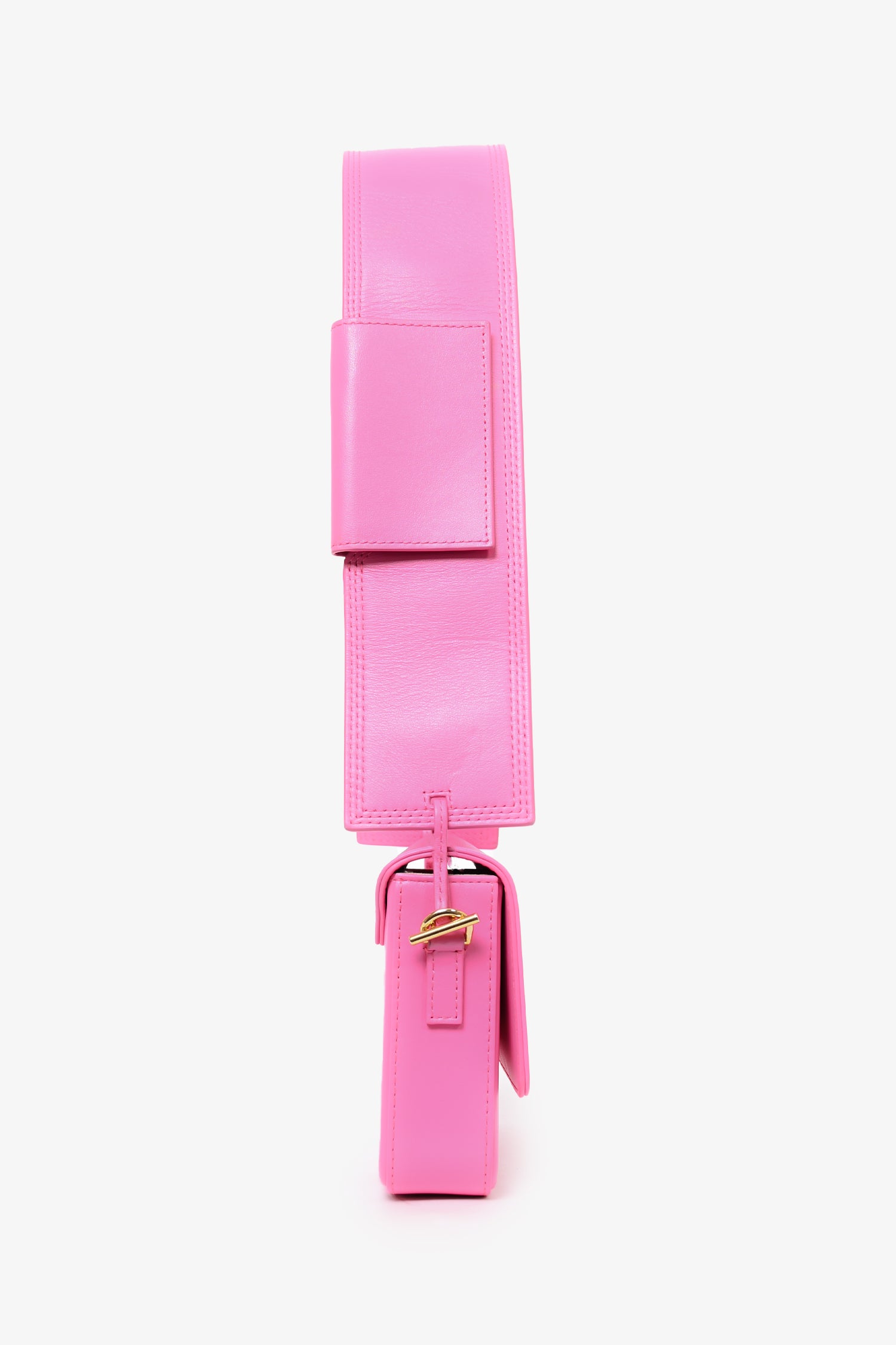 Refresh availabilityJacquemus Pink Leather 'Le Carinu' Shoulder Bag. Fold-over flap with magnetic closure. Single open interior compartment with wall slip pocket. Gold-tone hardware. Unlined. Tonal stitching.