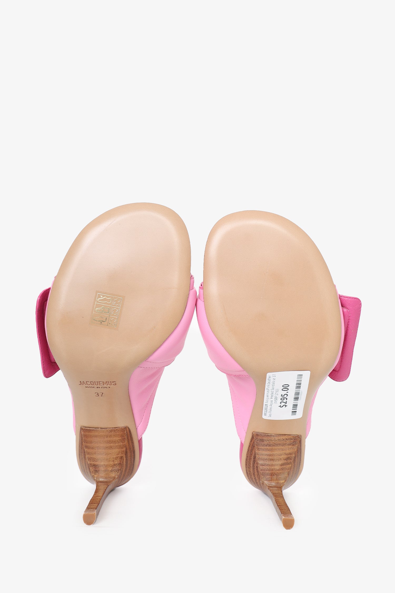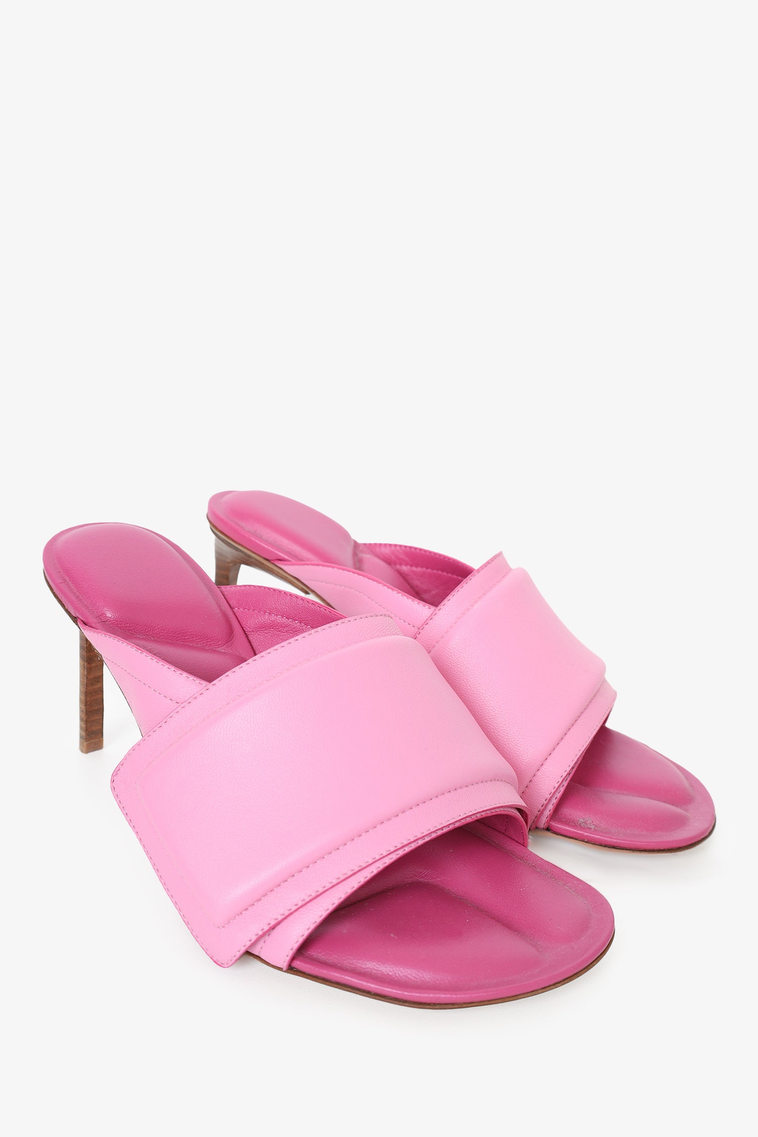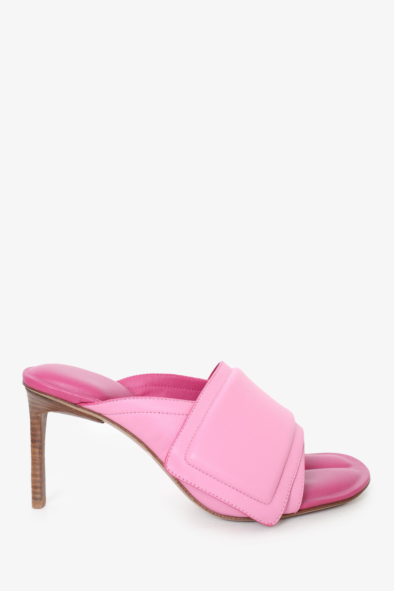 Refresh availabilityJacquemus Pink Leather 'Les Mules Aqua' Heeled Sandals. Slip-on. Tonal stitching.