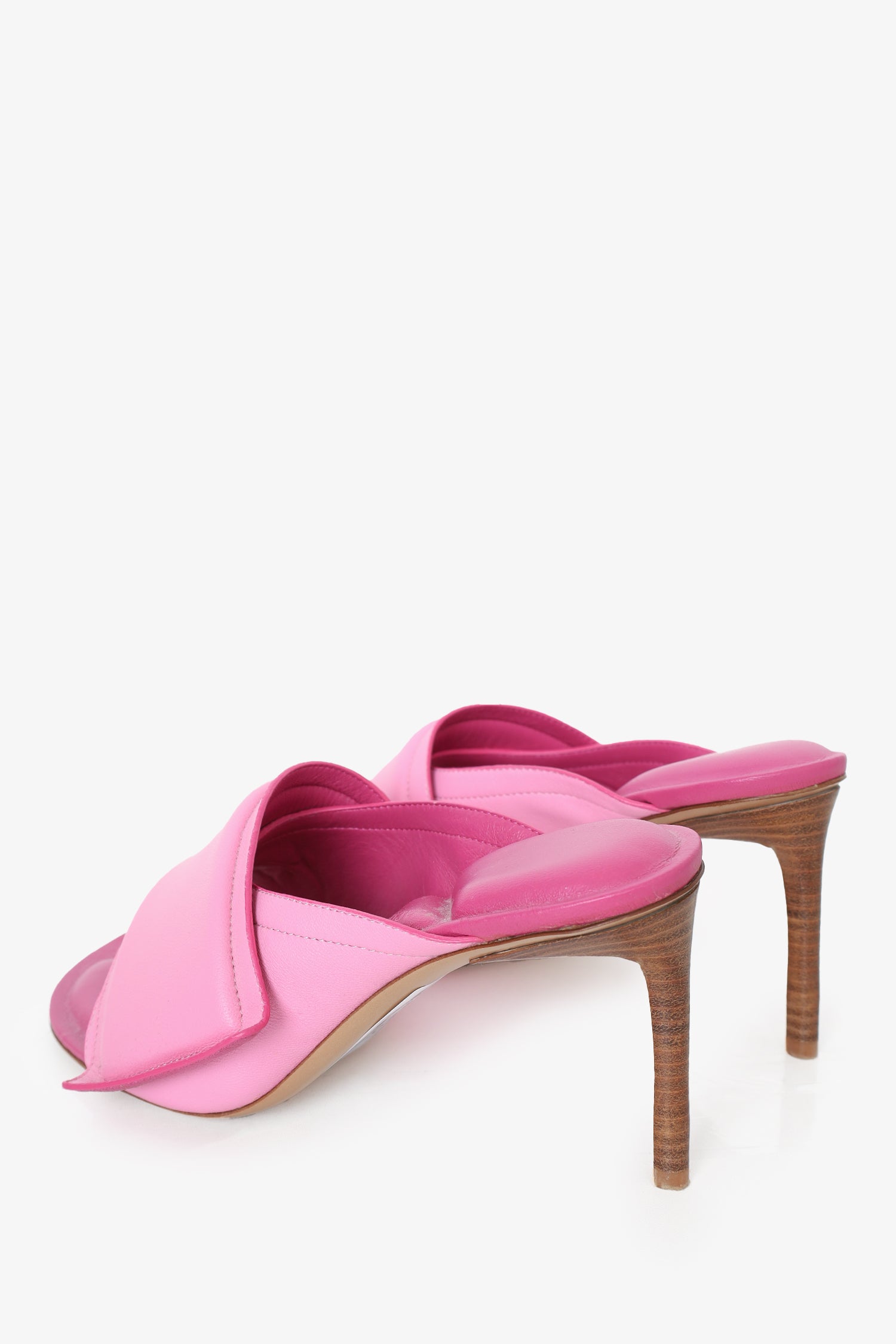 Jacquemus Pink Leather 'Les Mules Aqua' Heeled Sandals size 37