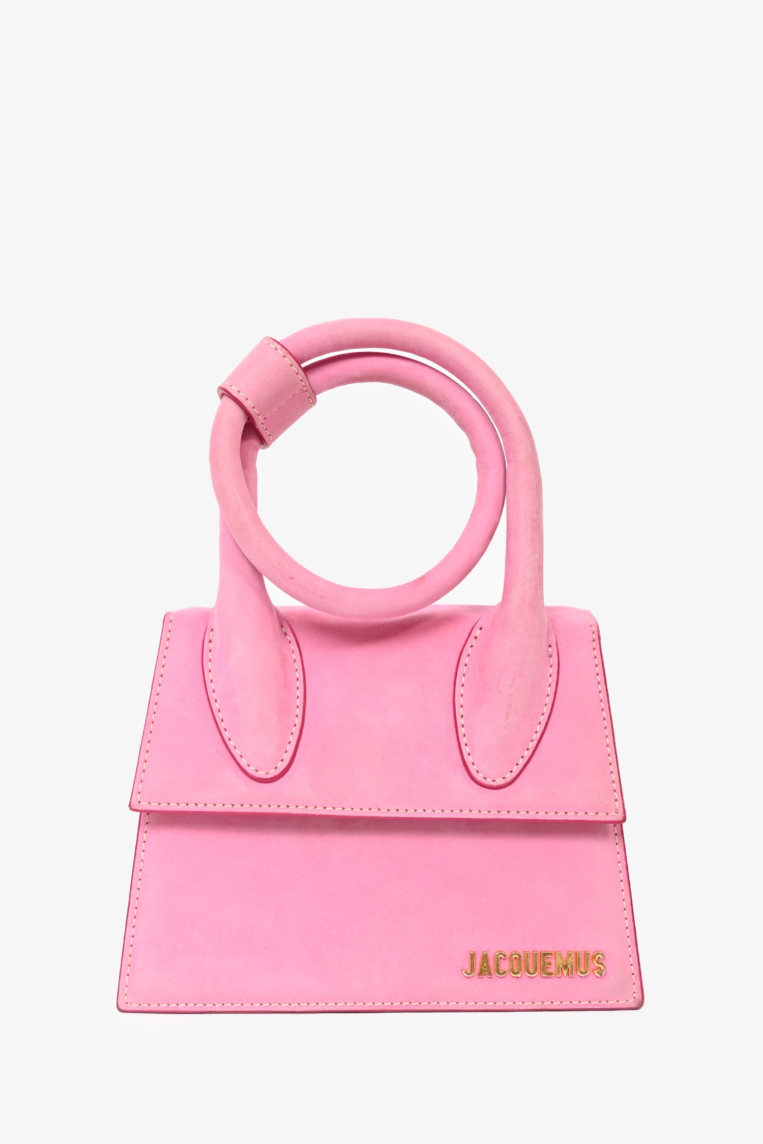 Jacquemus Pink Suede Le Chiquito Noeud Top Handle with Strap