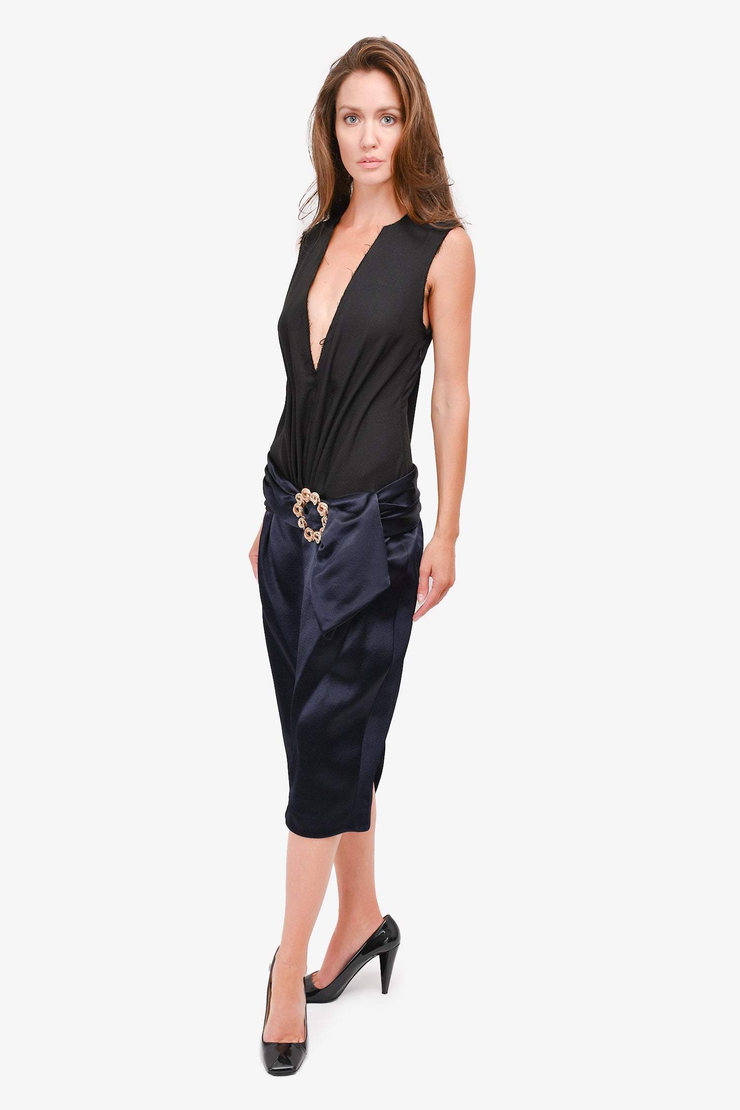 Jacquemus Runway Black/Navy Blue Brooch Embellished Midi Dress Size 34