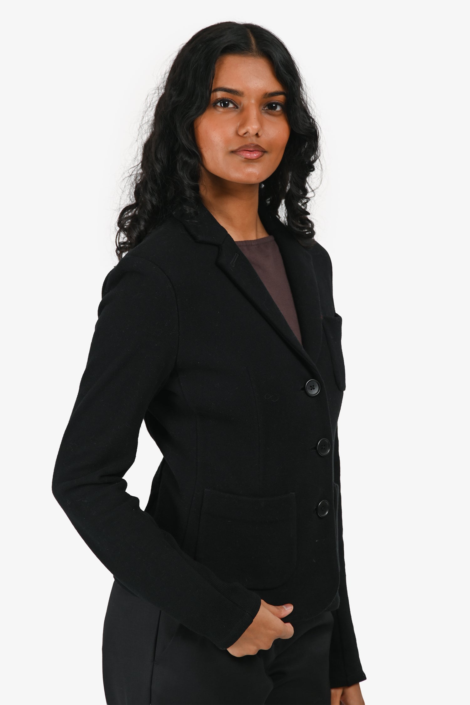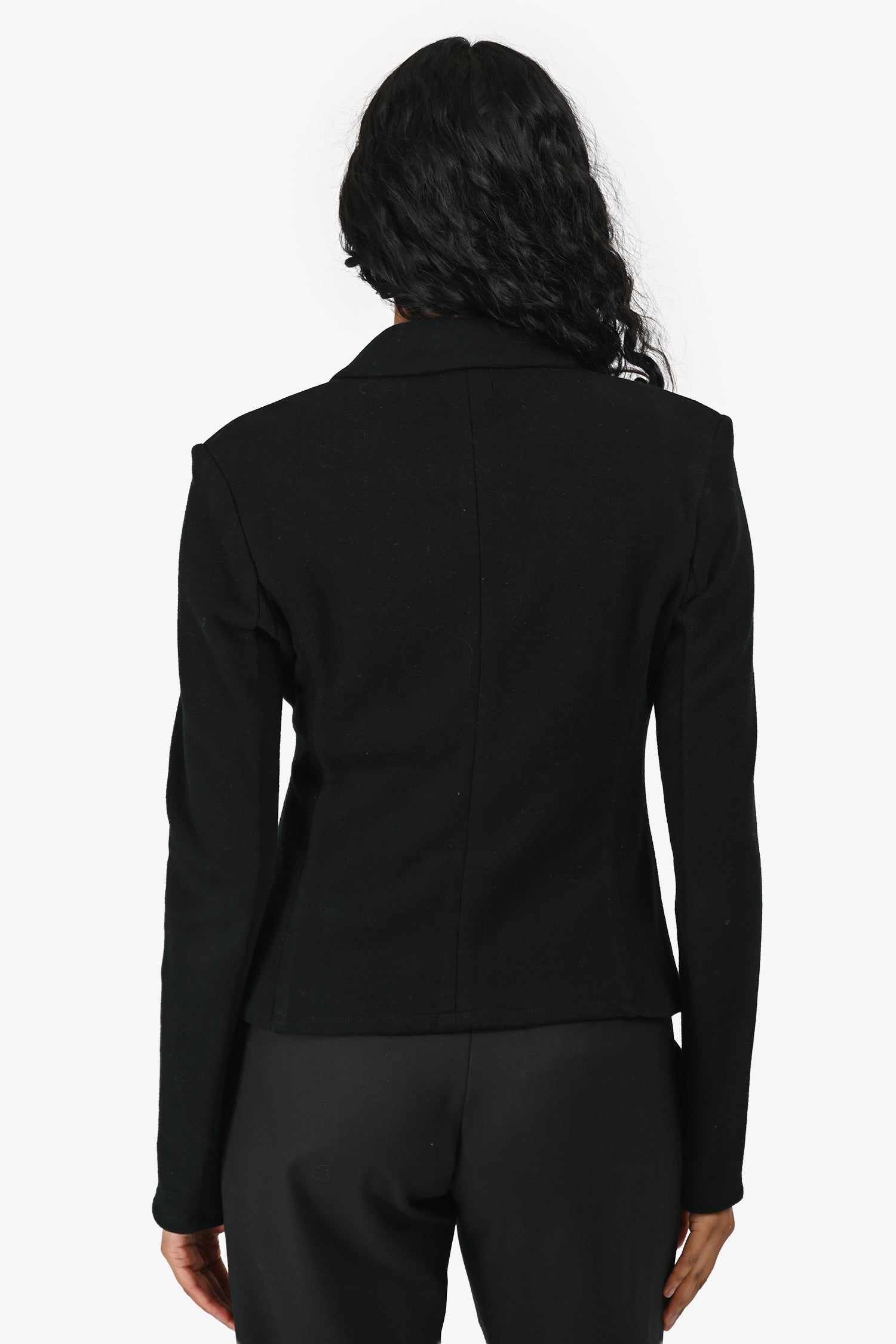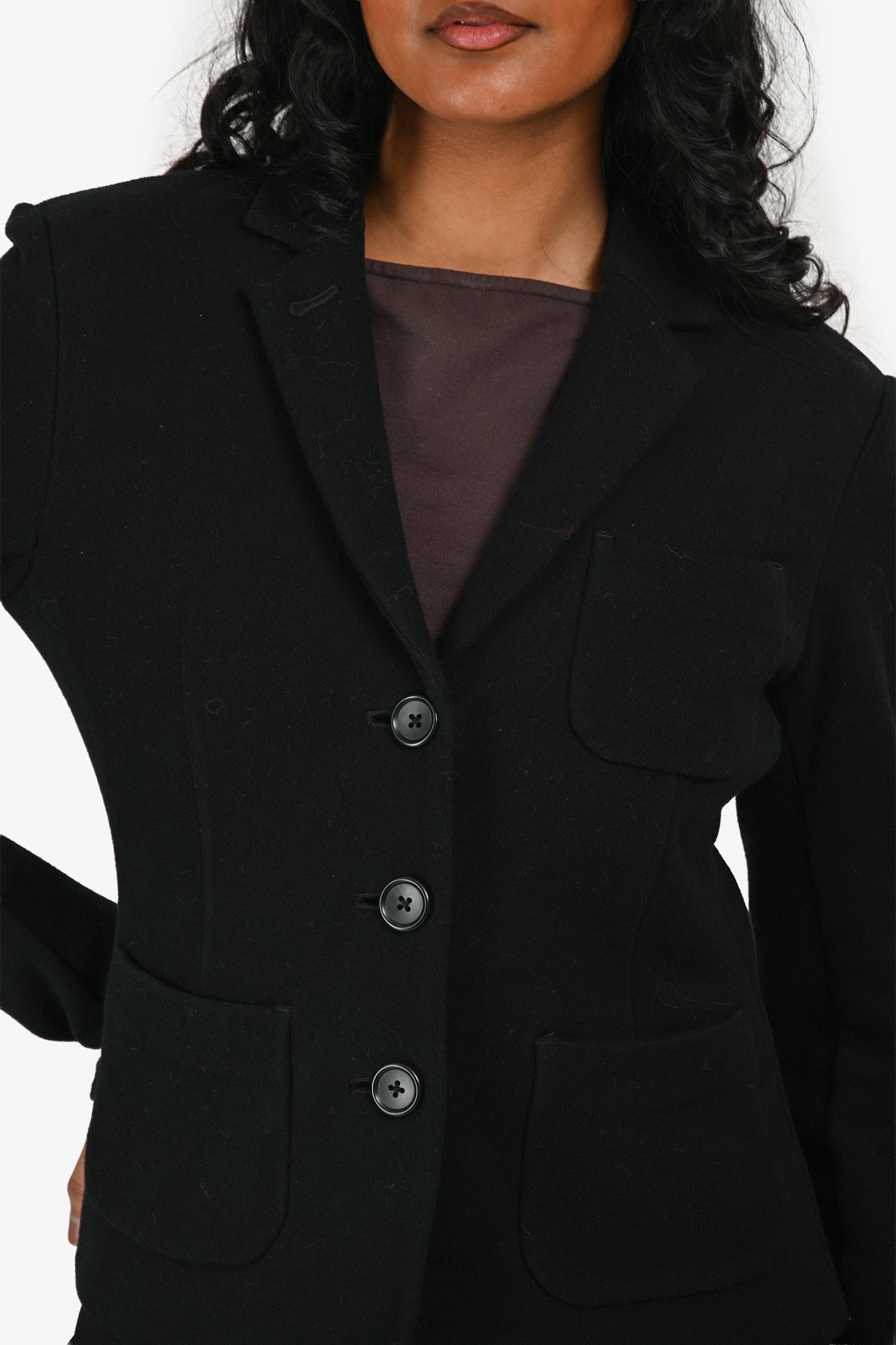Refresh availabilityJames Perse Black Single Breasted Blazer. Pull-on. Notched lapels. Front button-up closures. Padded shoulders. 3 exterior slip pockets. Tonal stitching.