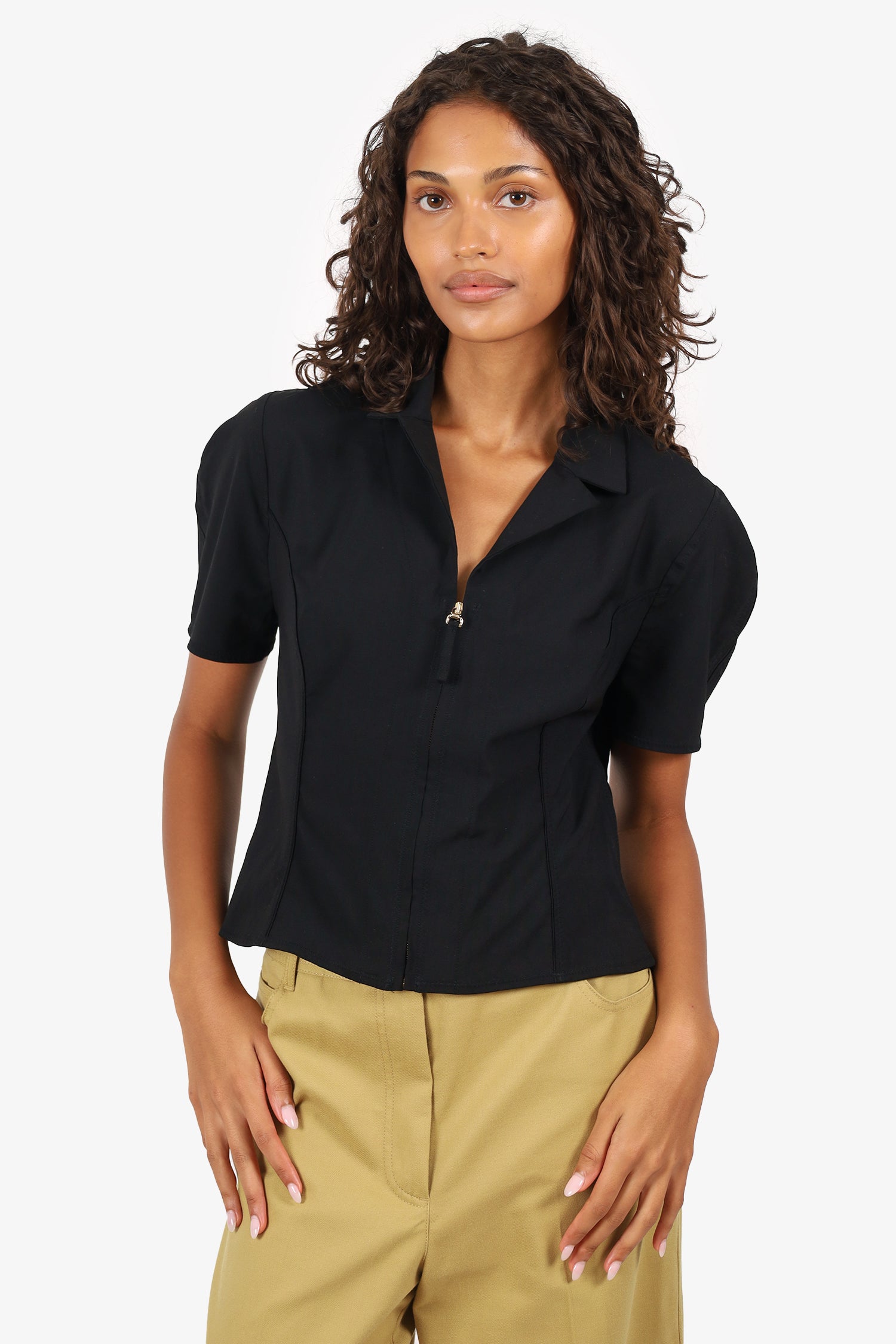 Jaquemus Black Cut-Out Back Zip Up Cropped Blouse Size 46