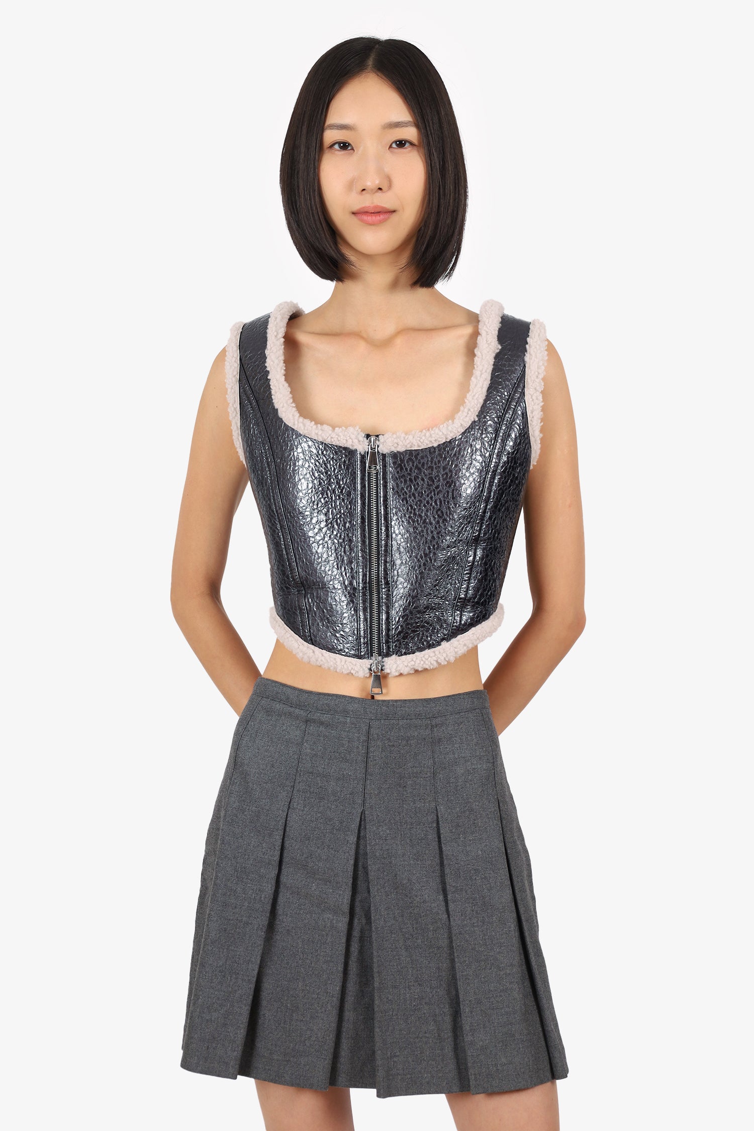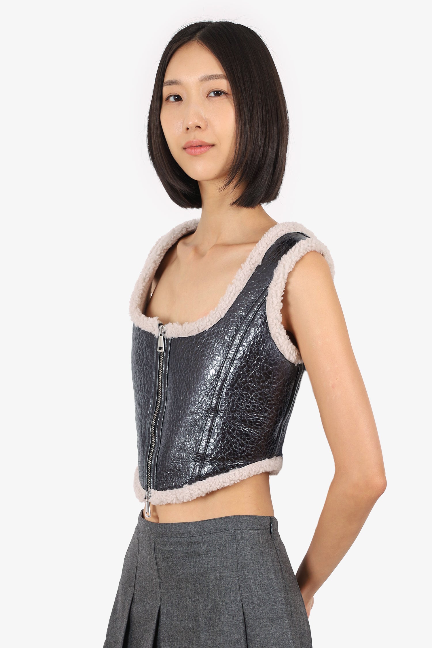 Refresh availabilityJean Paul Gaultier Black Leather 'The Laminated' Tank Top, Pull-on. Squared-neckline. Front zip closure. Rear lace-up closure. Silver-tone hardware. Tonal stitching.