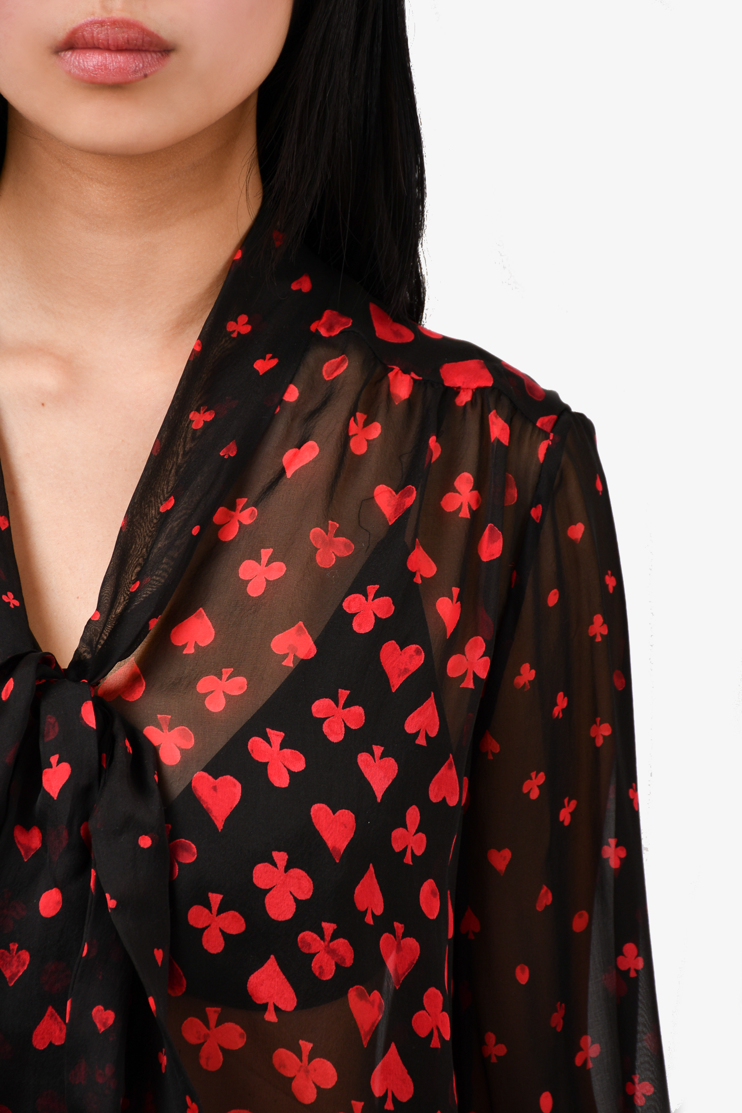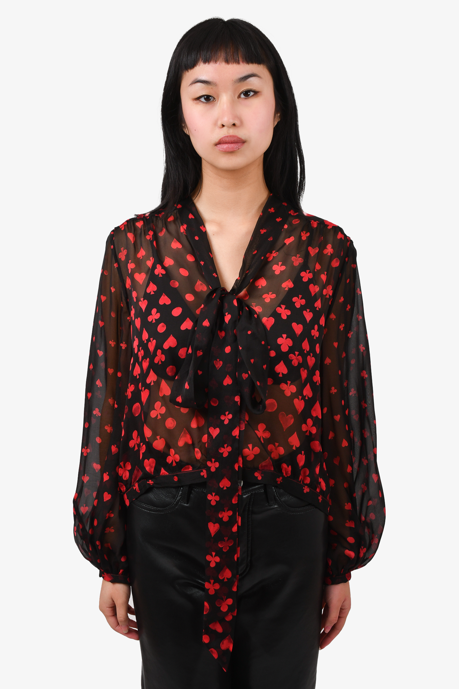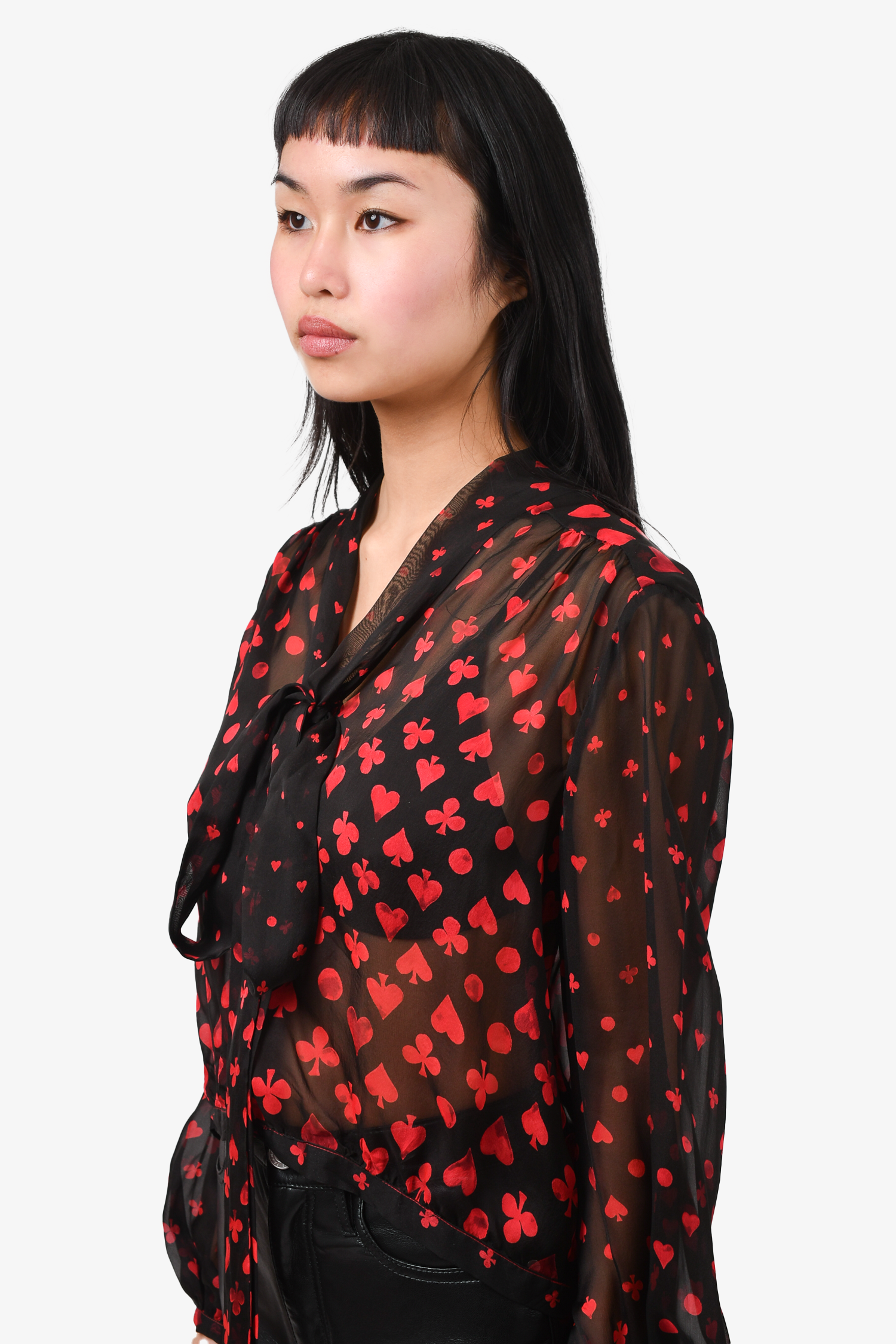 Jean Paul Gaultier Black/Red Silk Patterned Blouse Est. Size S