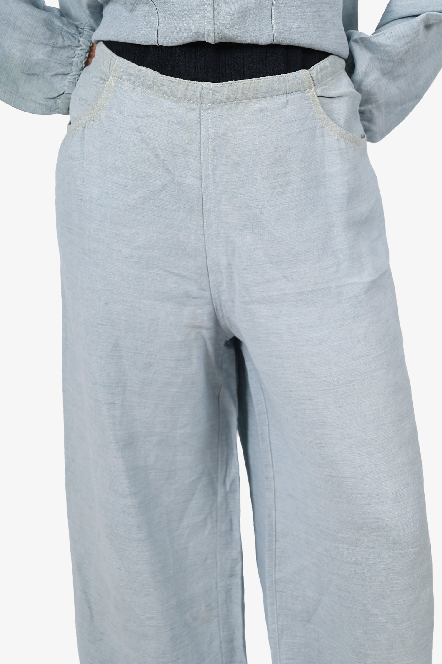 Jean Paul Gaultier Blue Linen Zip-up Jacket With Wide Leg Pants Set Size 6