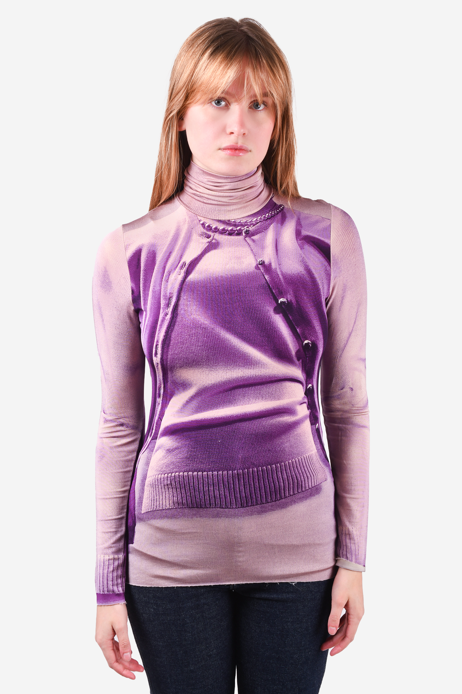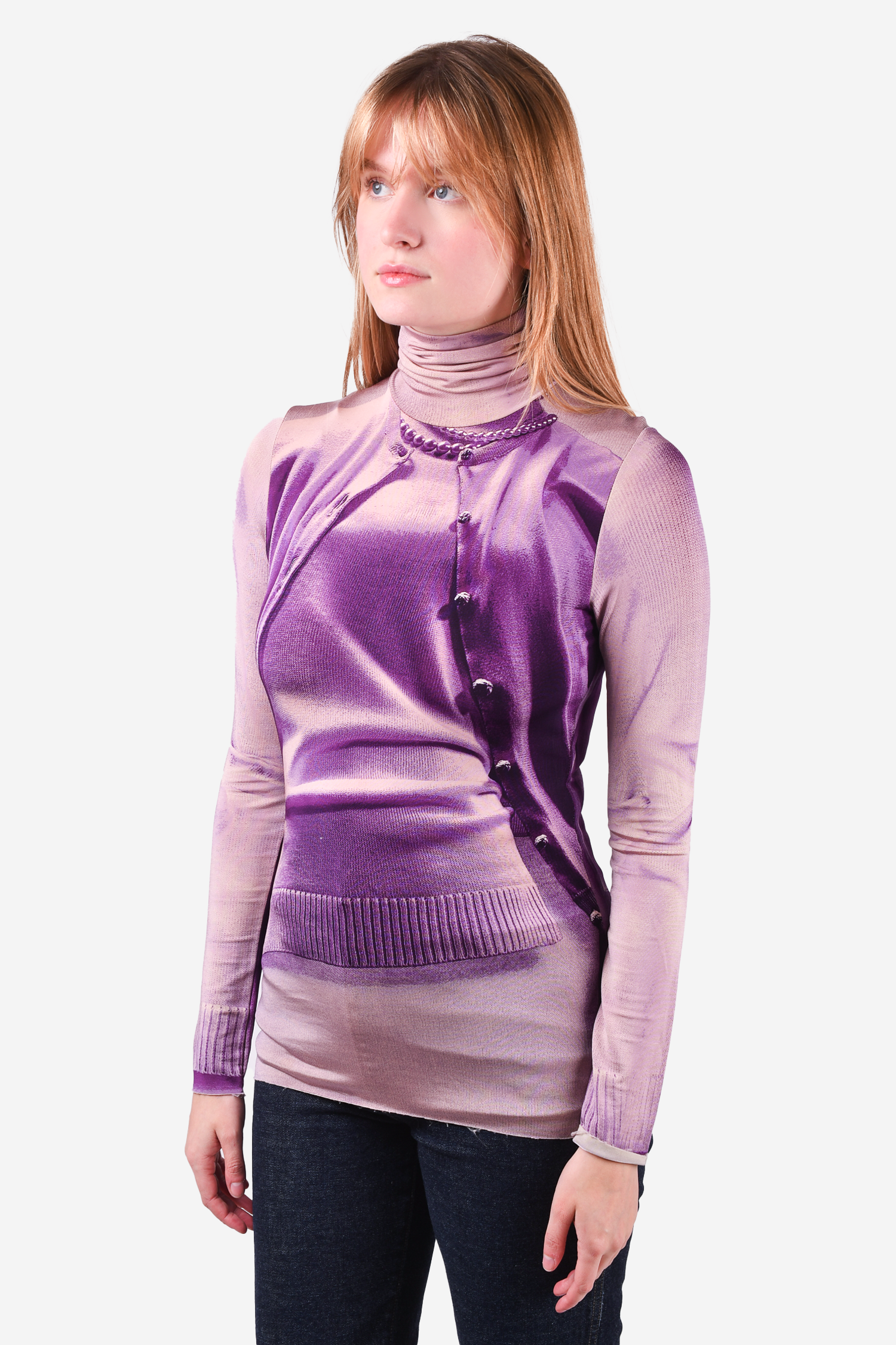 Refresh availabilityJean Paul Gaultier Purple Cardigan Print Turtleneck. Pull-on. Tonal stitching.