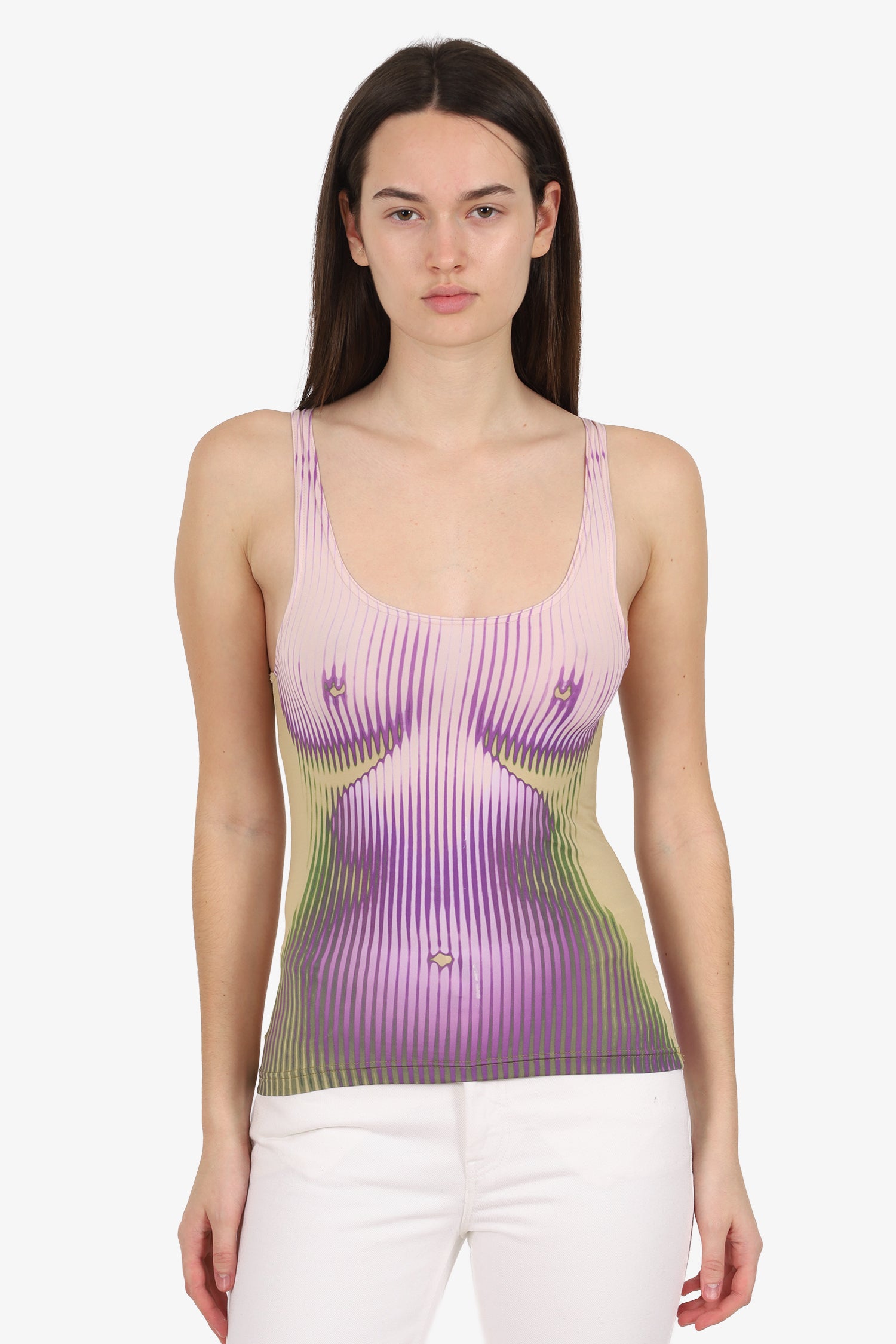 Refresh availabilityJean Paul Gaultier x Y/Project Purple/Green Body Print Sleeveless Top. Pull-on. Round neckline. Rear pull tab and logo detail. Tonal stitching.