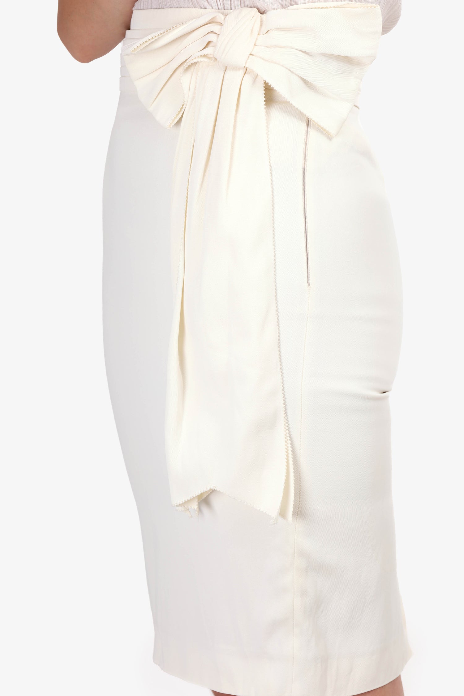Jean Paul Gaultier White Pleated Bow Pencil Skirt Size 6