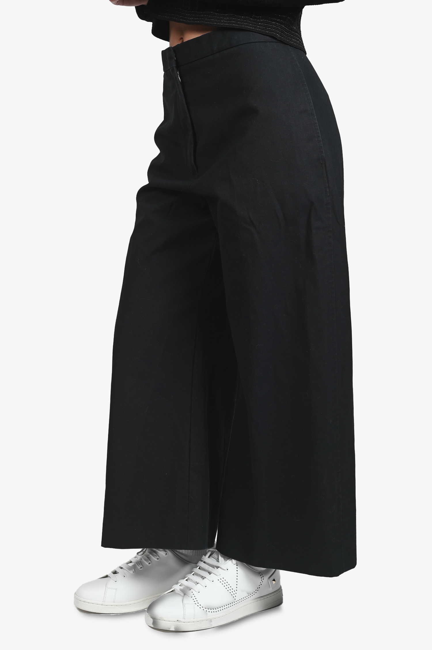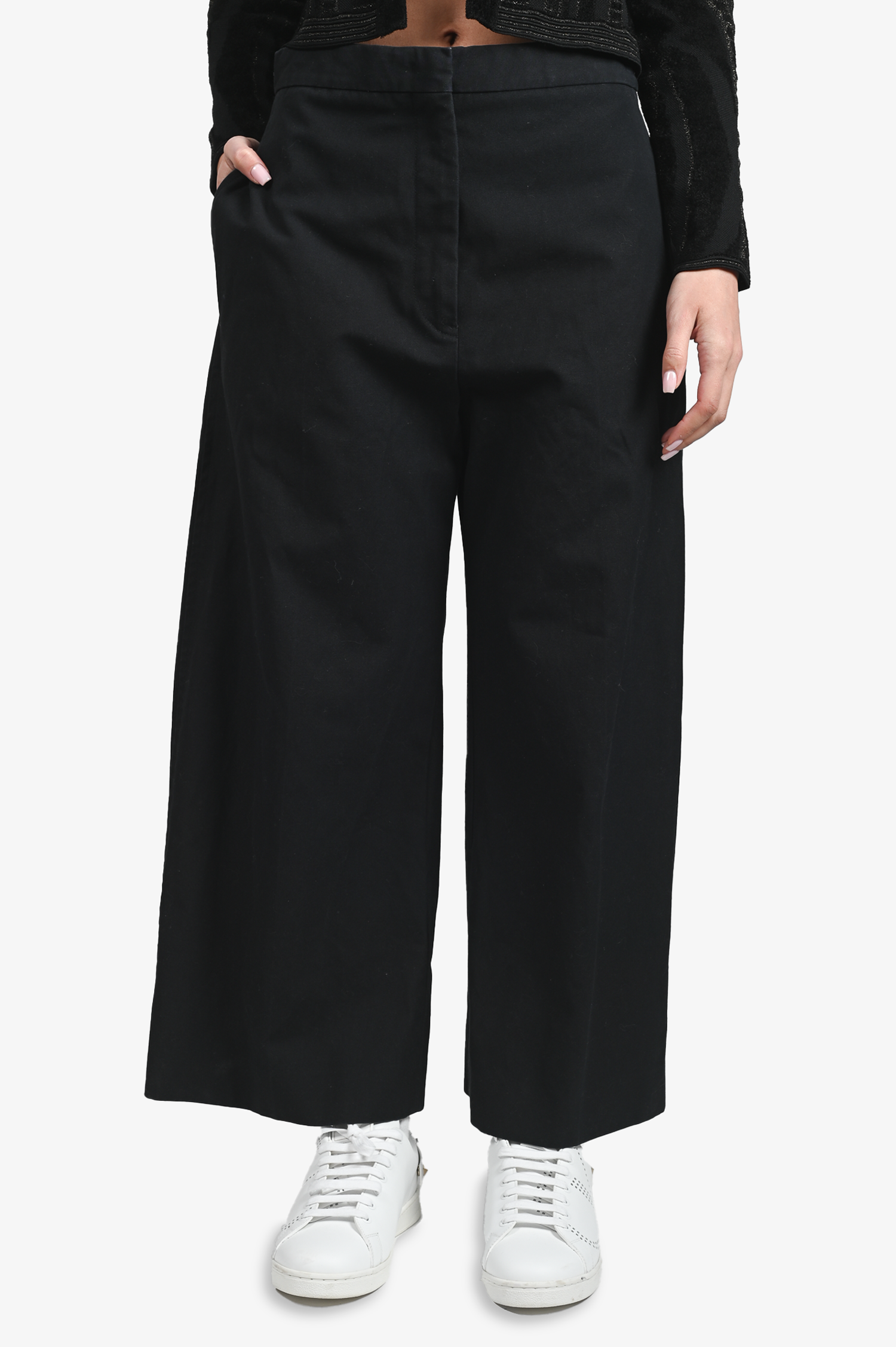 Refresh availabilityJil Sander Black Cotton Wide Leg Pants. Front zip and hook closure. Front pockets. Tonal stitching.