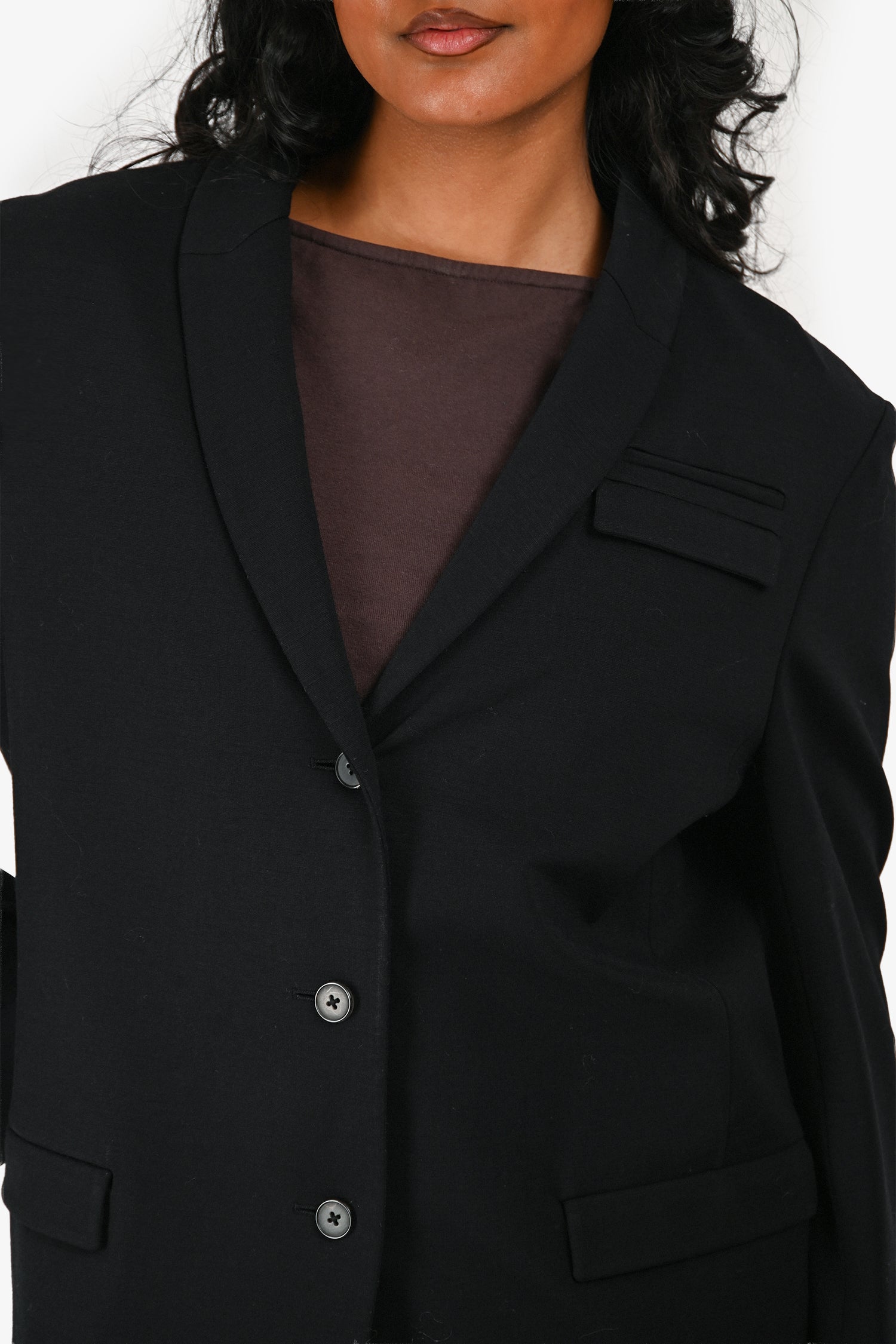 Refresh availabilityJil Sander Black Single Breasted Blazer. Pull-on. Front button-up closure. Padded shoulders. 3 exterior slip pockets. Lined interior. Tonal stitching.