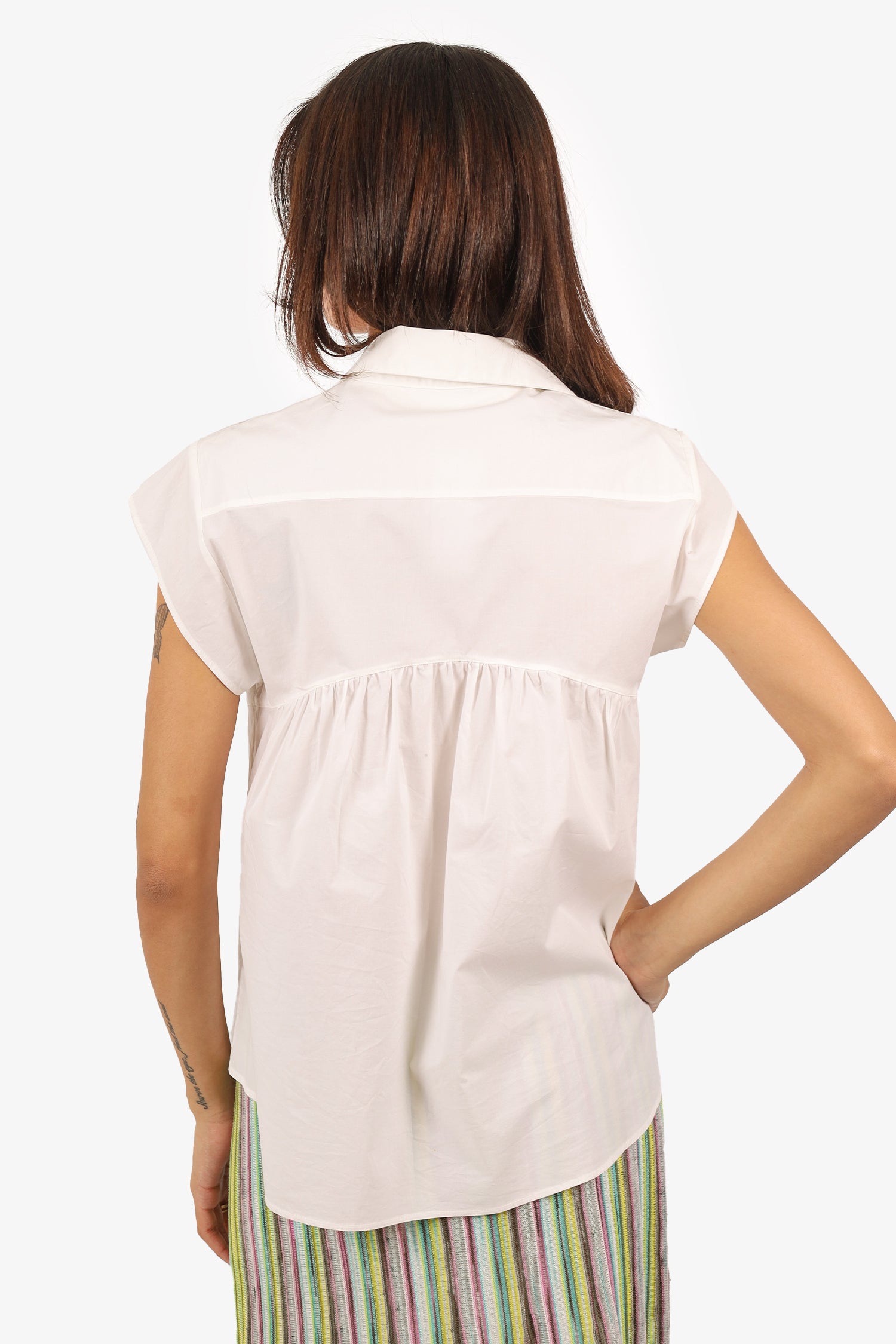Jil Sander White Short Sleeve Printed Button Up Blouse Size 36